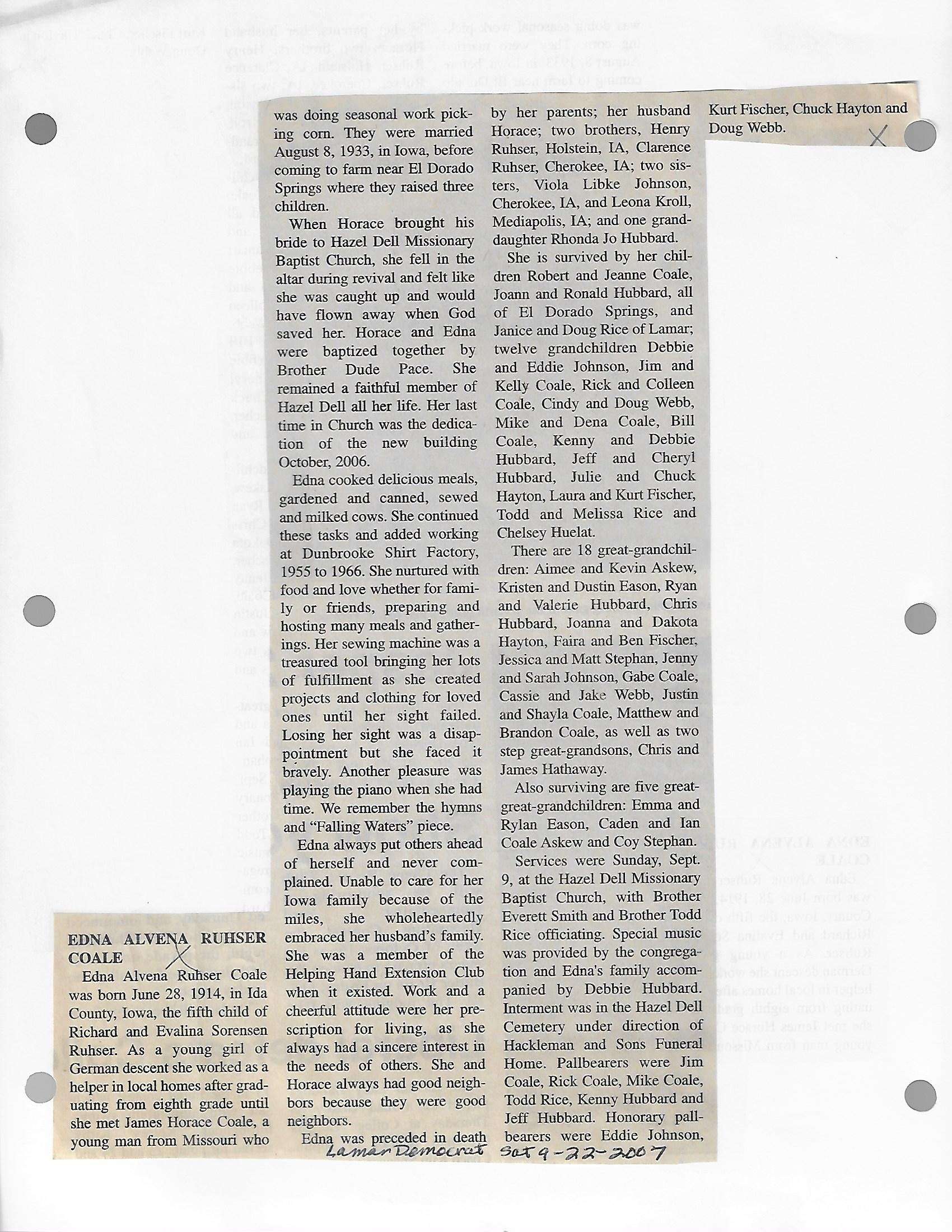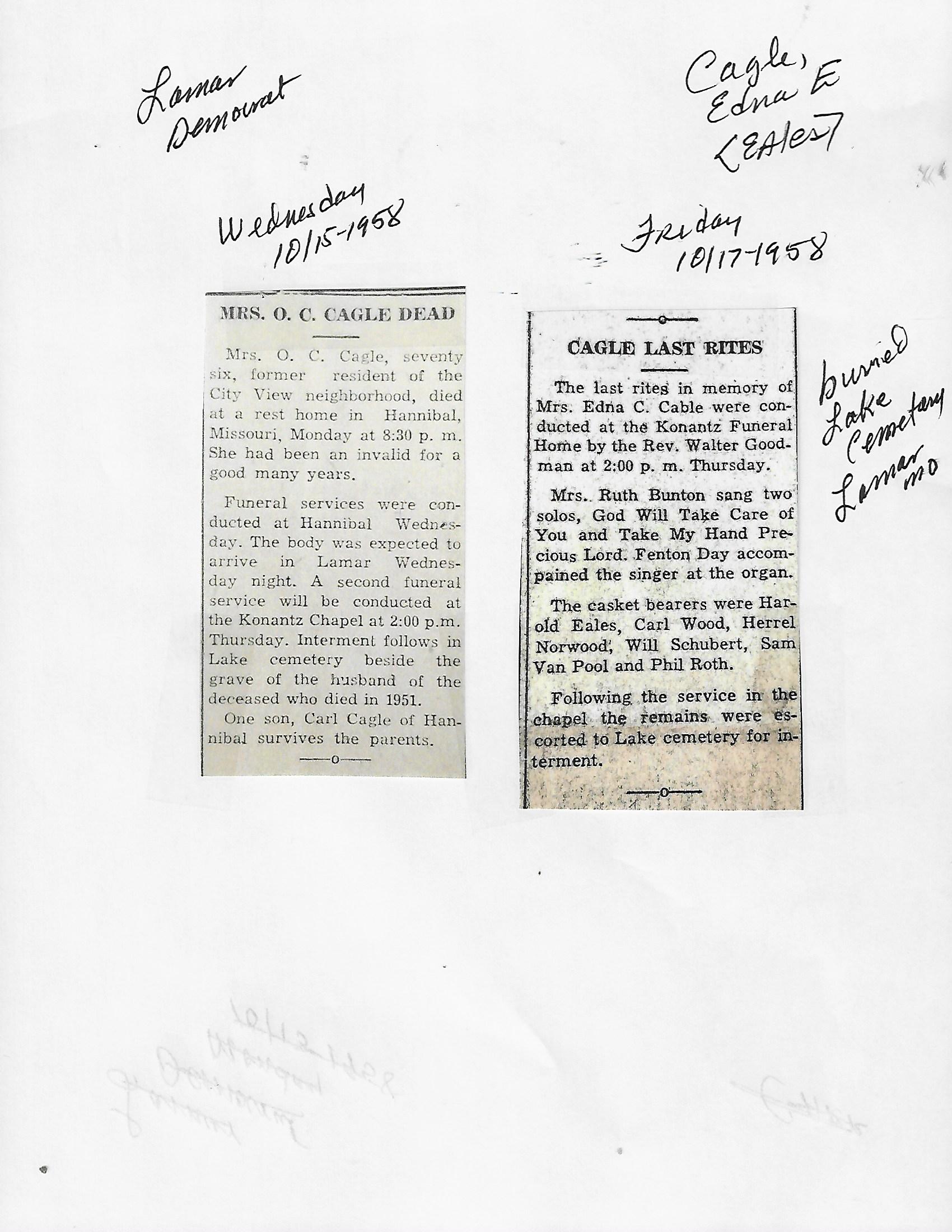 Cagle, Edna E {Eales}