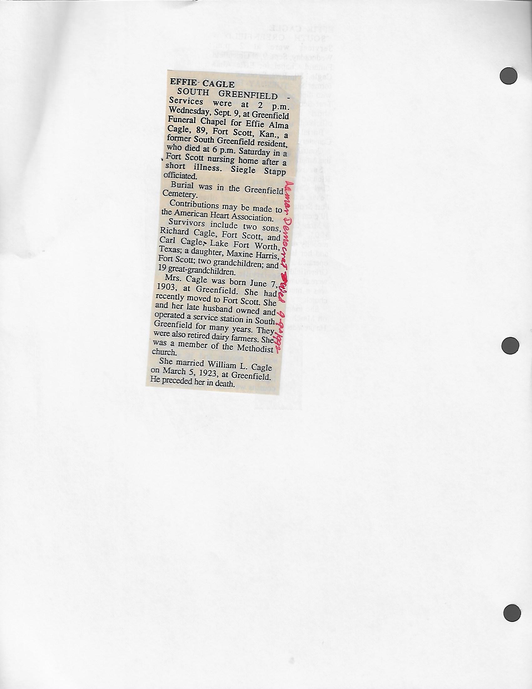 Cagle, Effie Alma