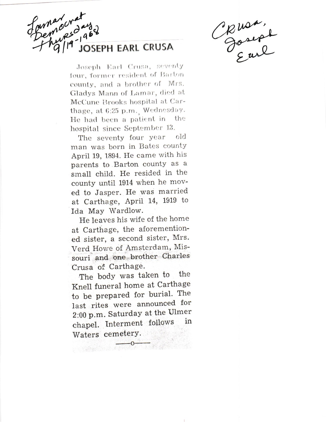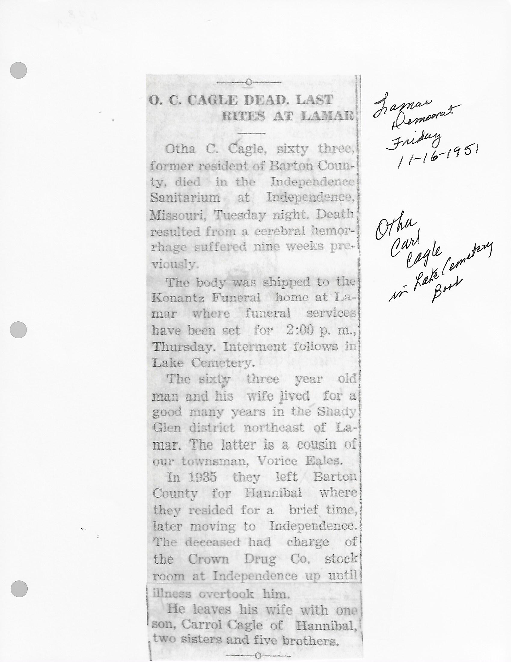 Cagle, Otha Carl