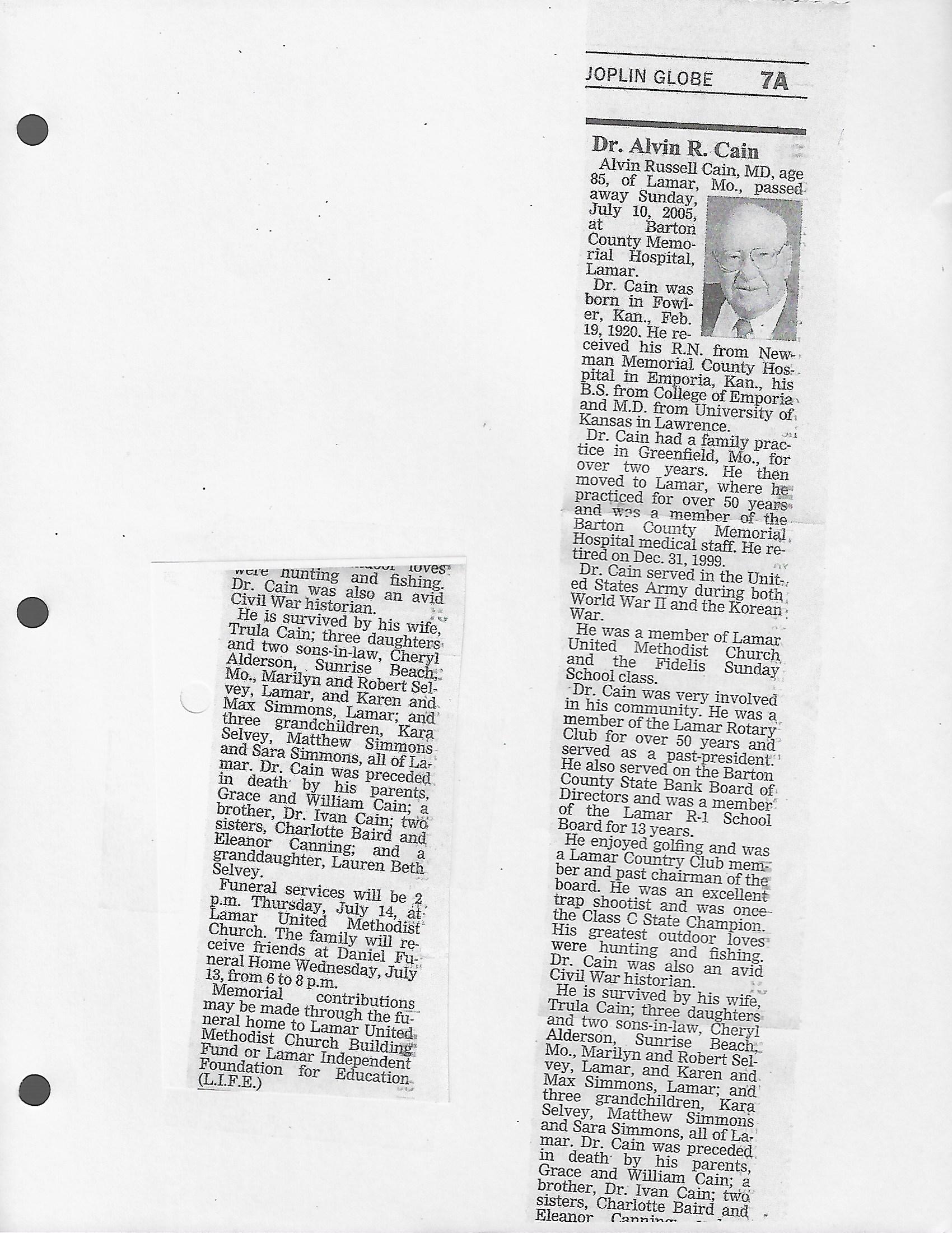 Cain, Dr Alvin