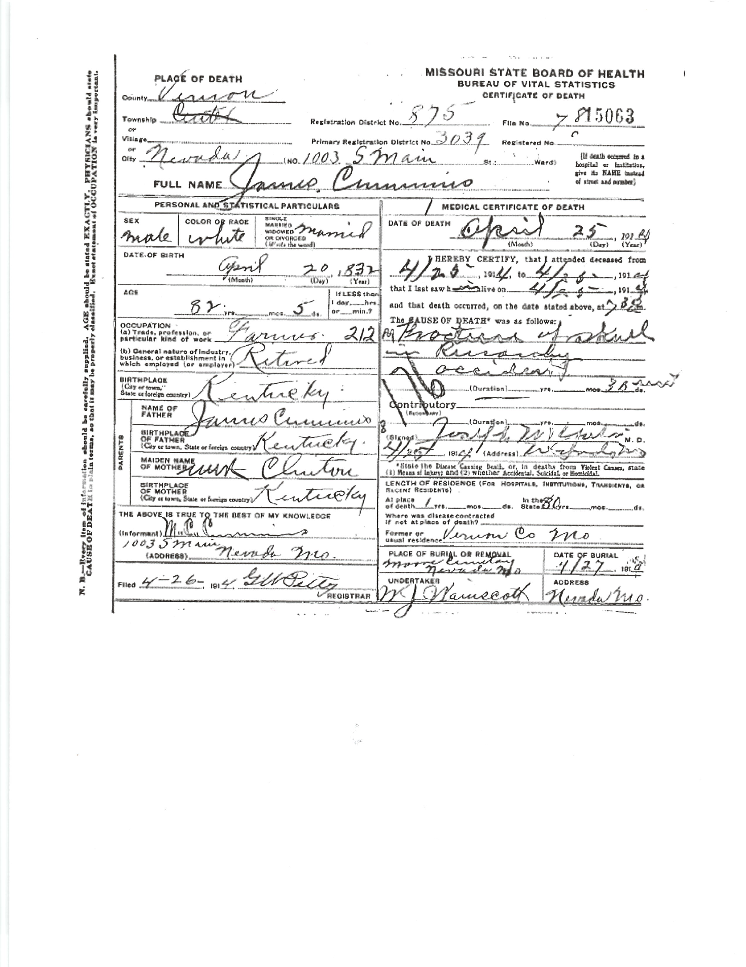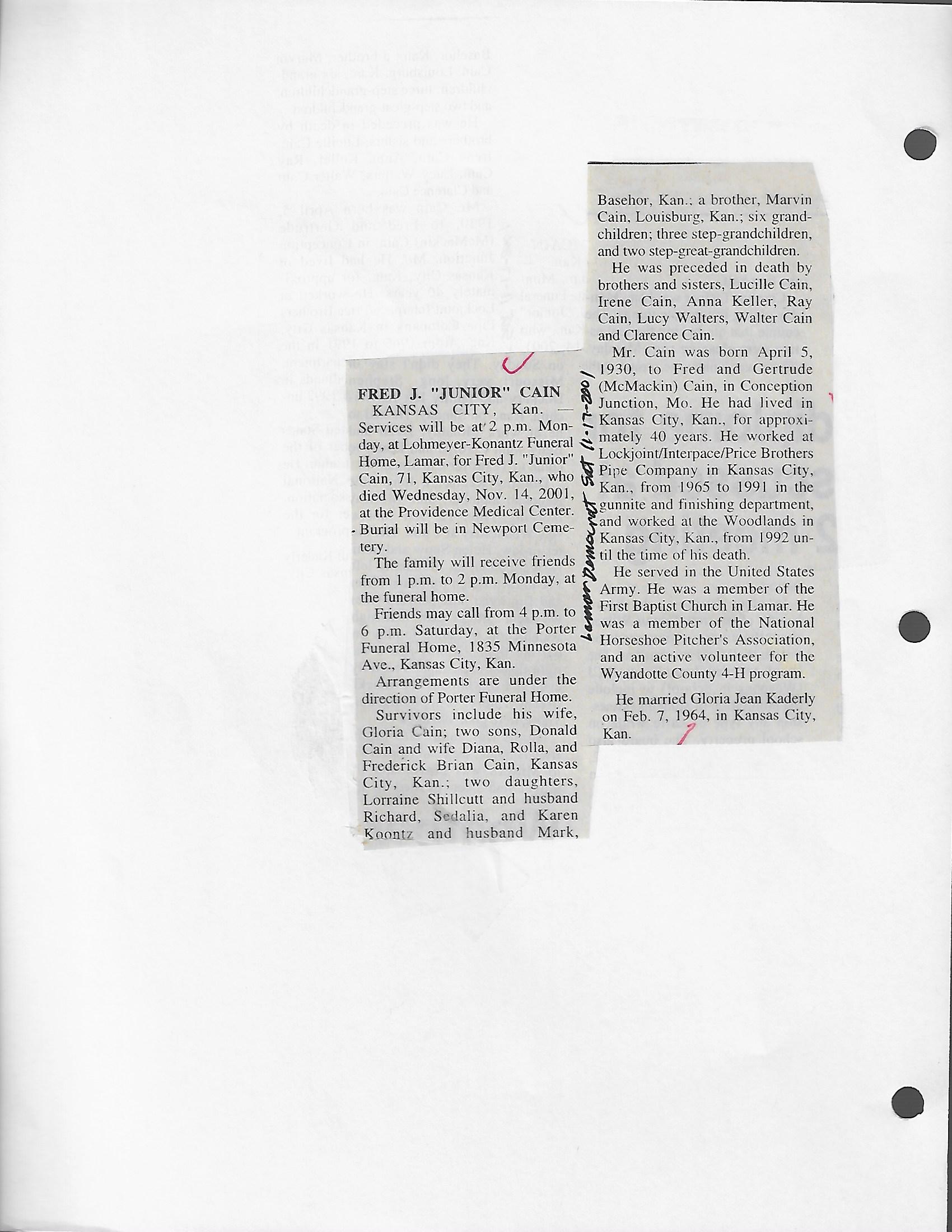 Cain, Fred J (Junior)