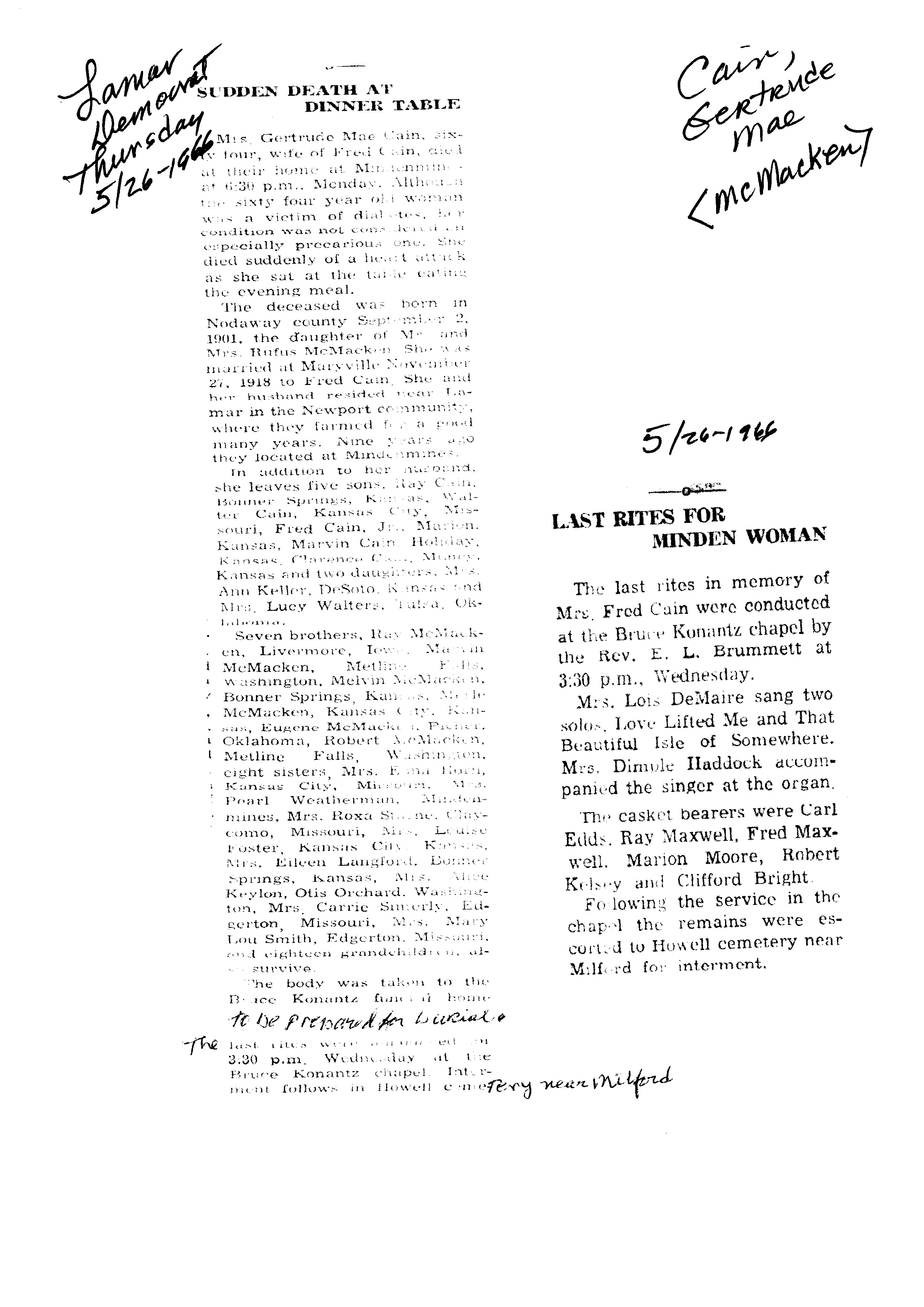 Cain, Gertrude Mae {McMacken}