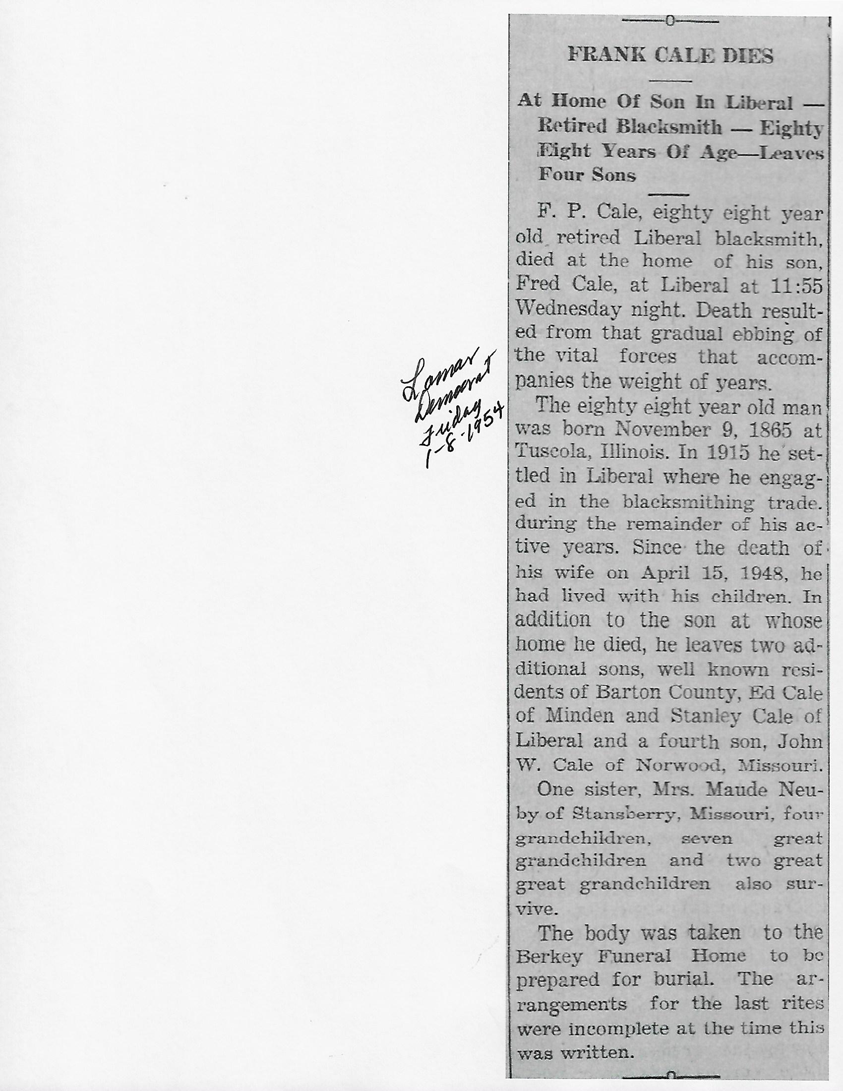 Cale, Frank P