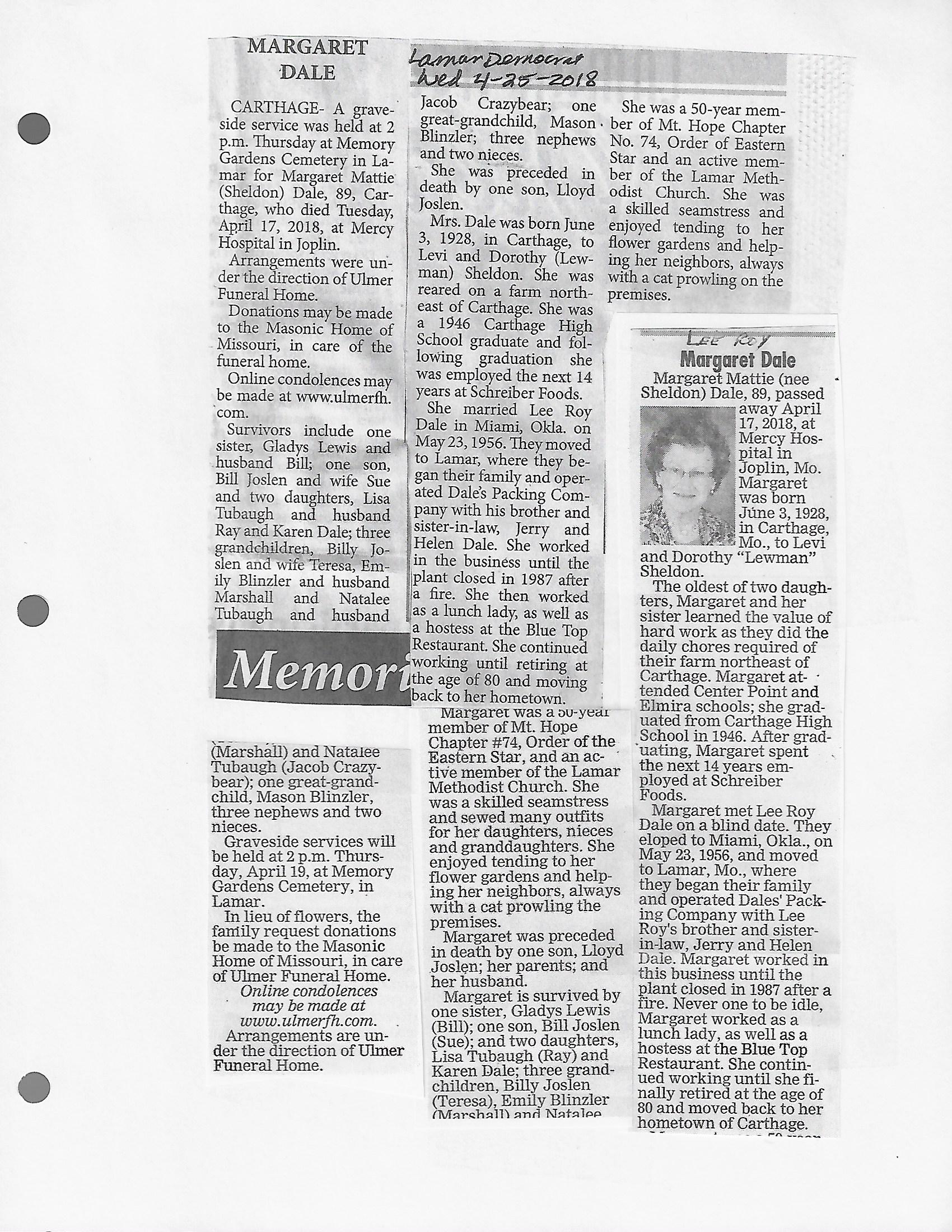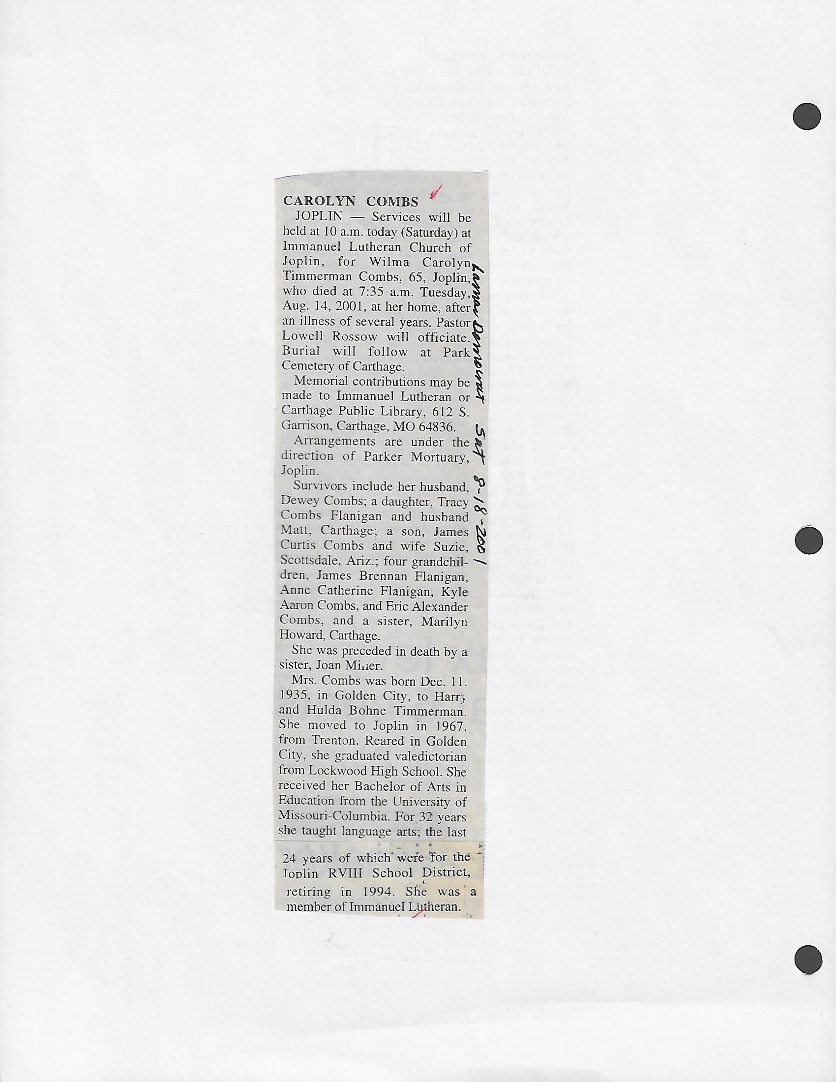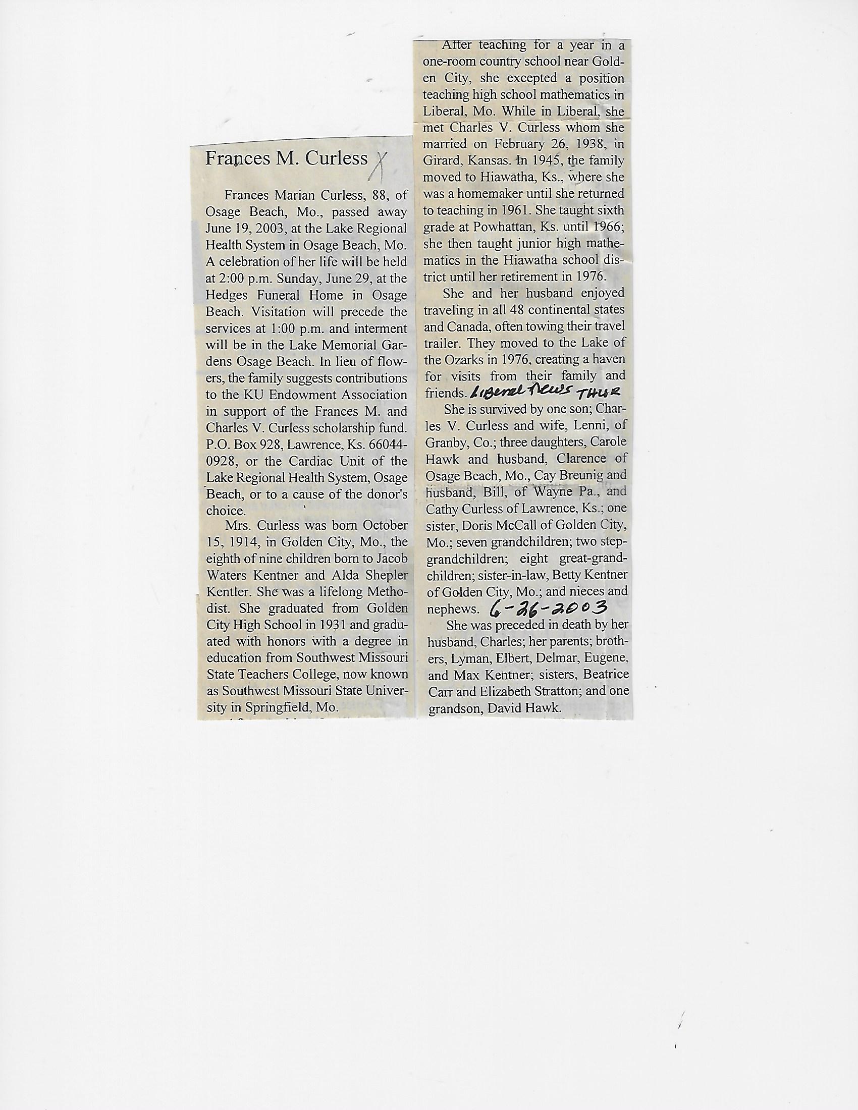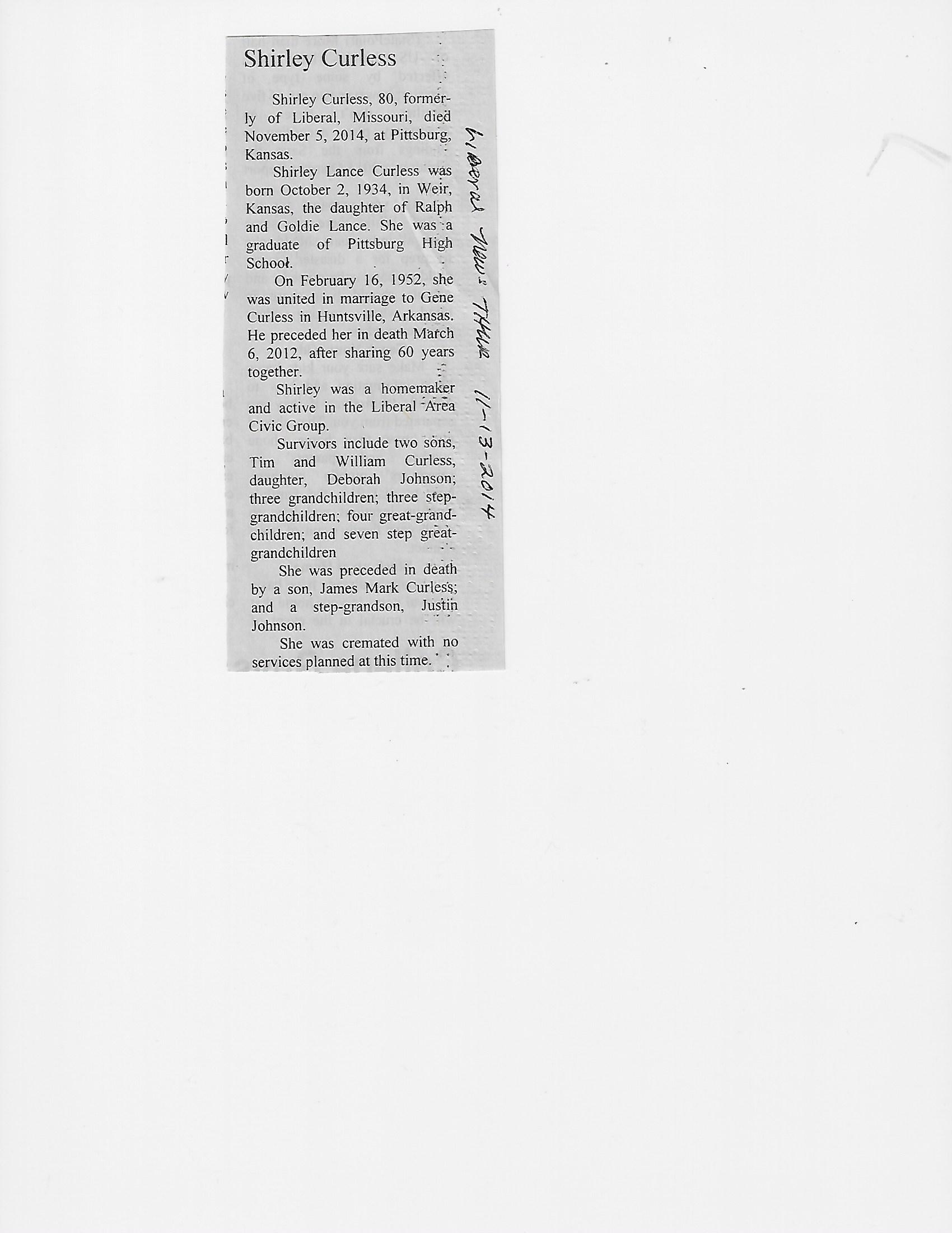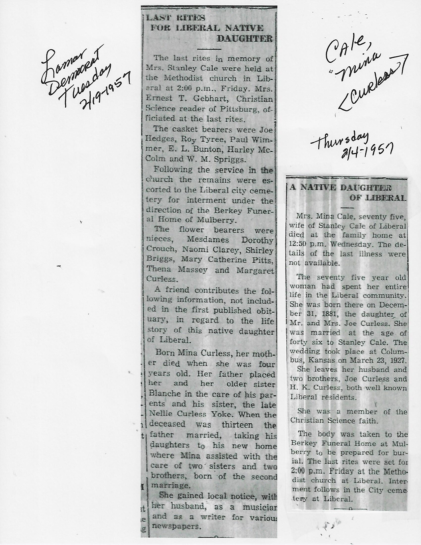 Cale, Mina {Curless}