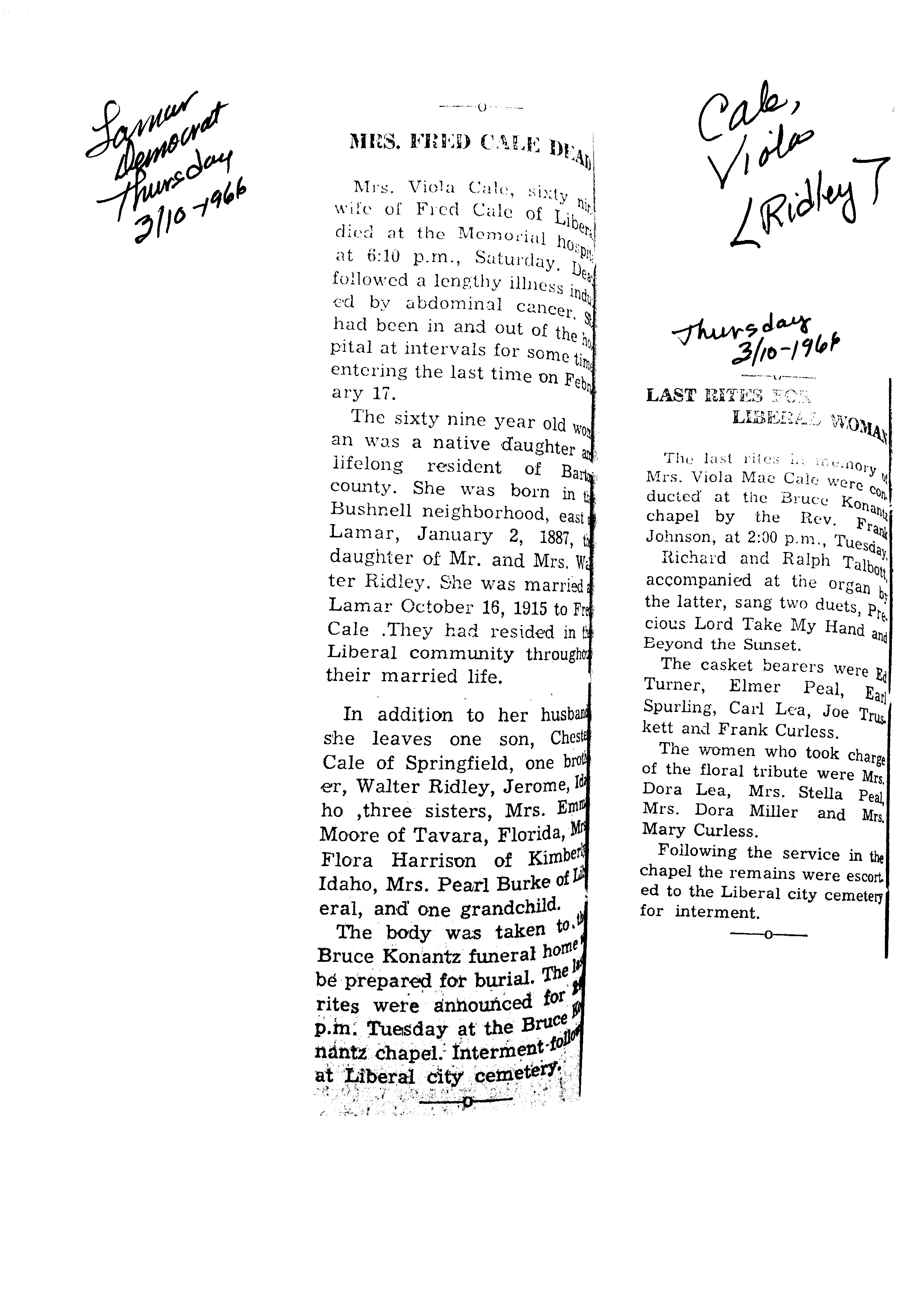Cale, Viola {Ridley}