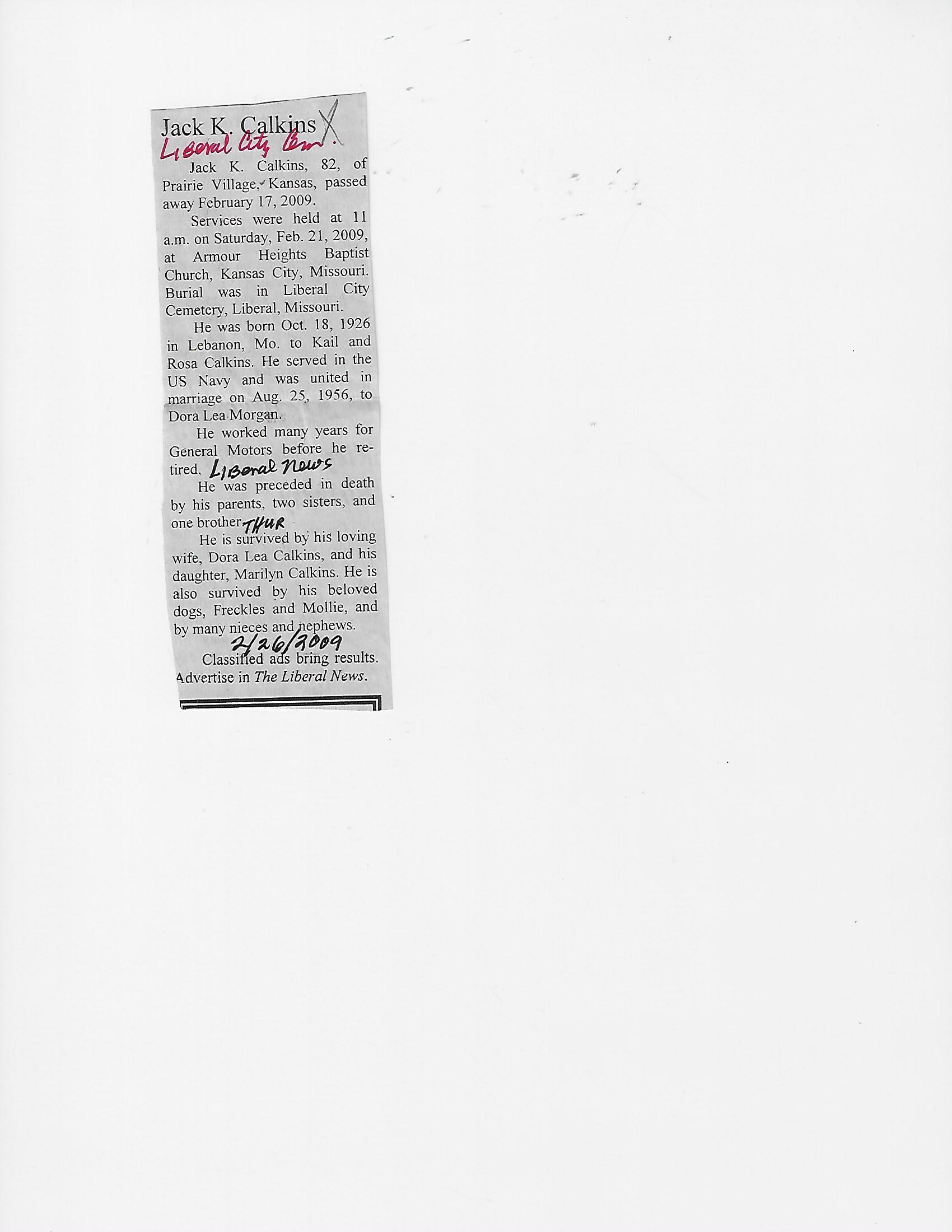 Calkins, Jack K