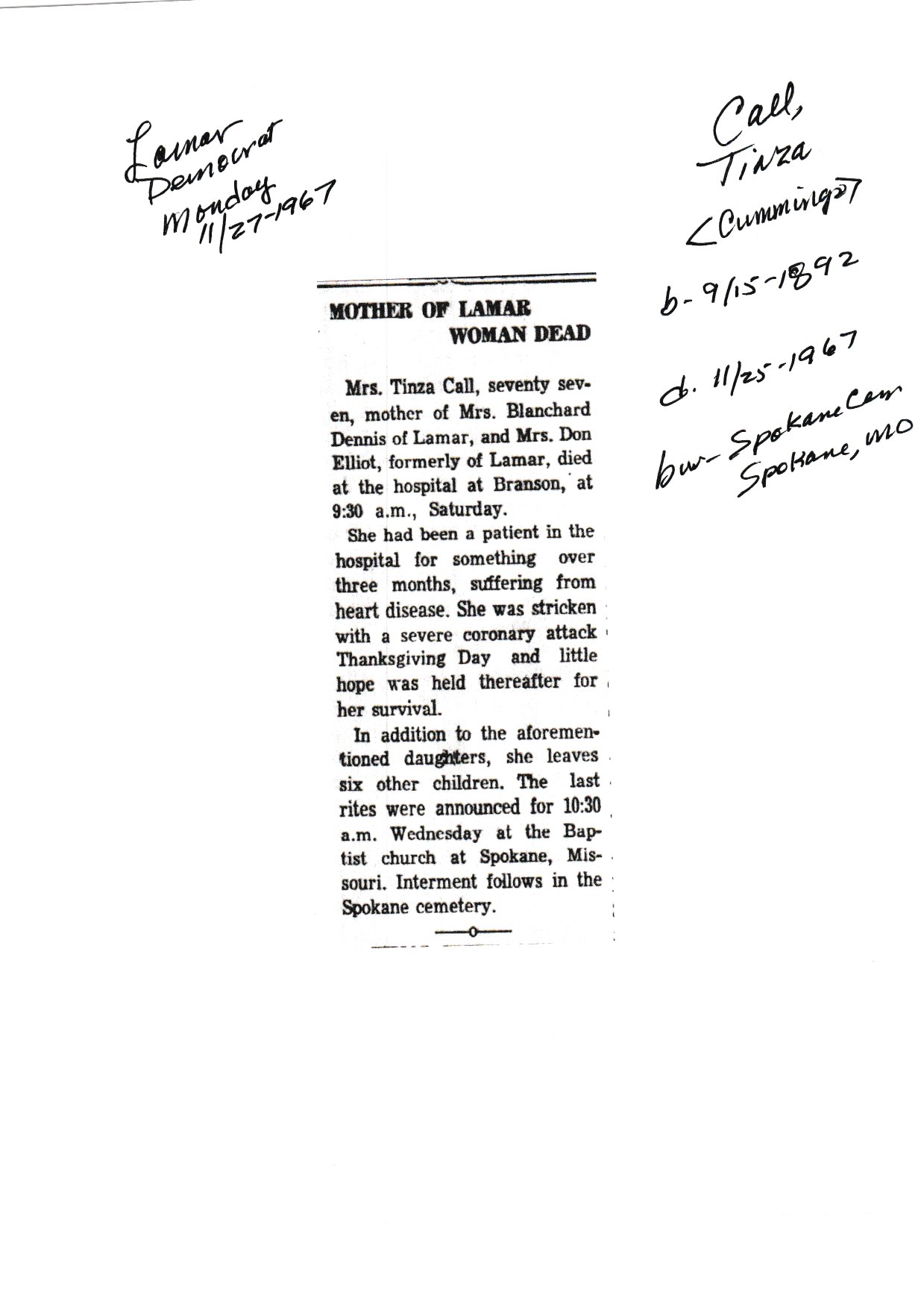 Call, Tinza {Cummings}