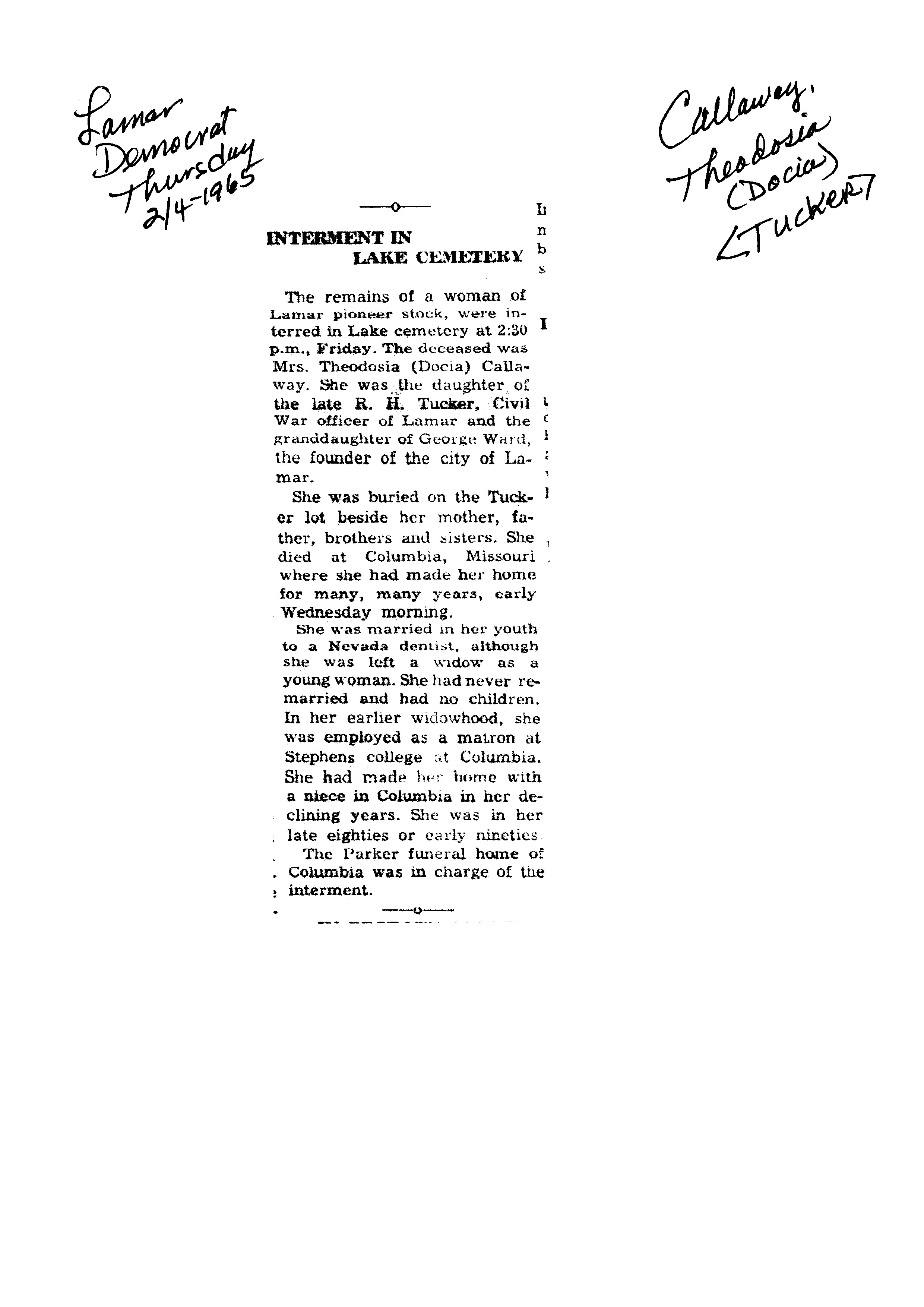 Callaway, Theodosia (Dosia)