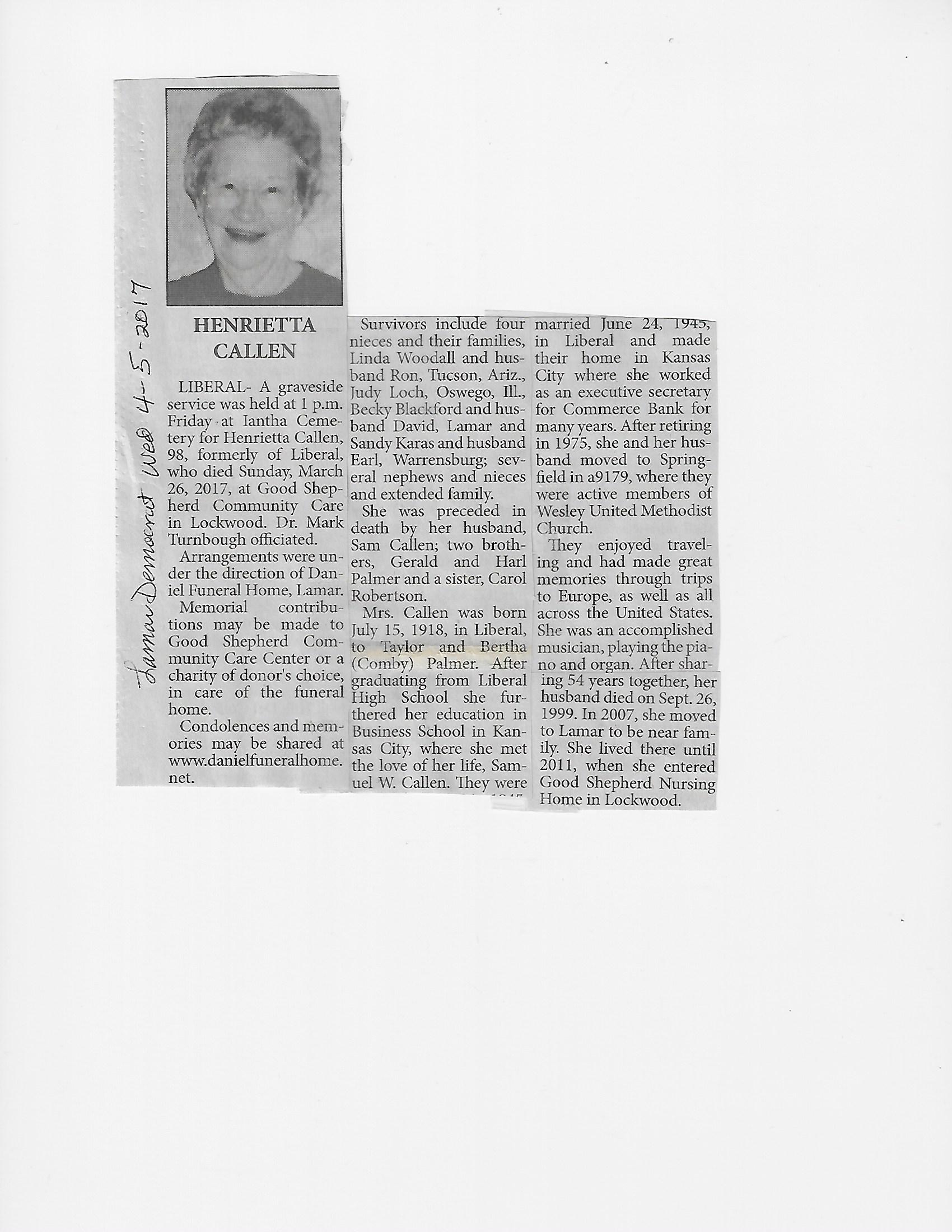 Henrietta {Palmer}