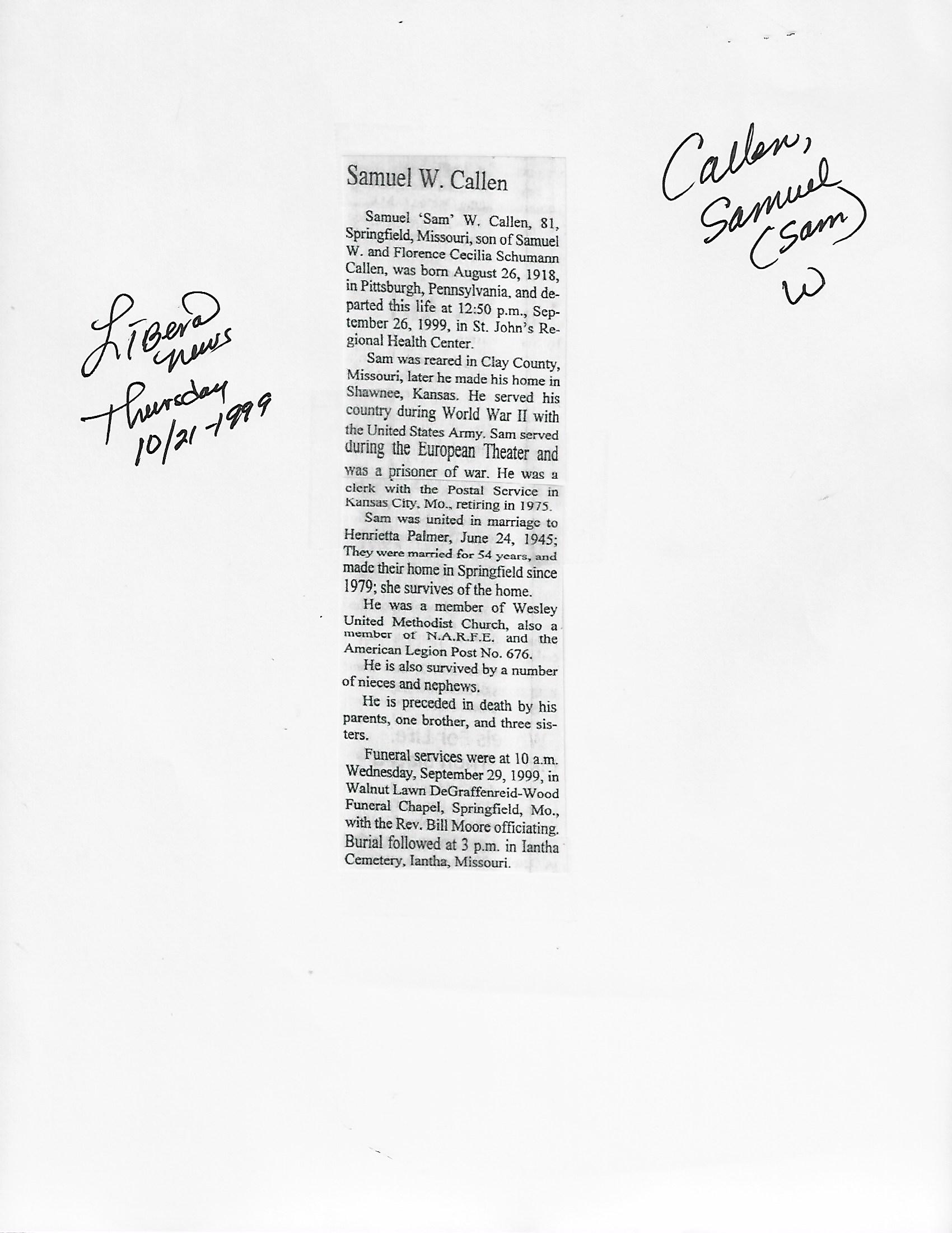 Callen, Samuel (Sam) W