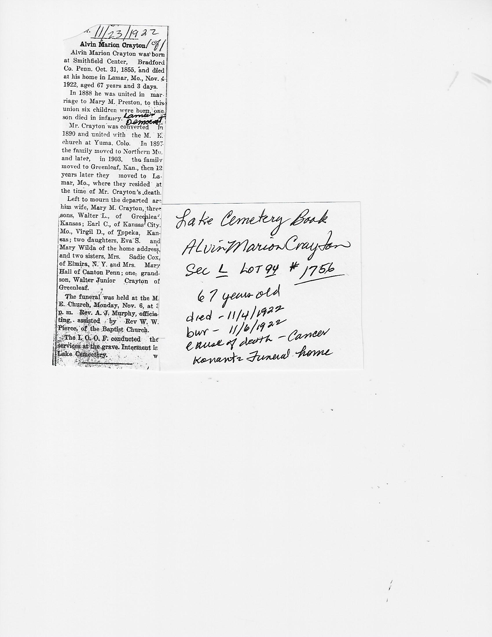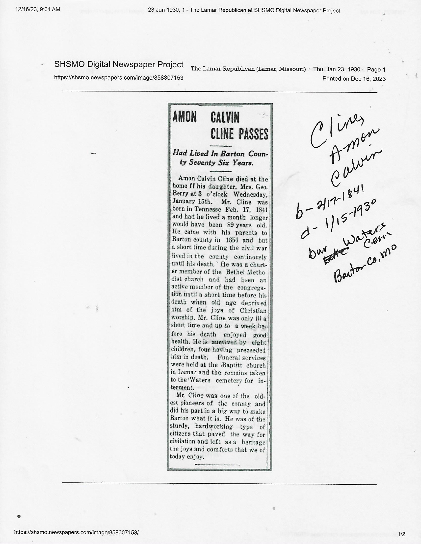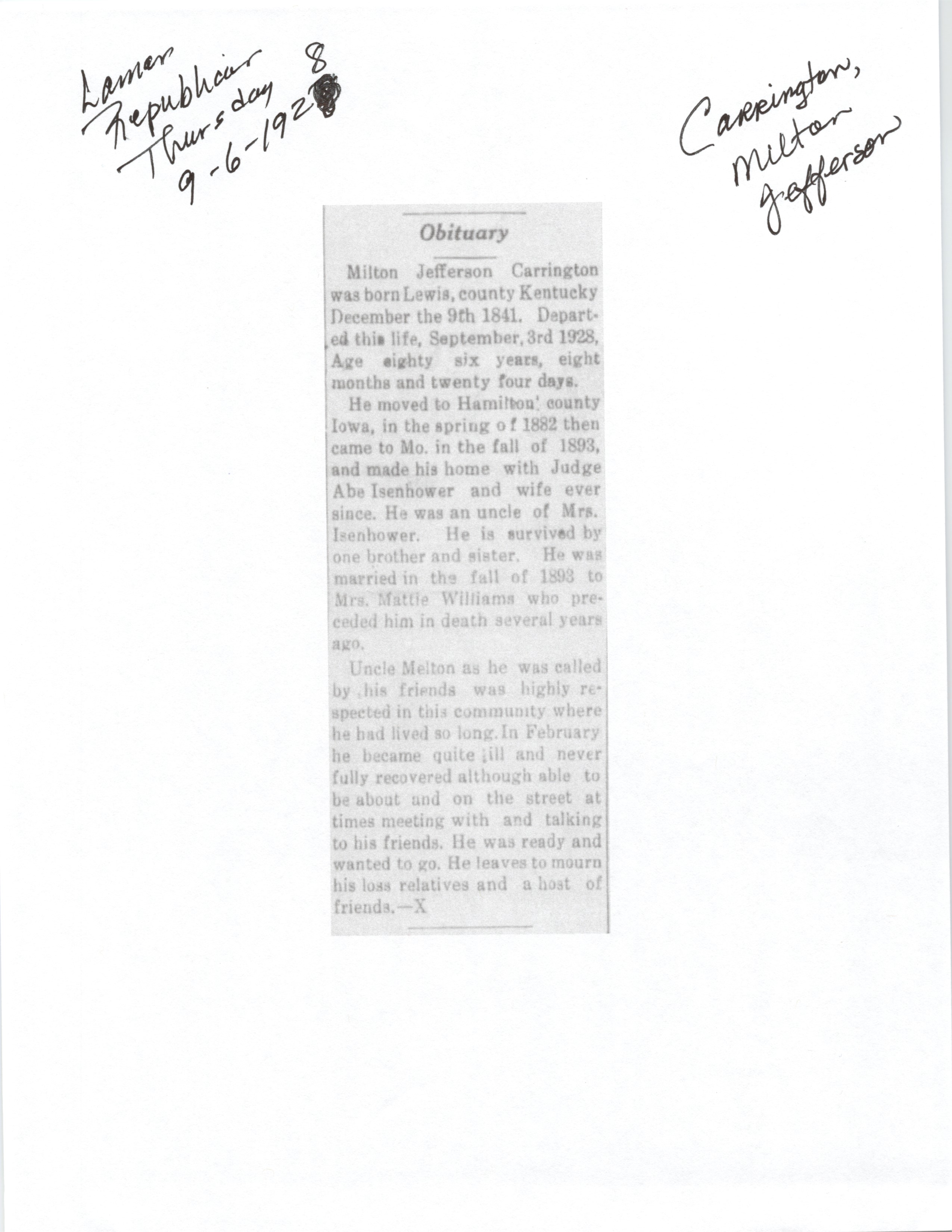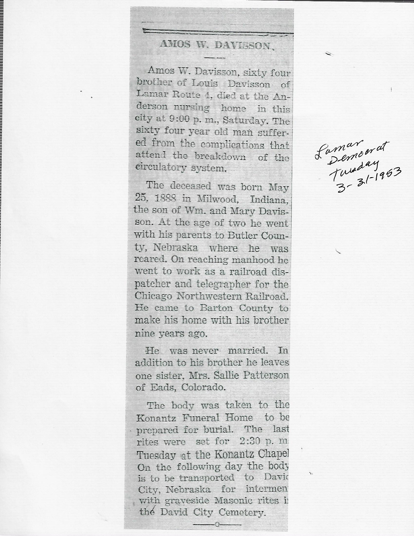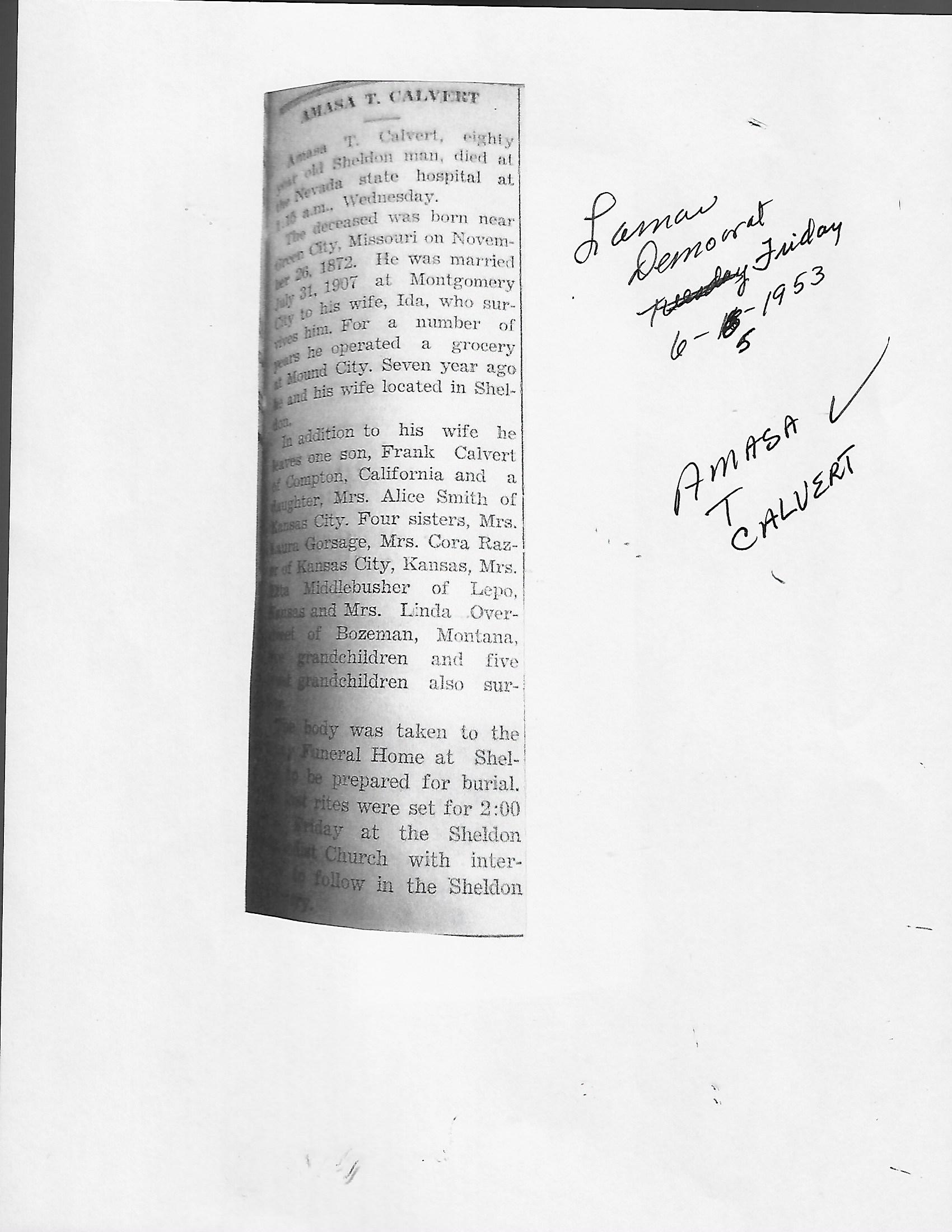 Calvert, Amasa T