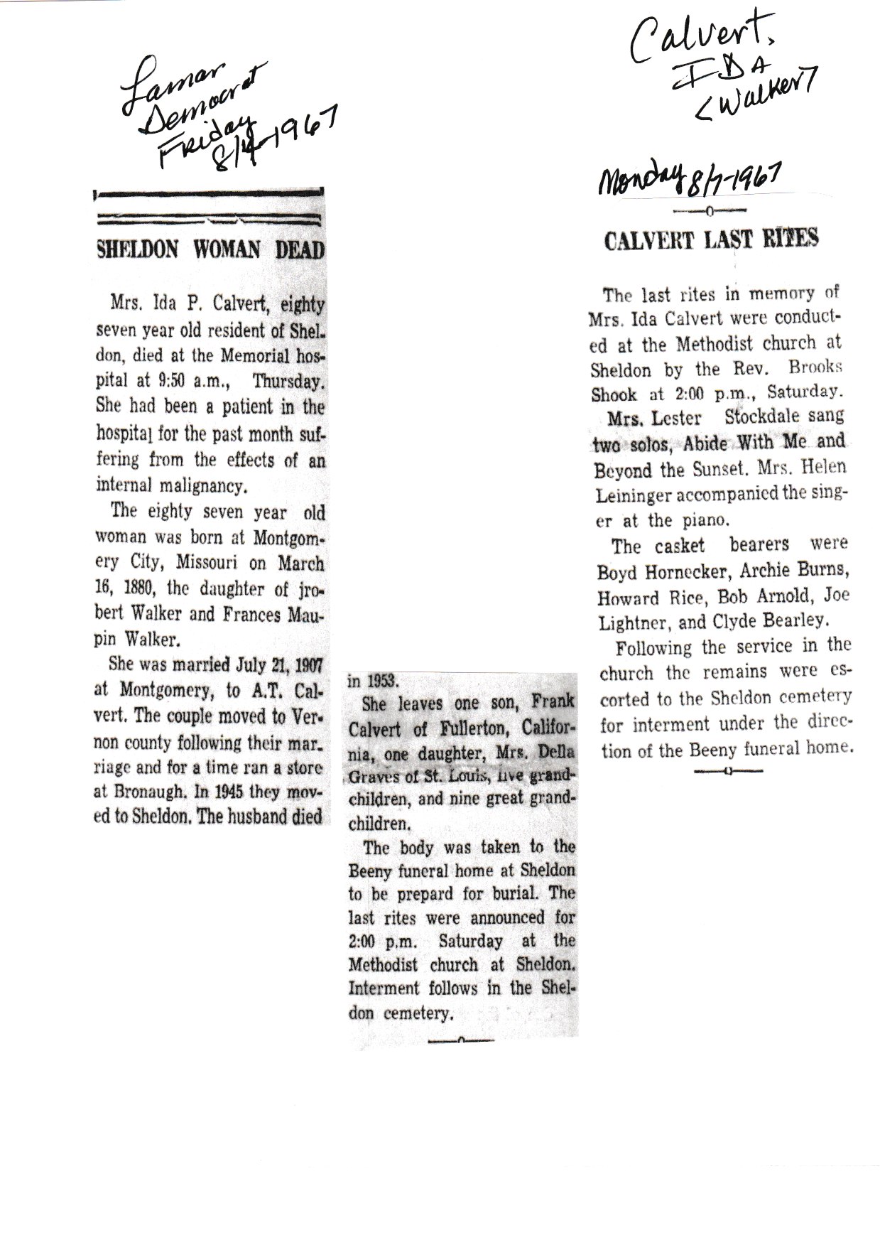 Calvert, Ida {Walker}
