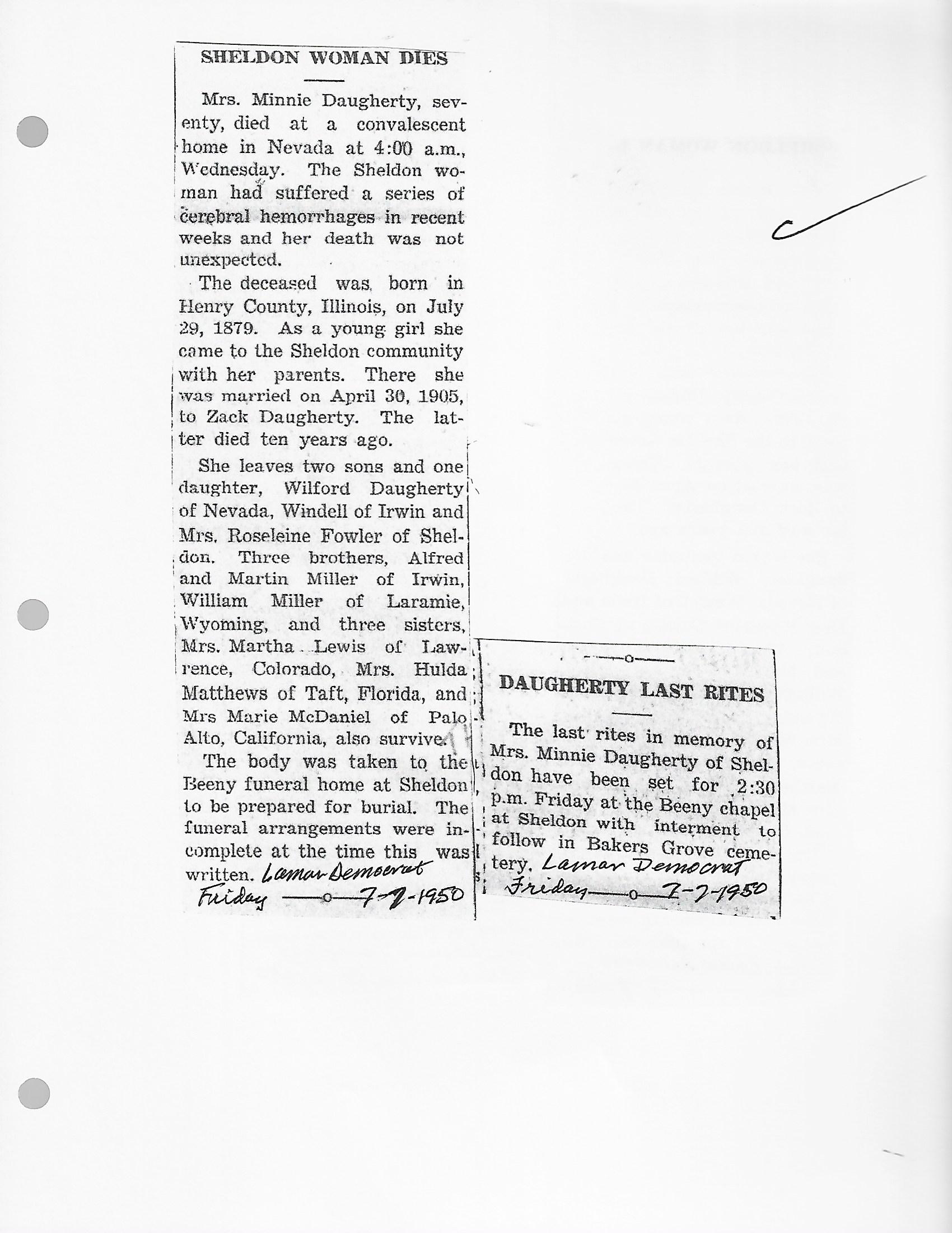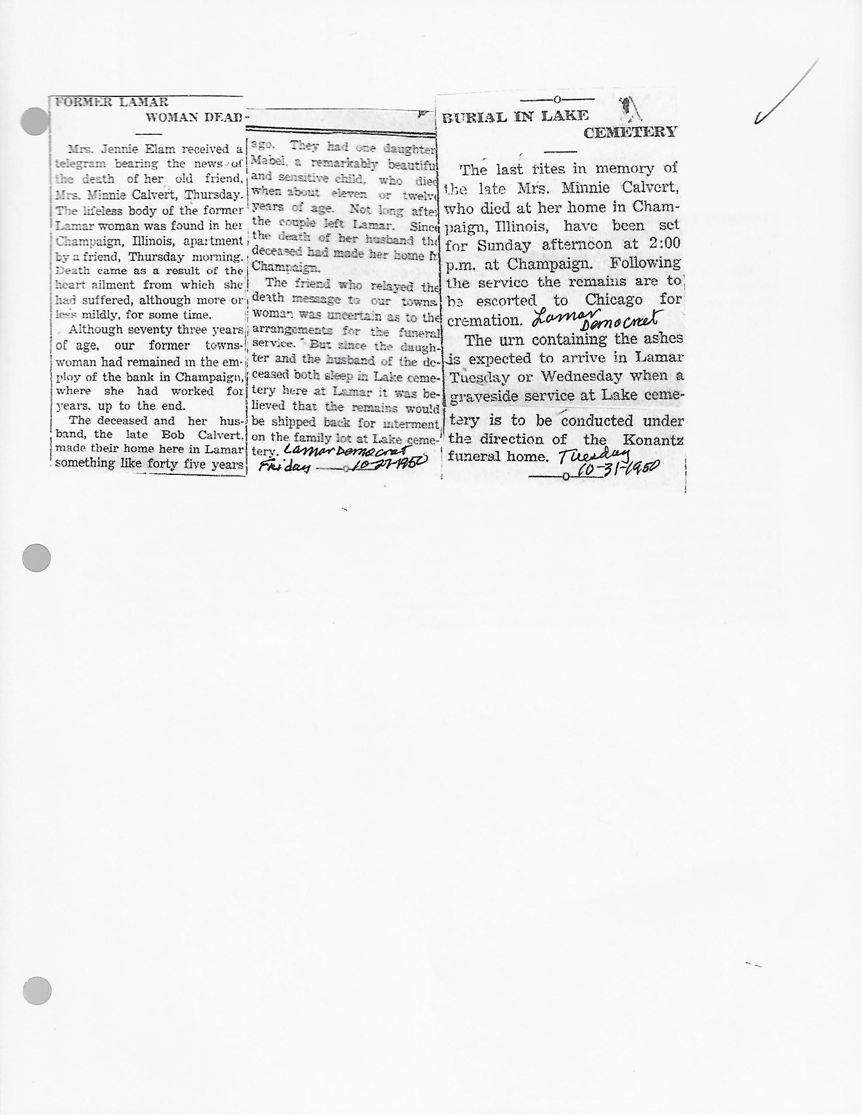 Calvert, Minnie