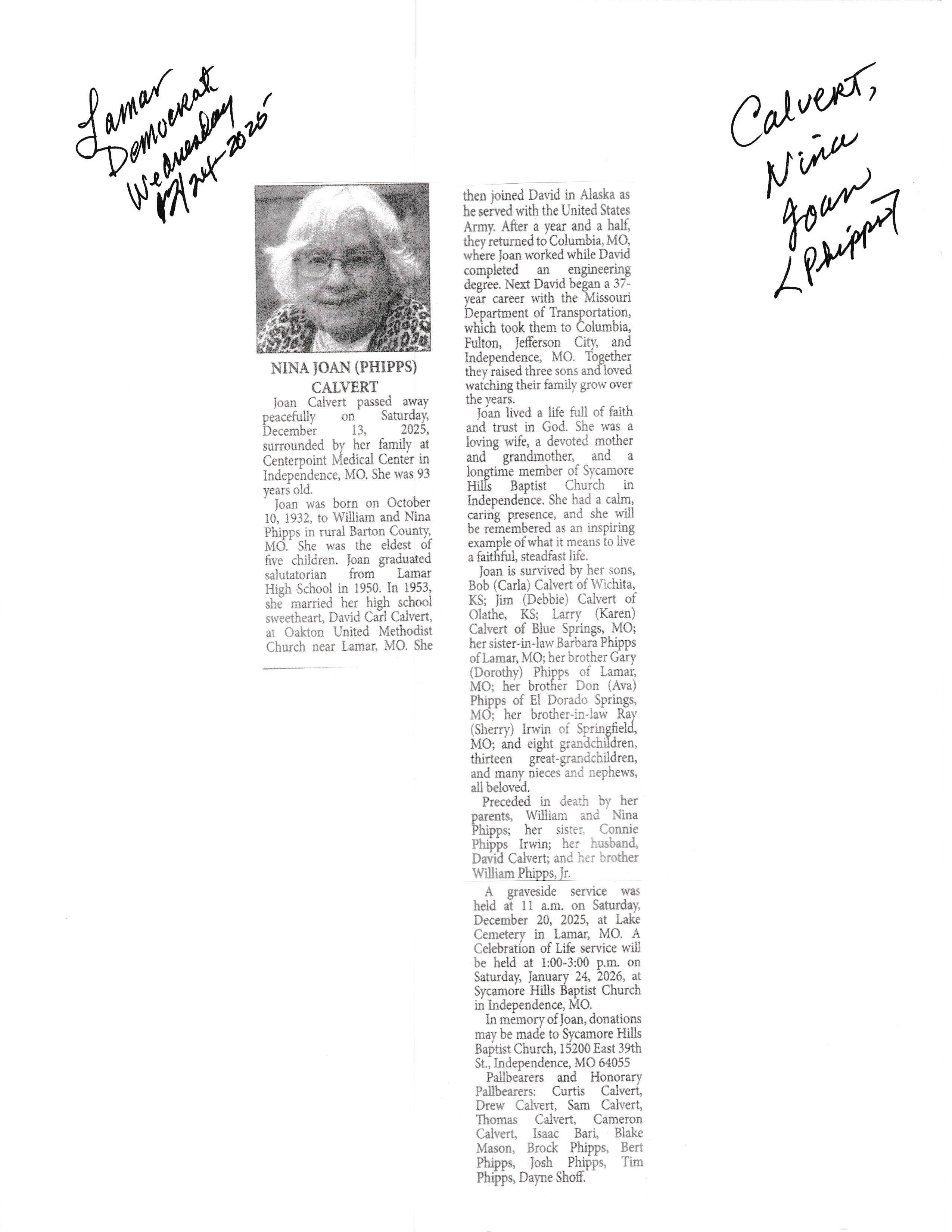 Calvert, Nina Joan {Phipps}
