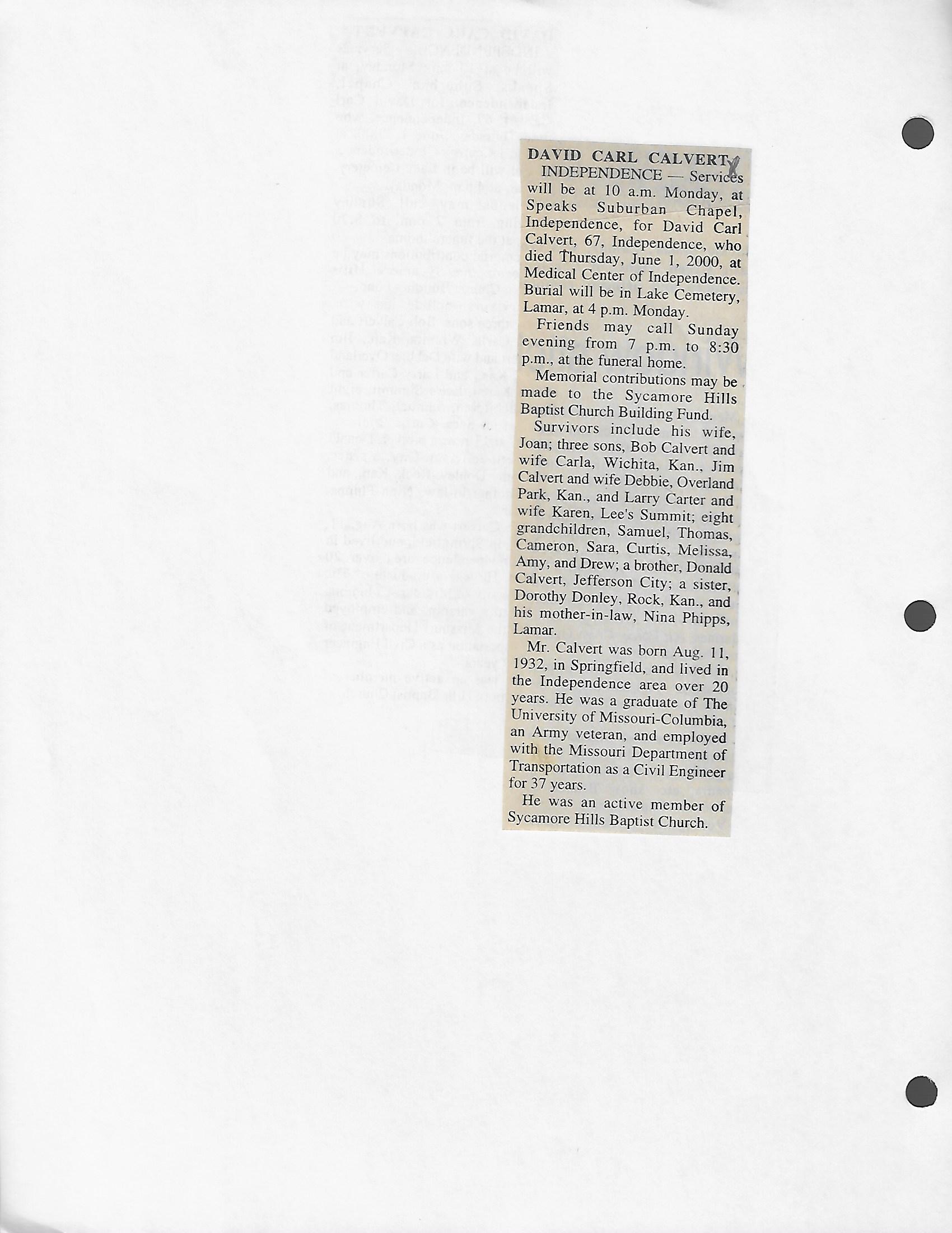 Calvert, David Carl