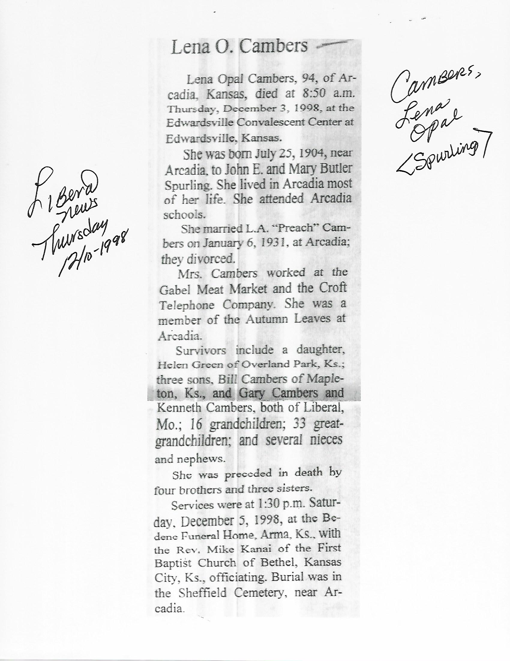 Cambers, Lena Opal