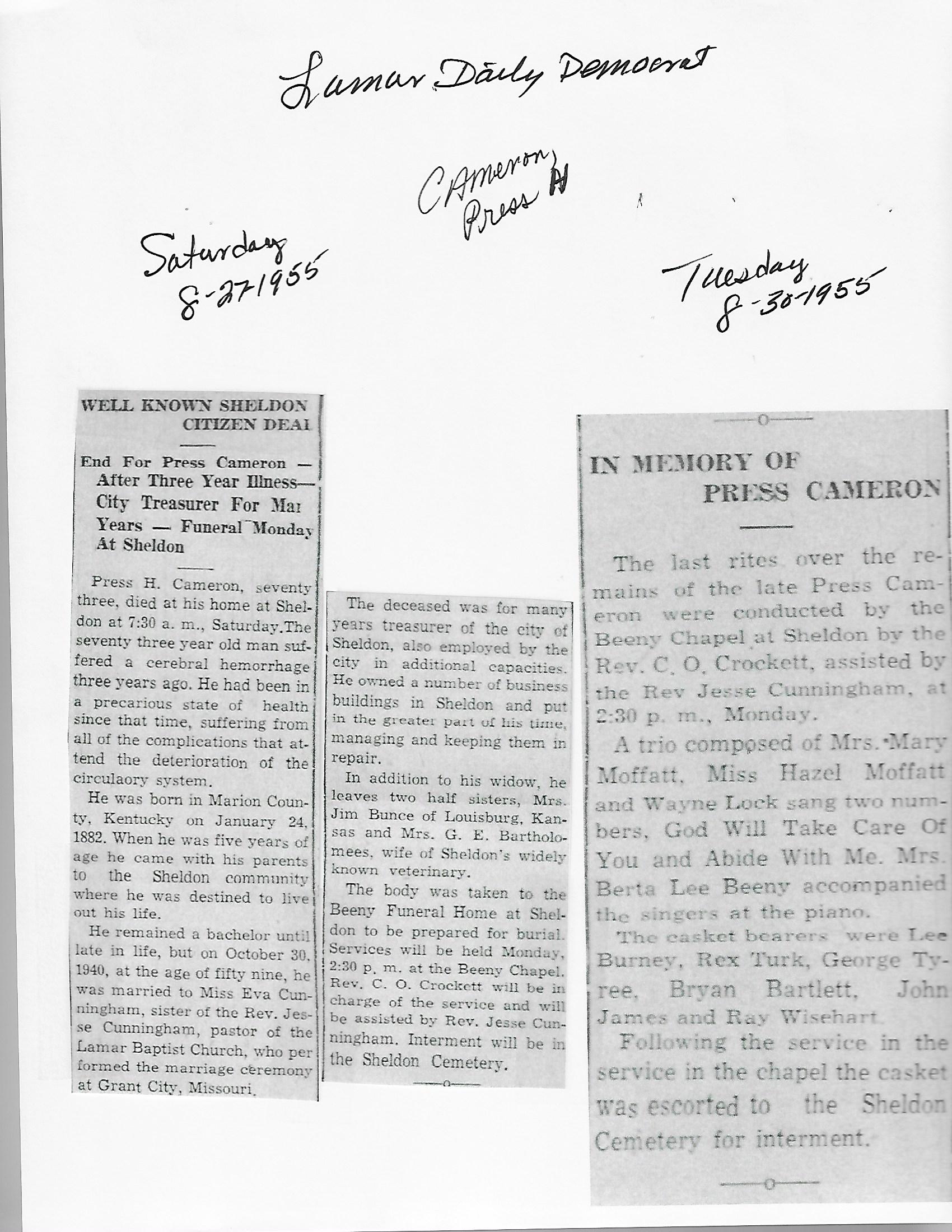 Cameron, Press