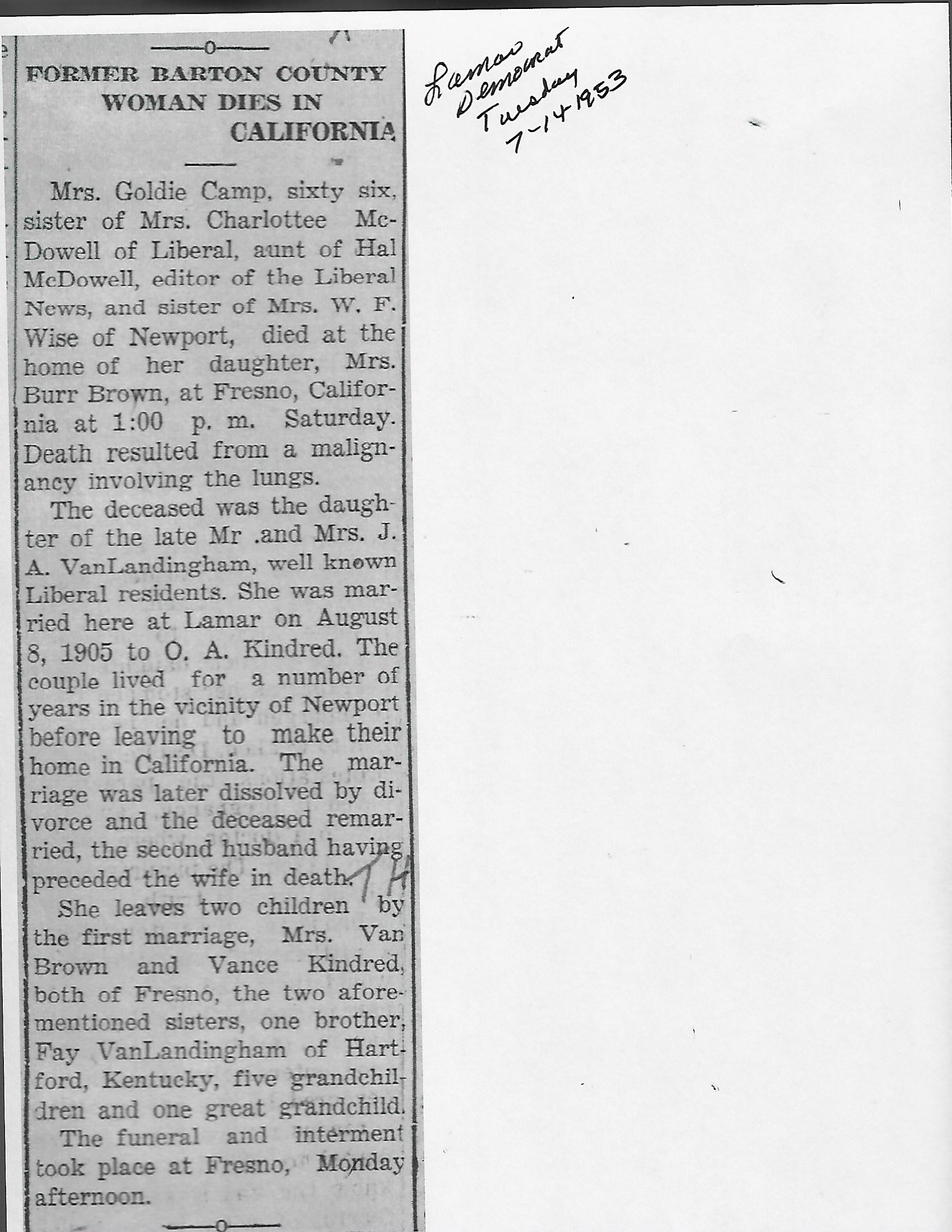 Camp, Goldie {Van