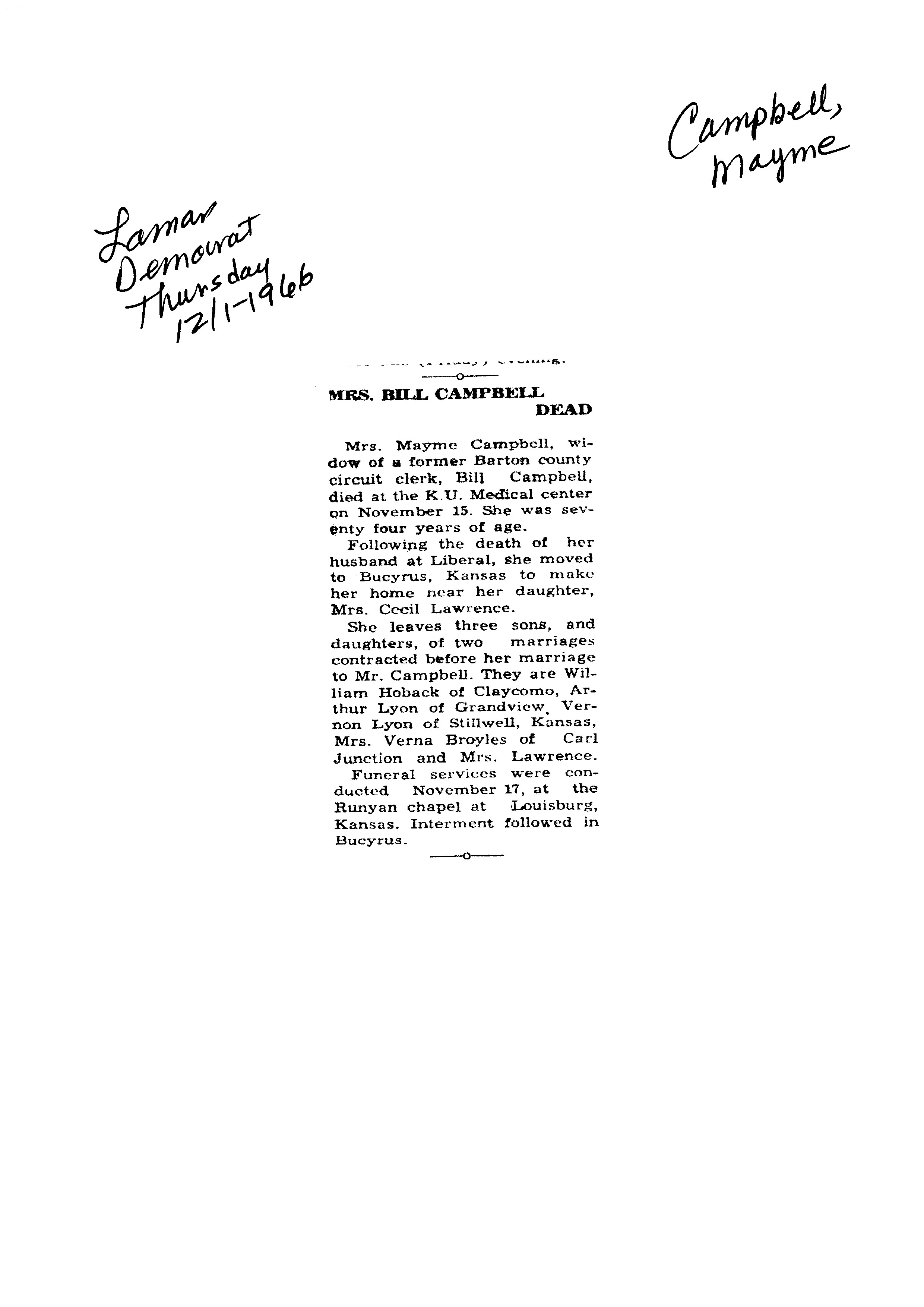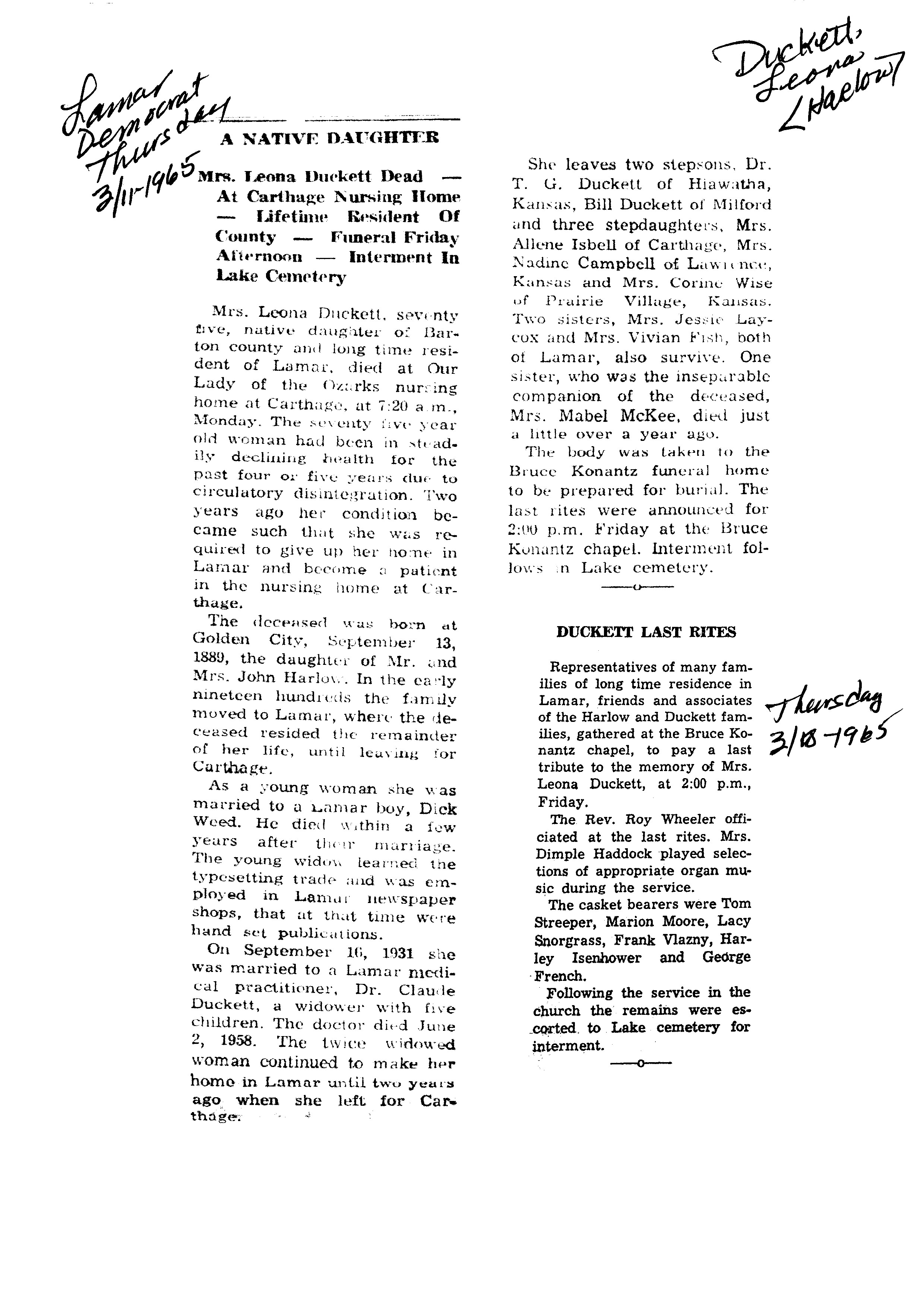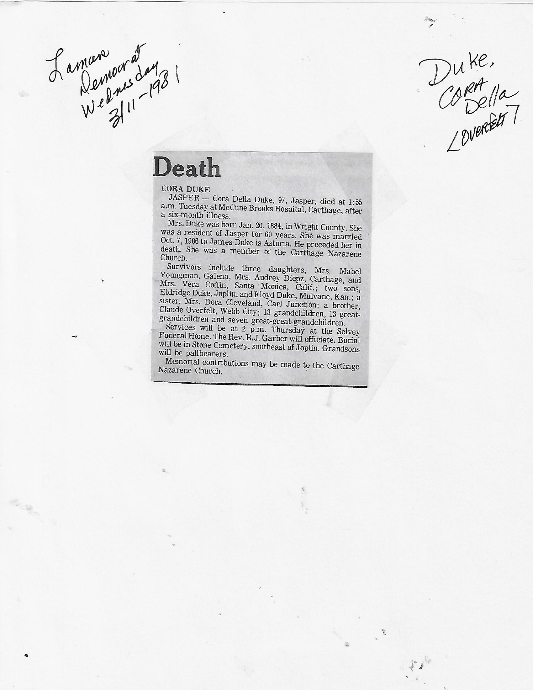 Duncan, Lula N {Lacy}