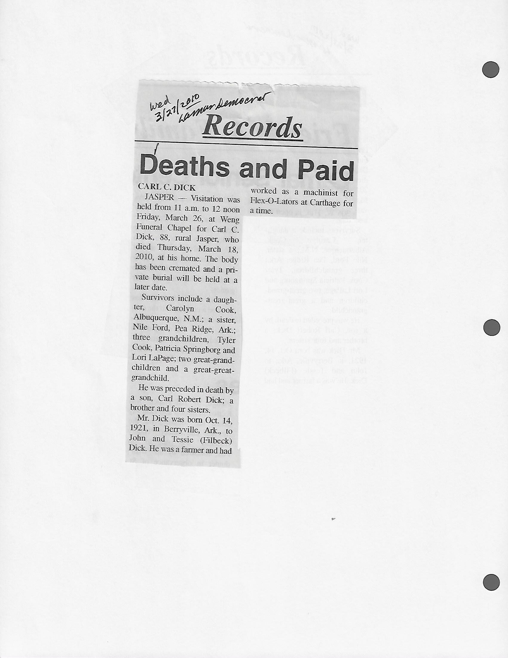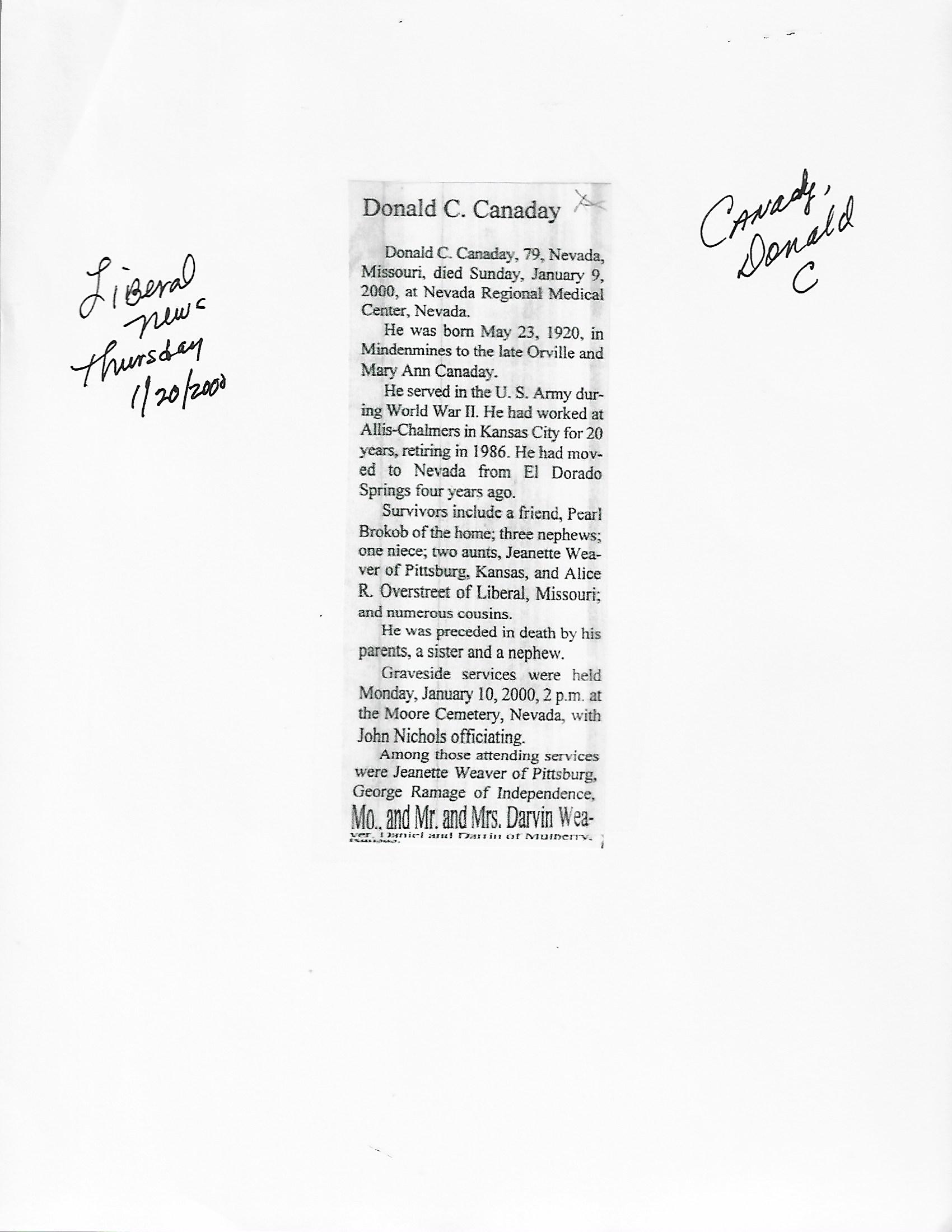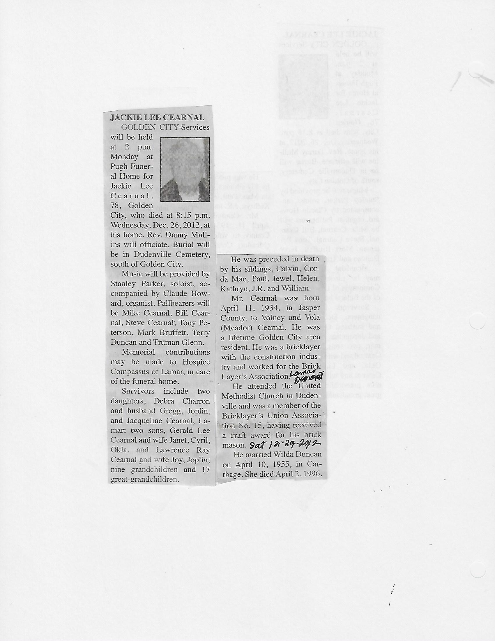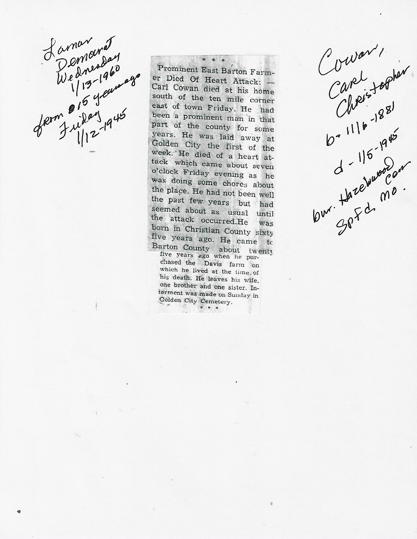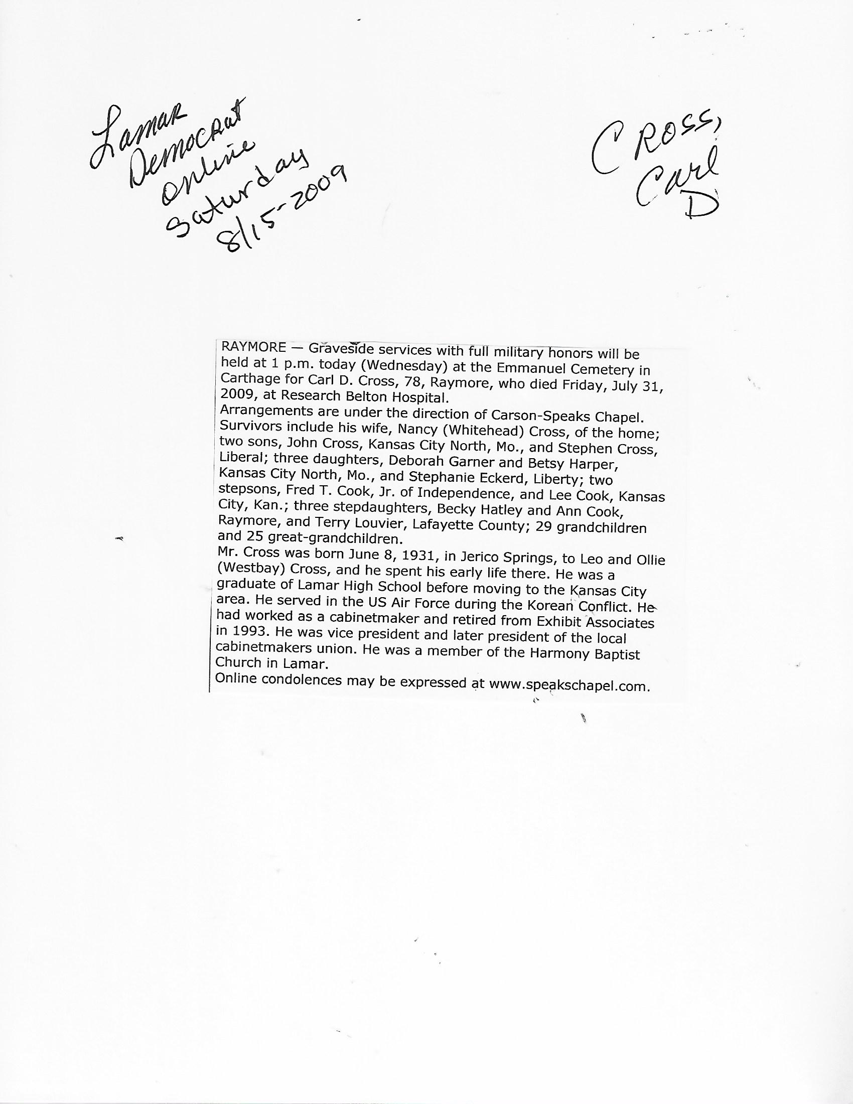 Index C-D for Other Obituaries