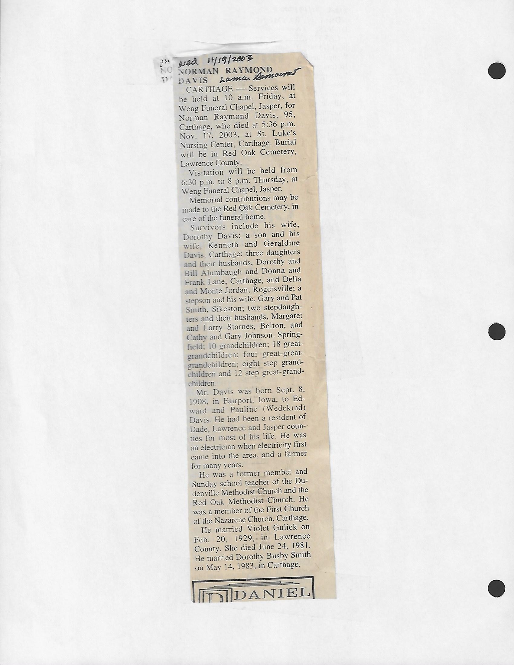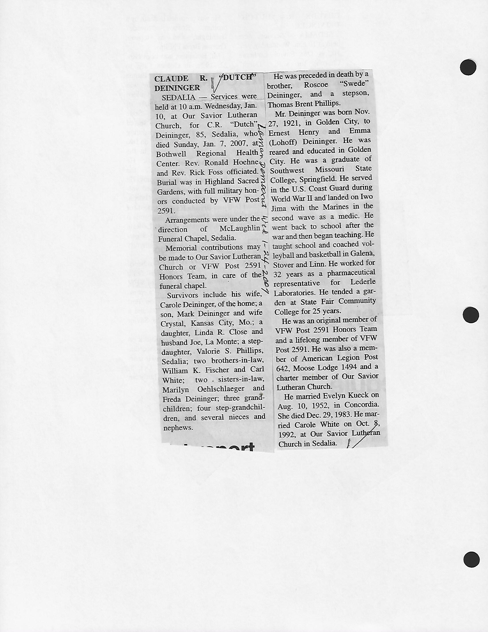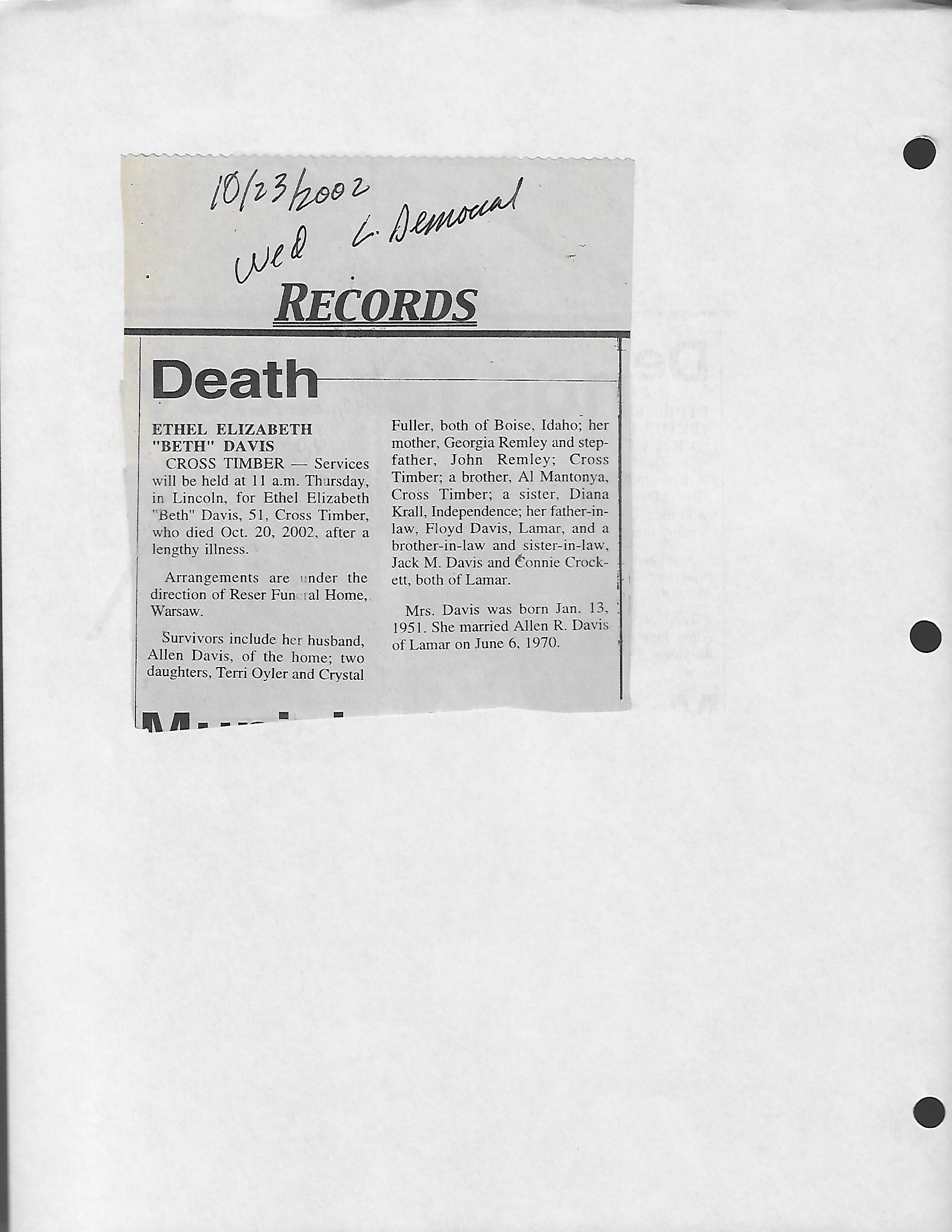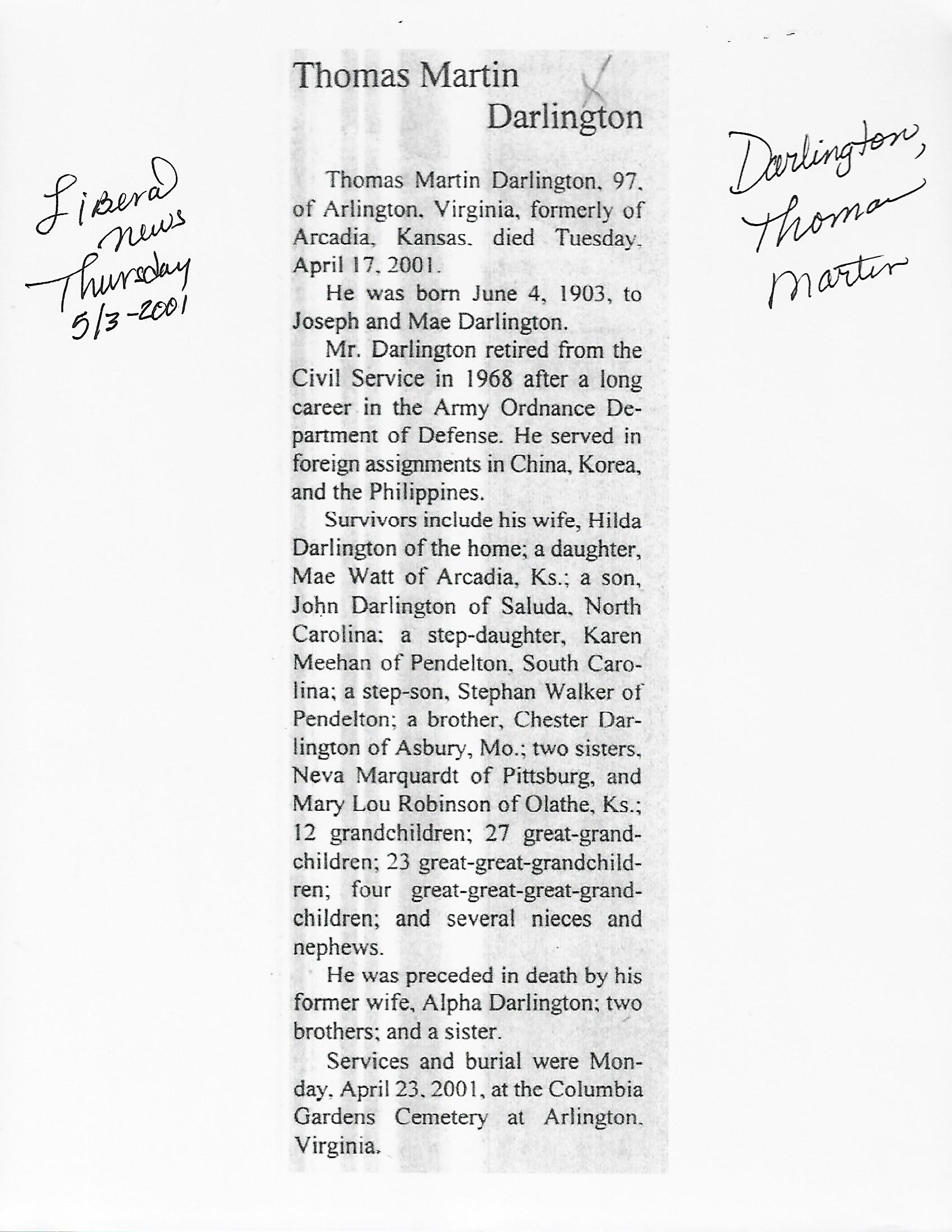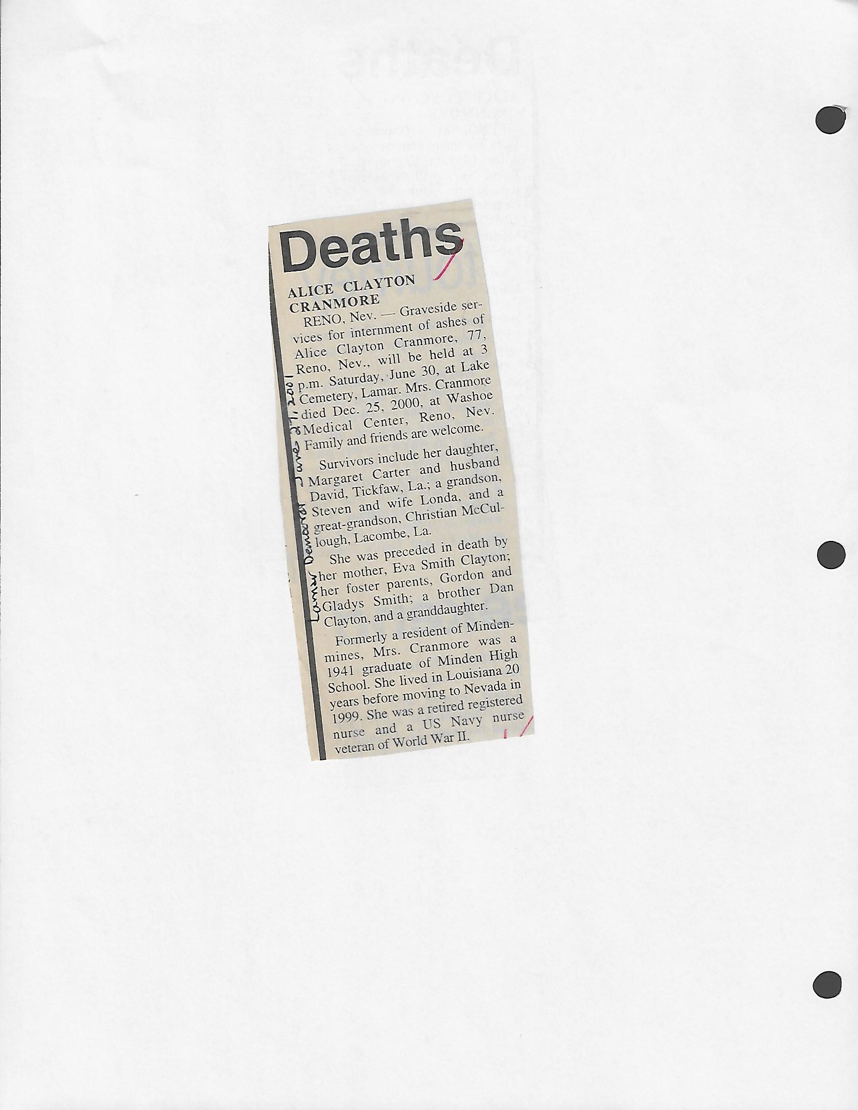 Index C-D for Other Obituaries