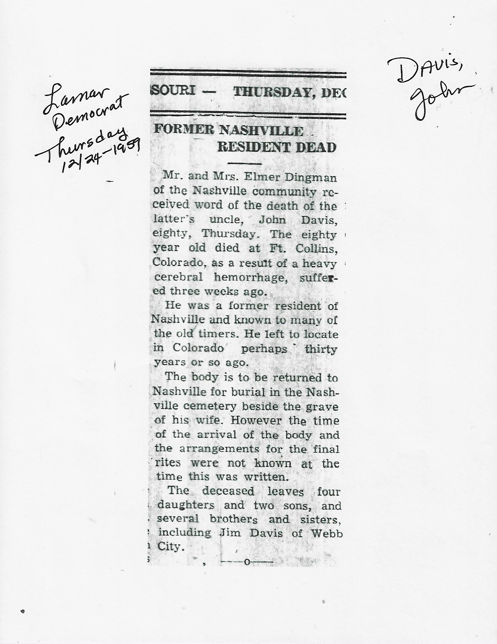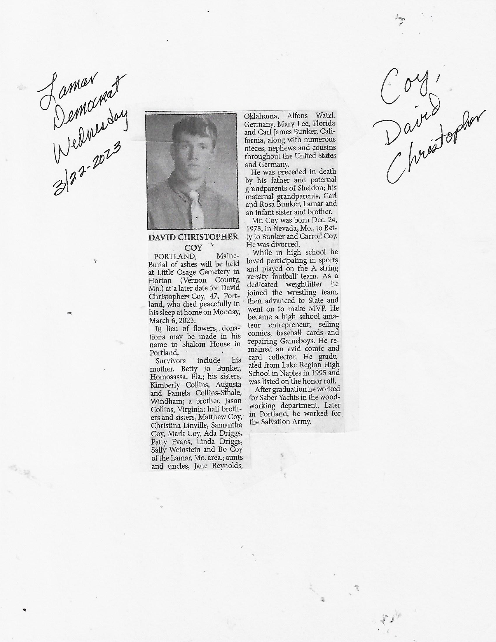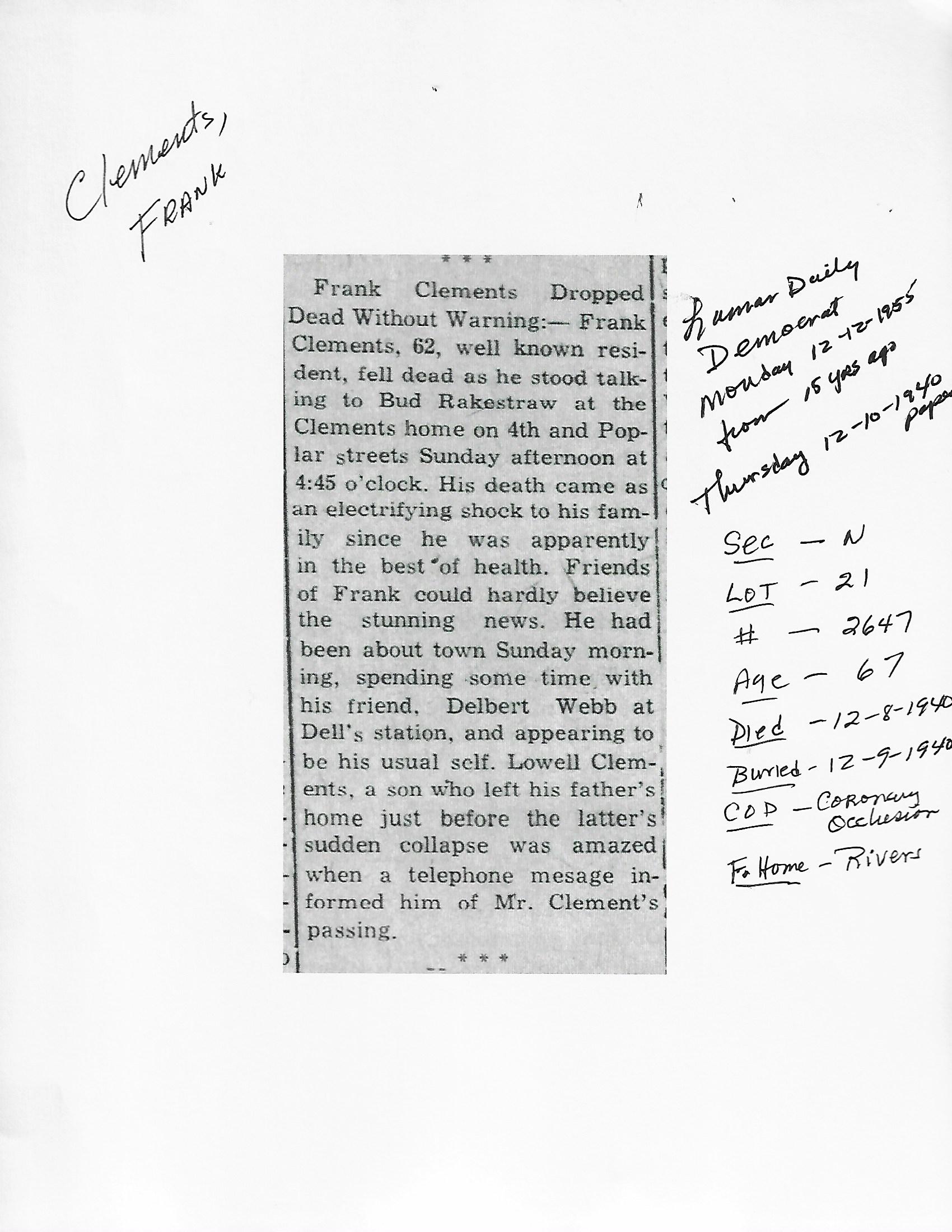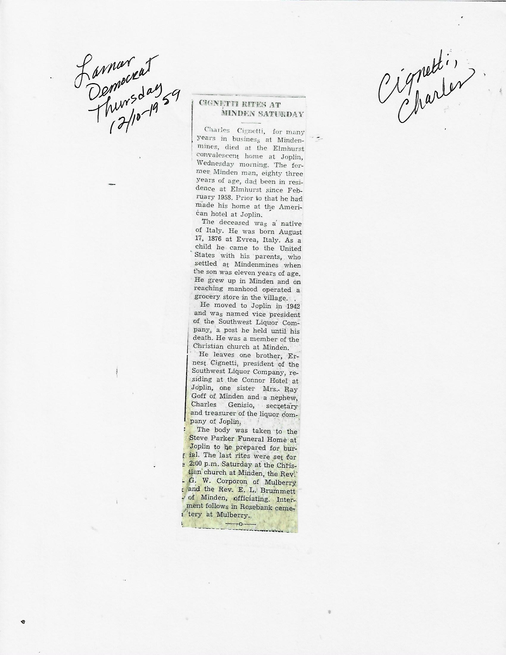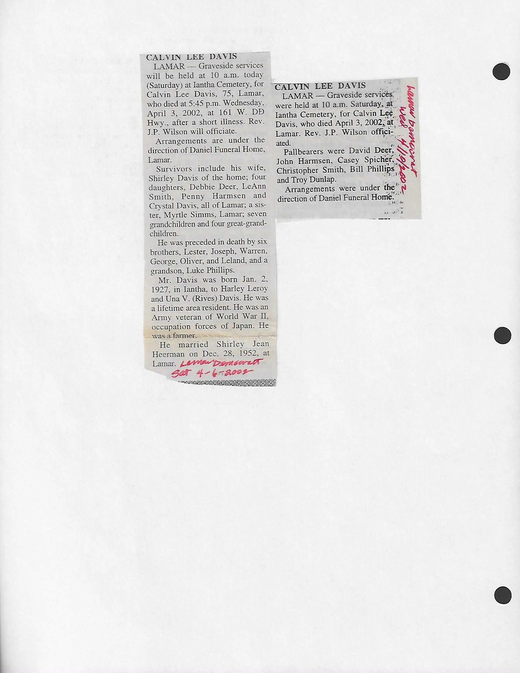 Index C-D for Other Obituaries