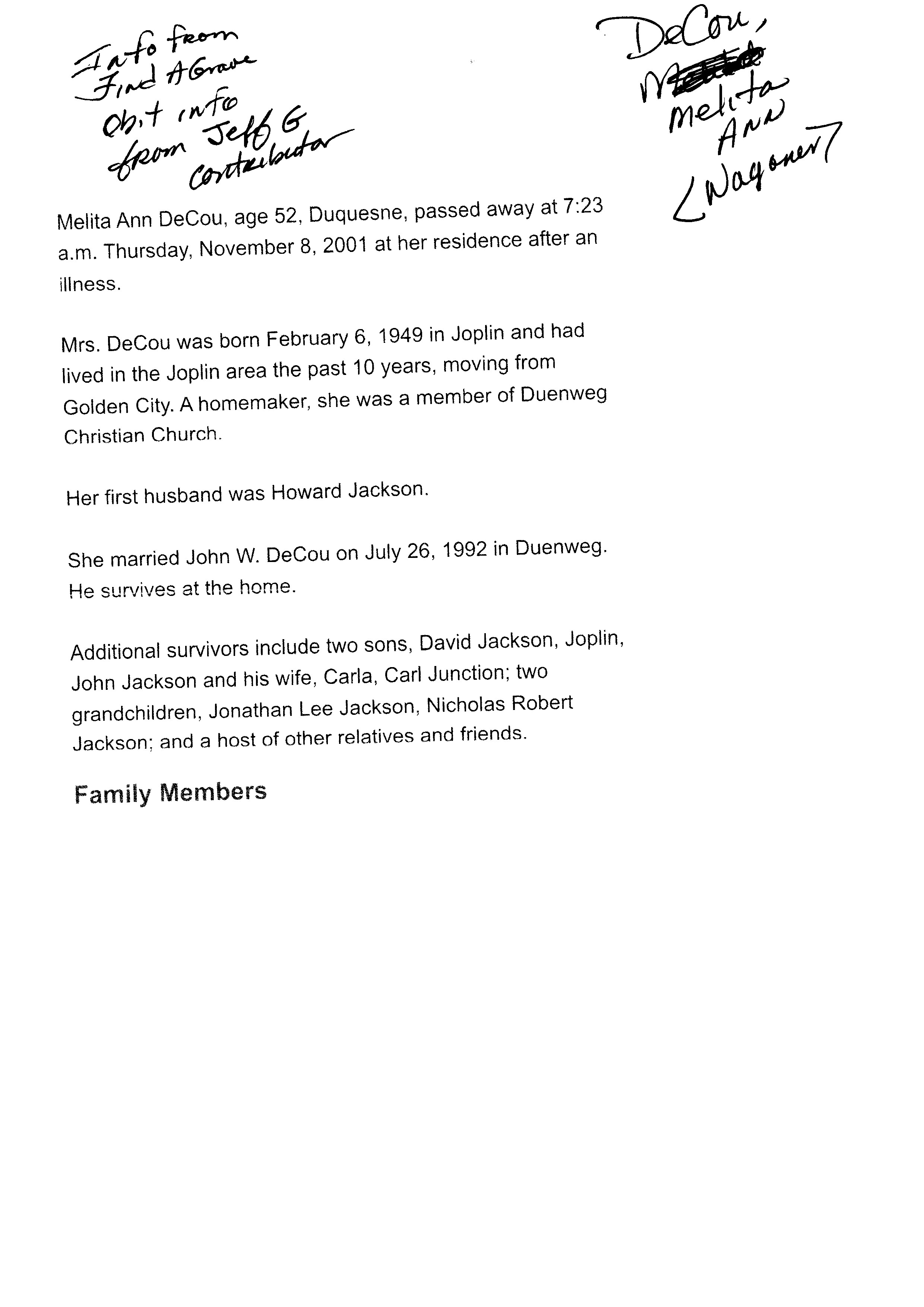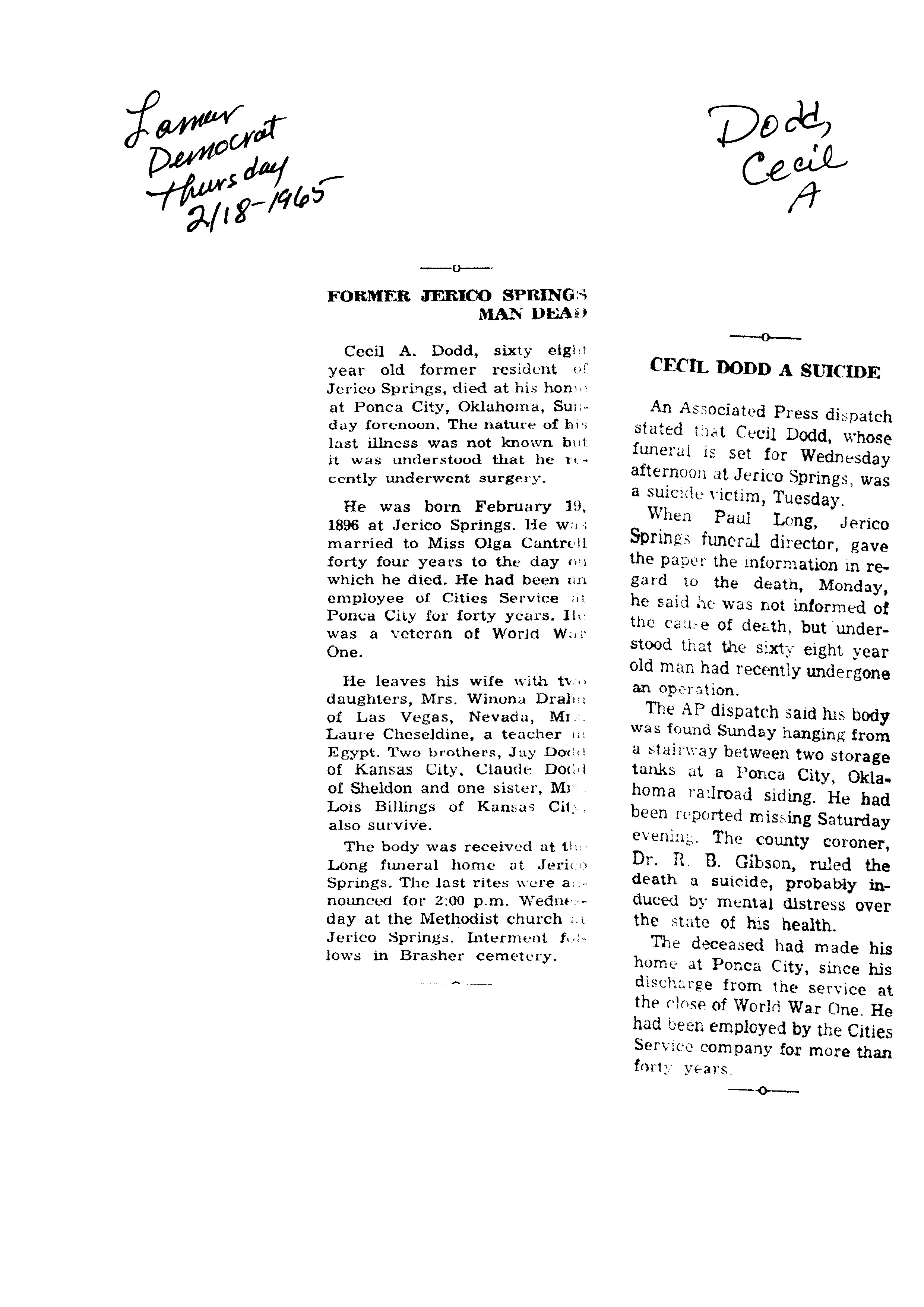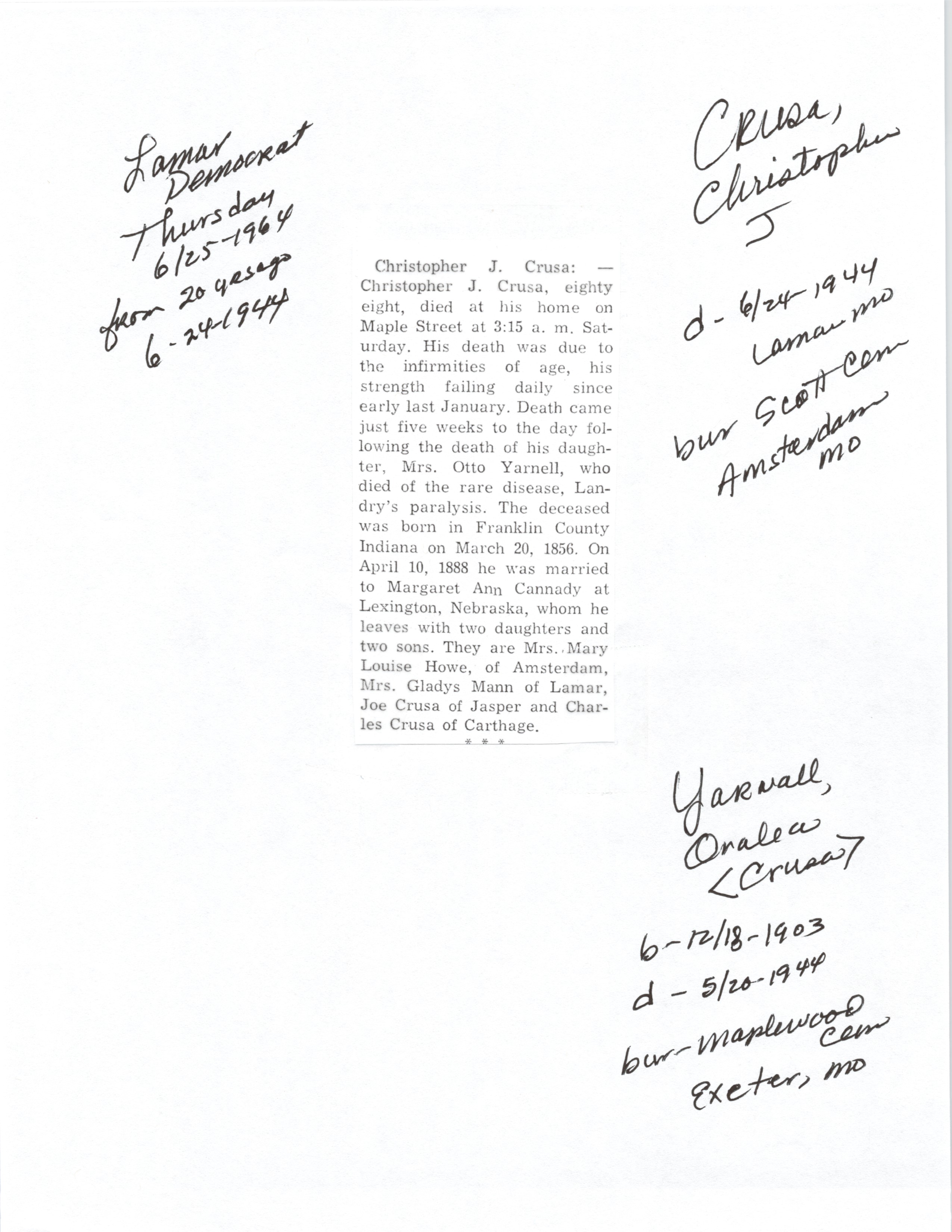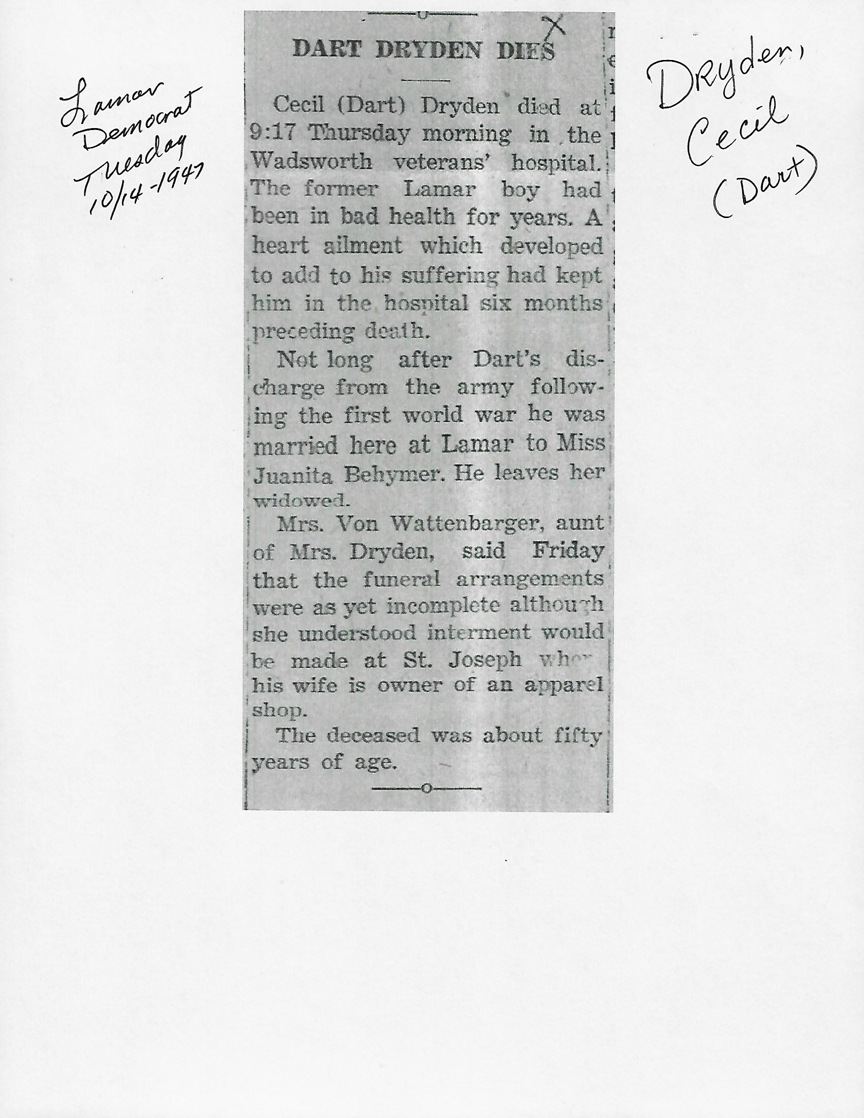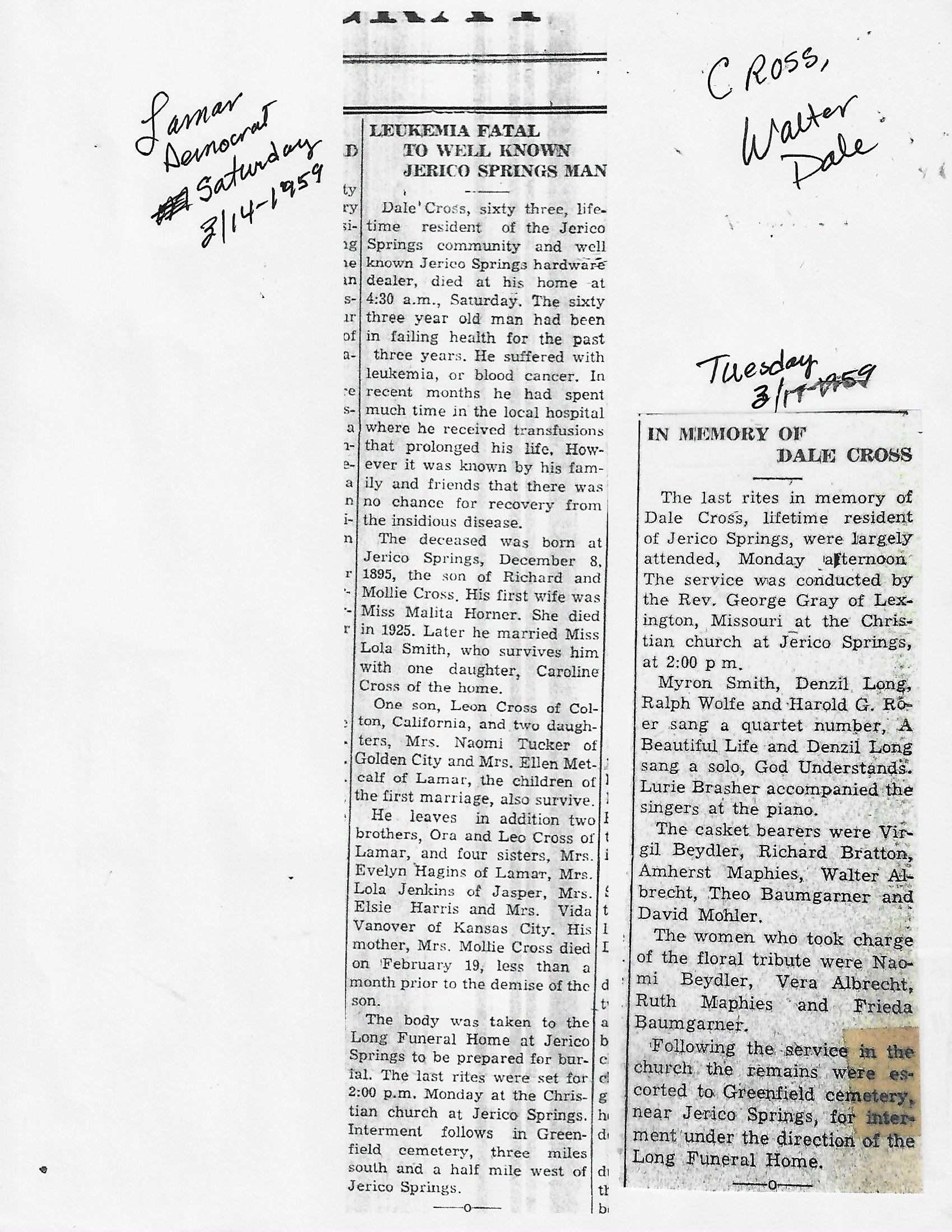 Index C-D for Other Obituaries