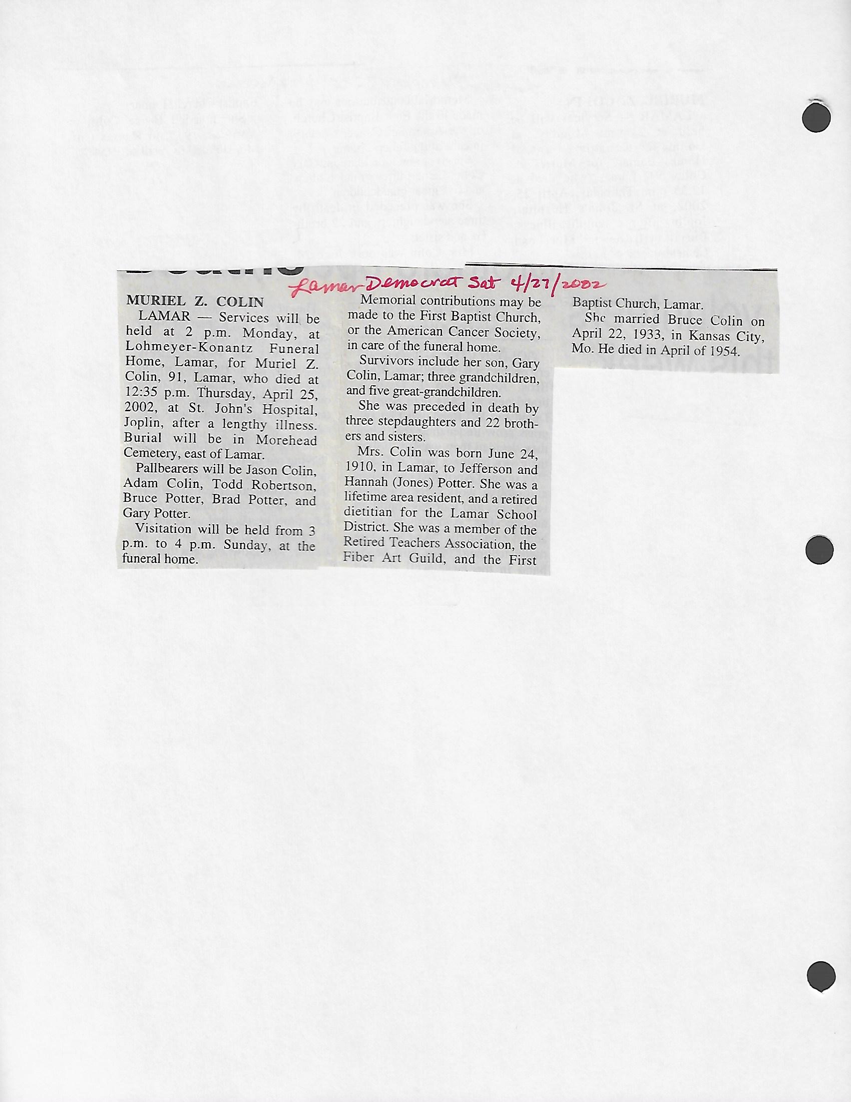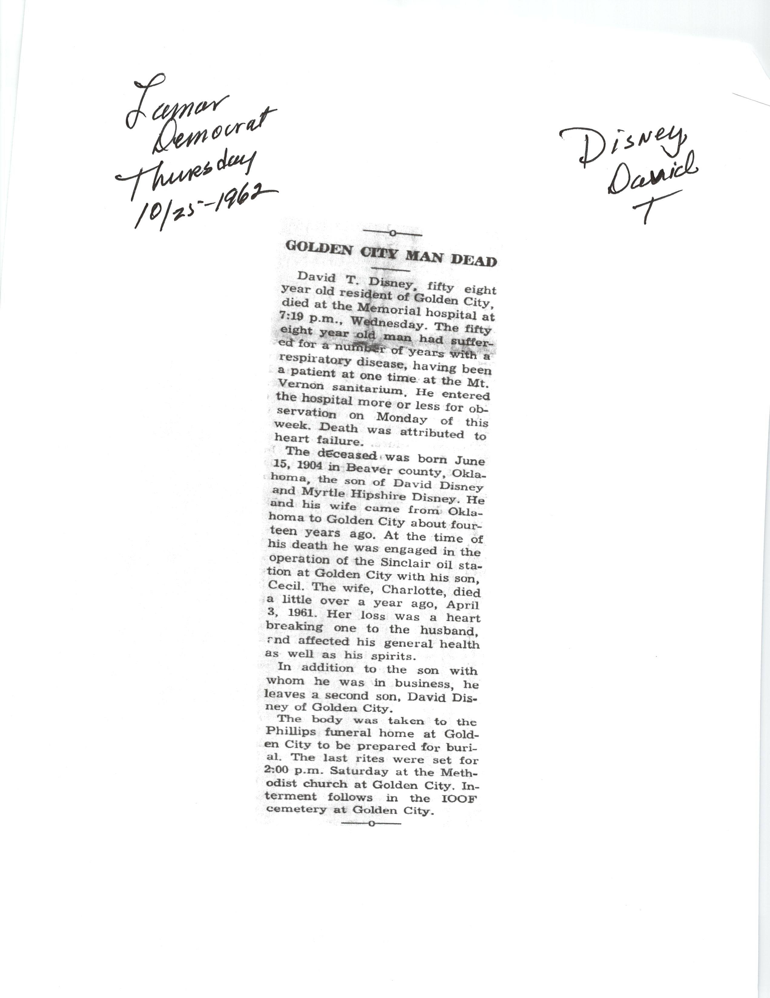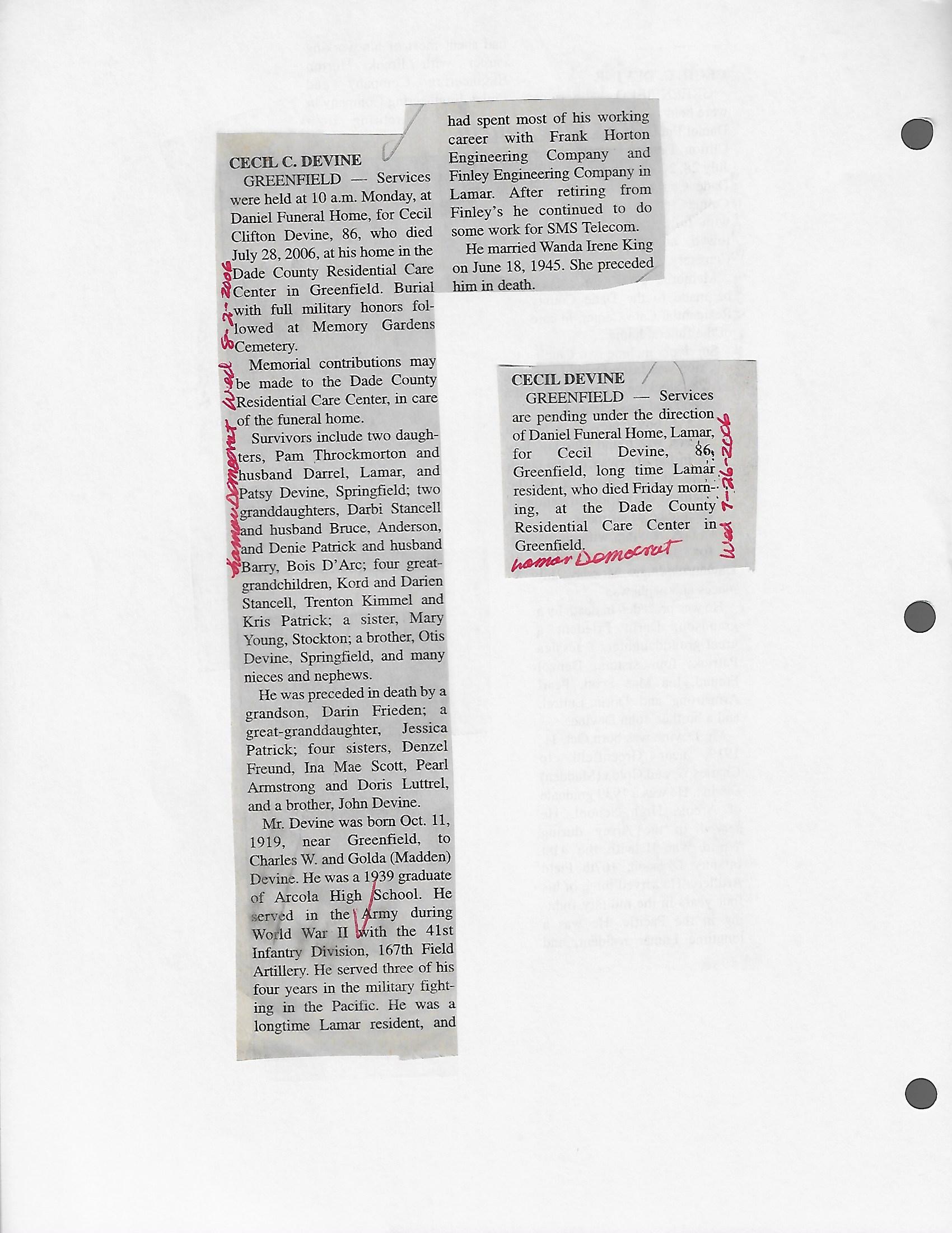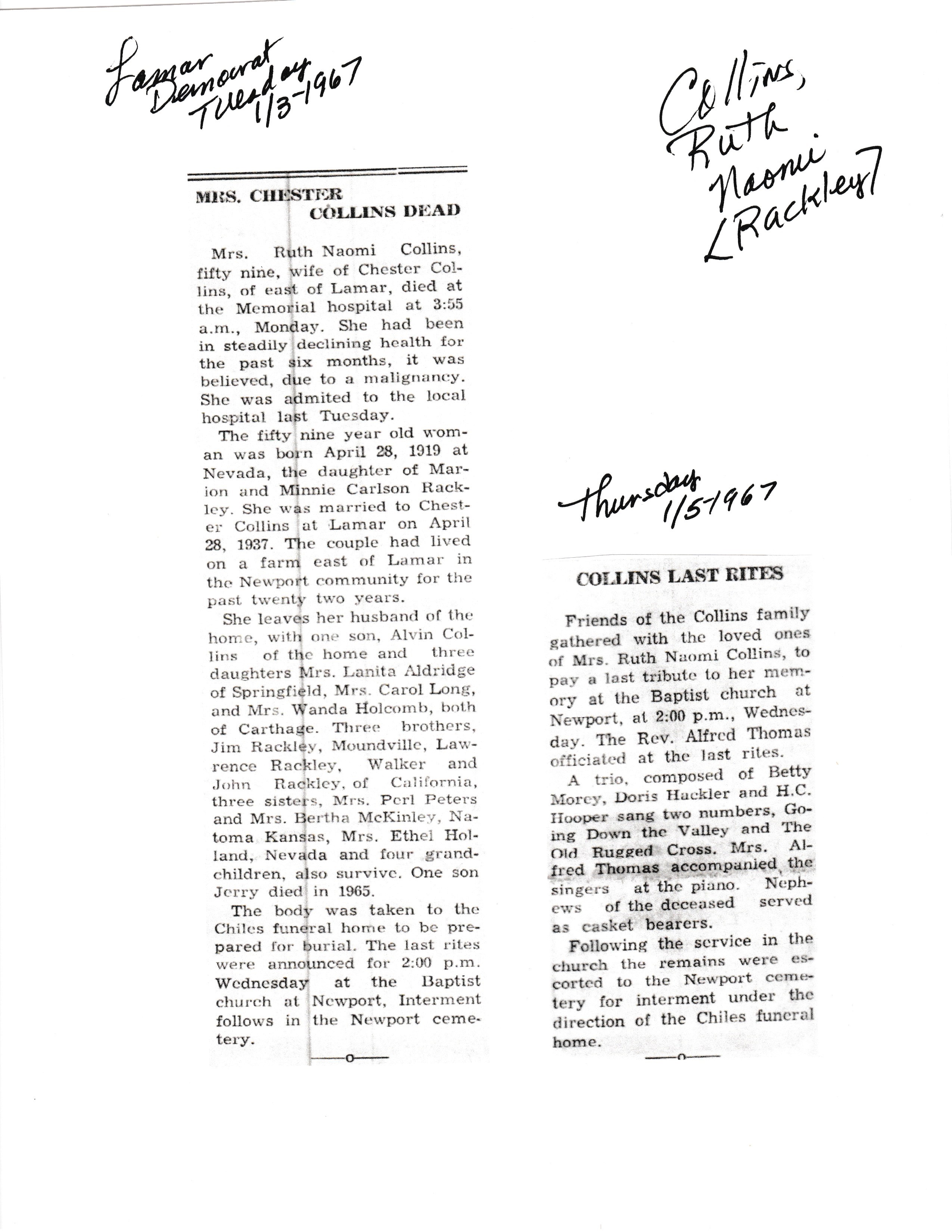 Index C-D for Other Obituaries