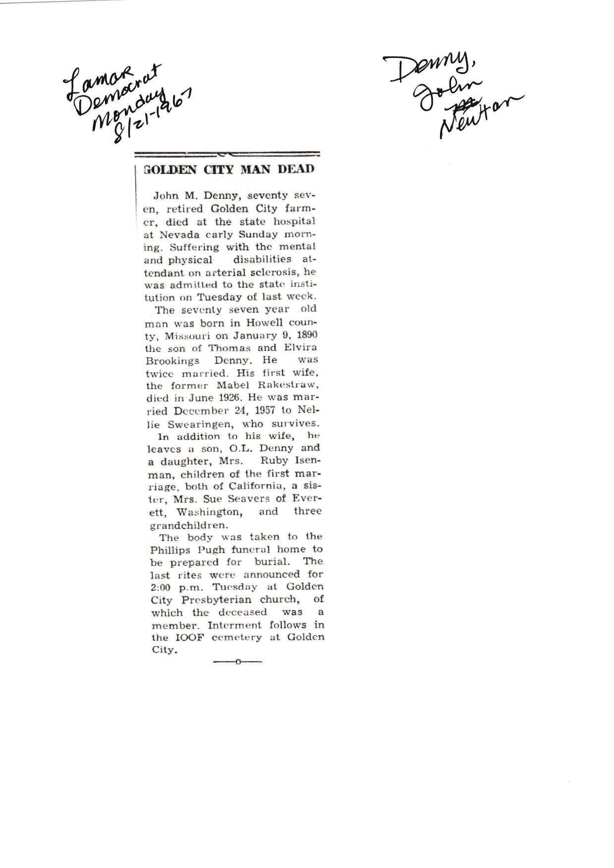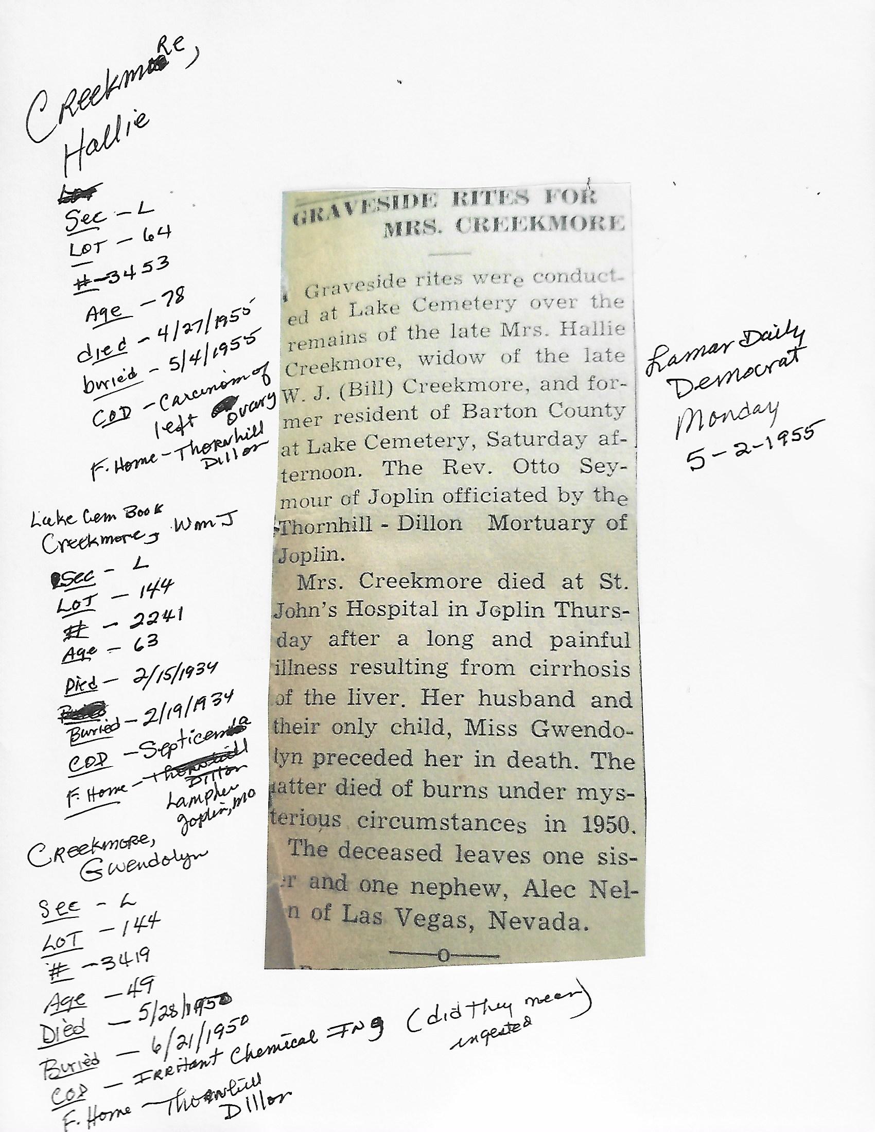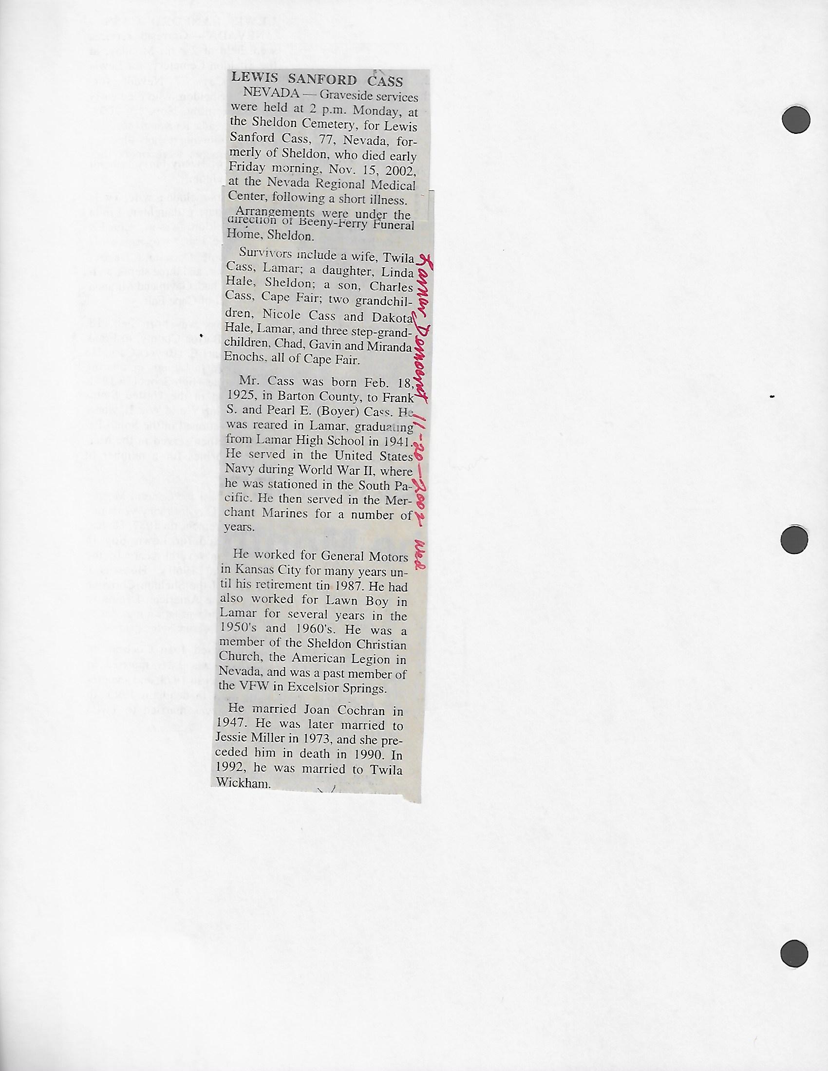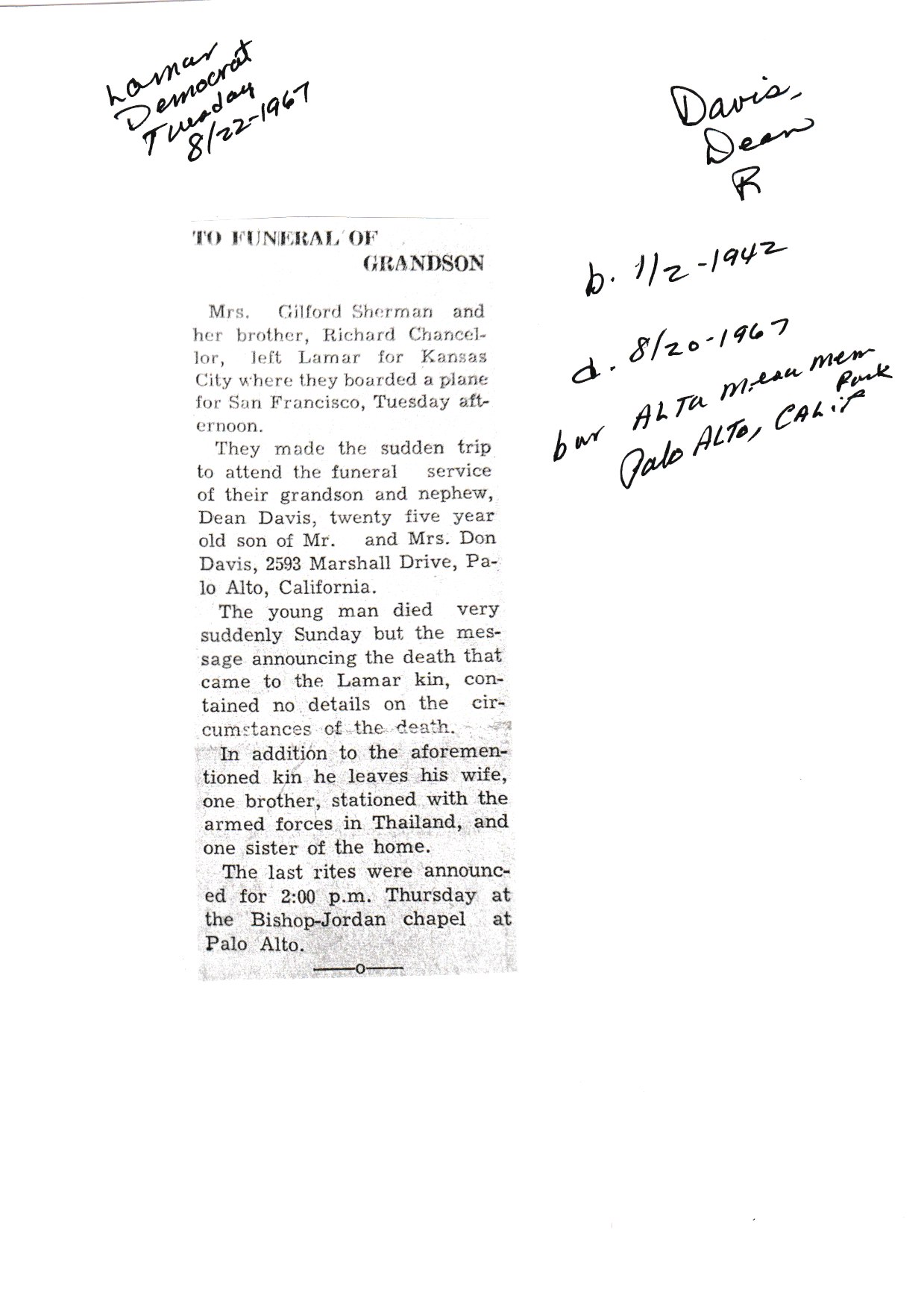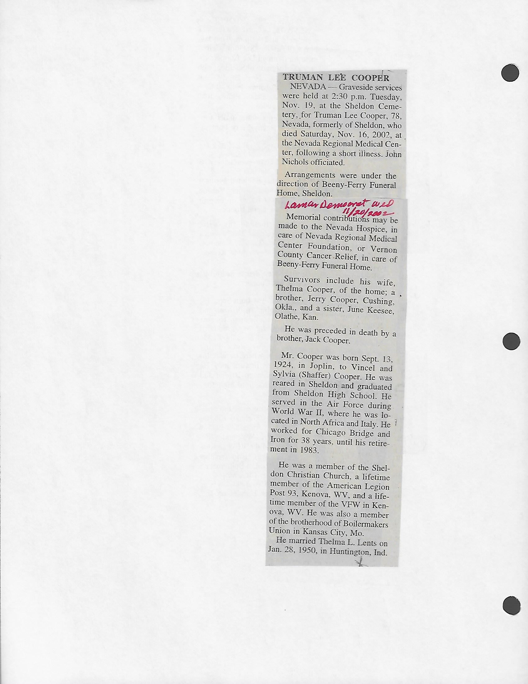 Index C-D for Other Obituaries