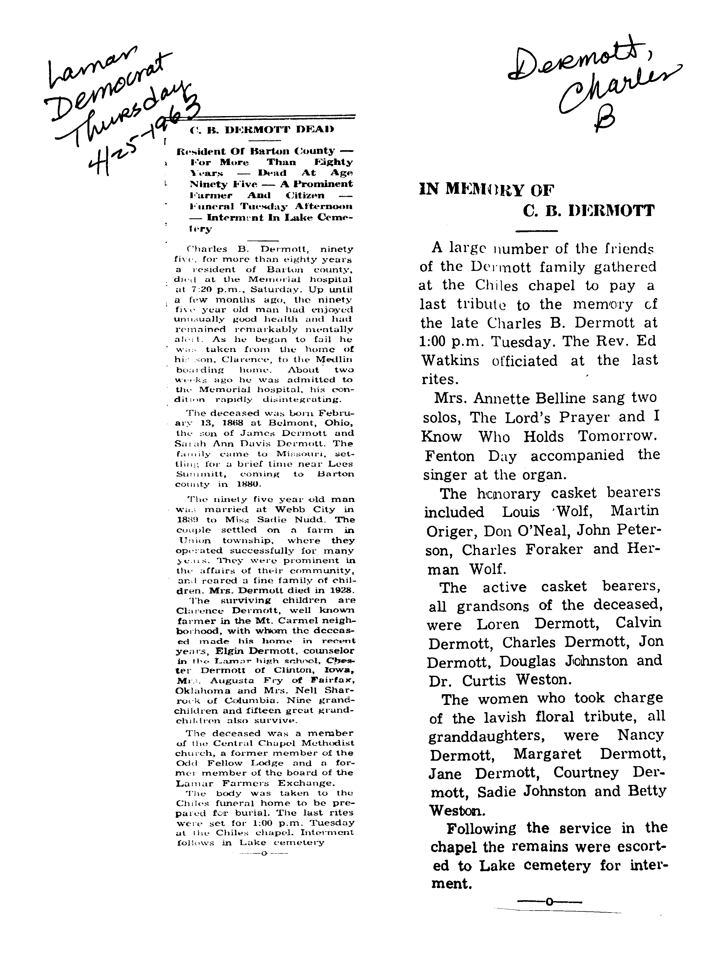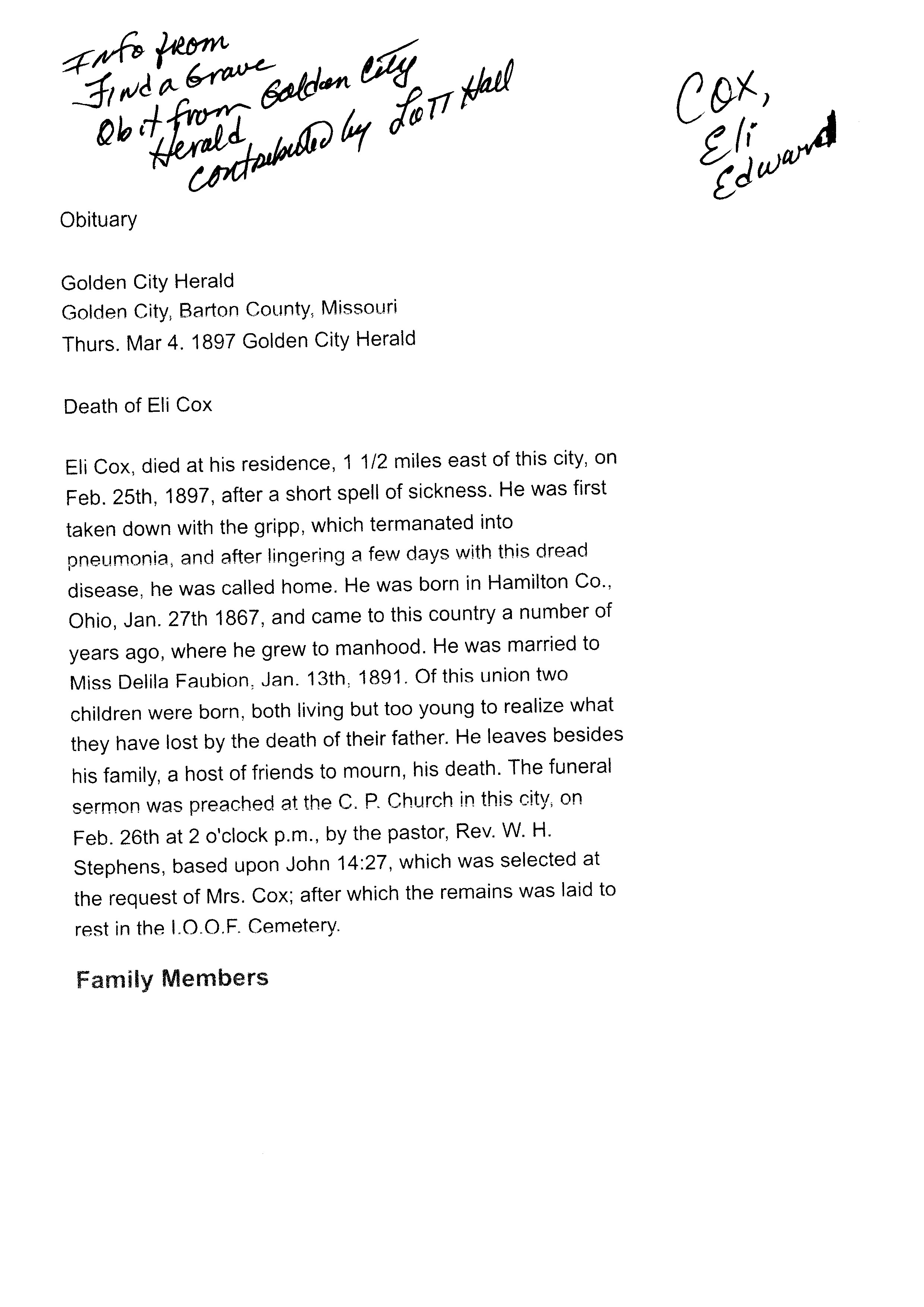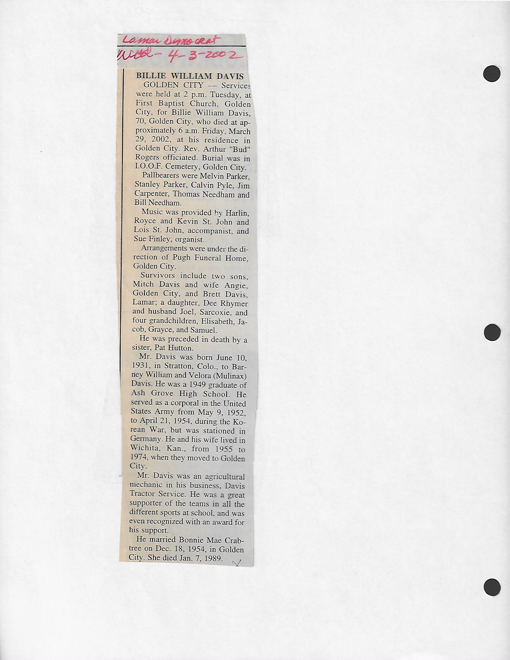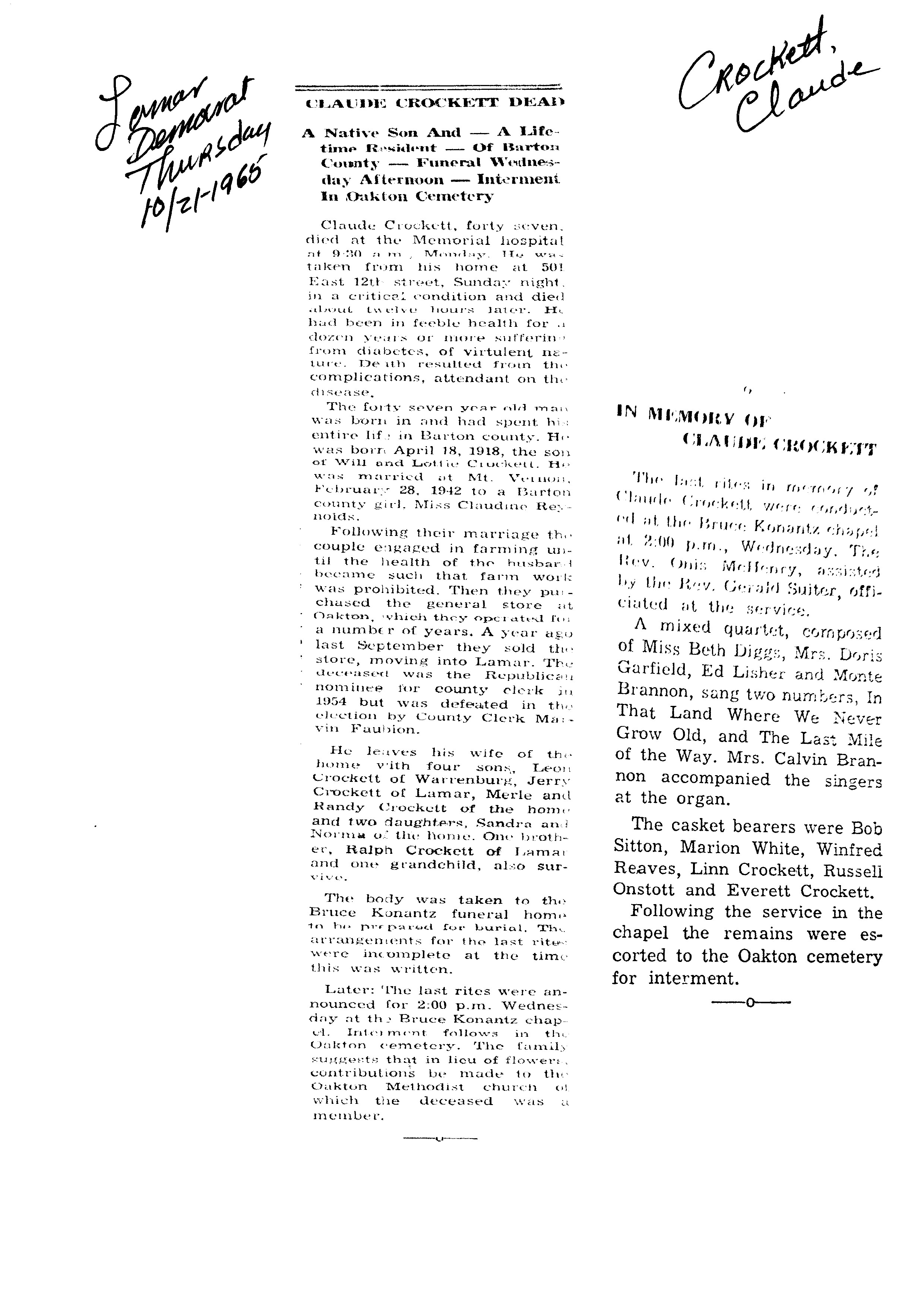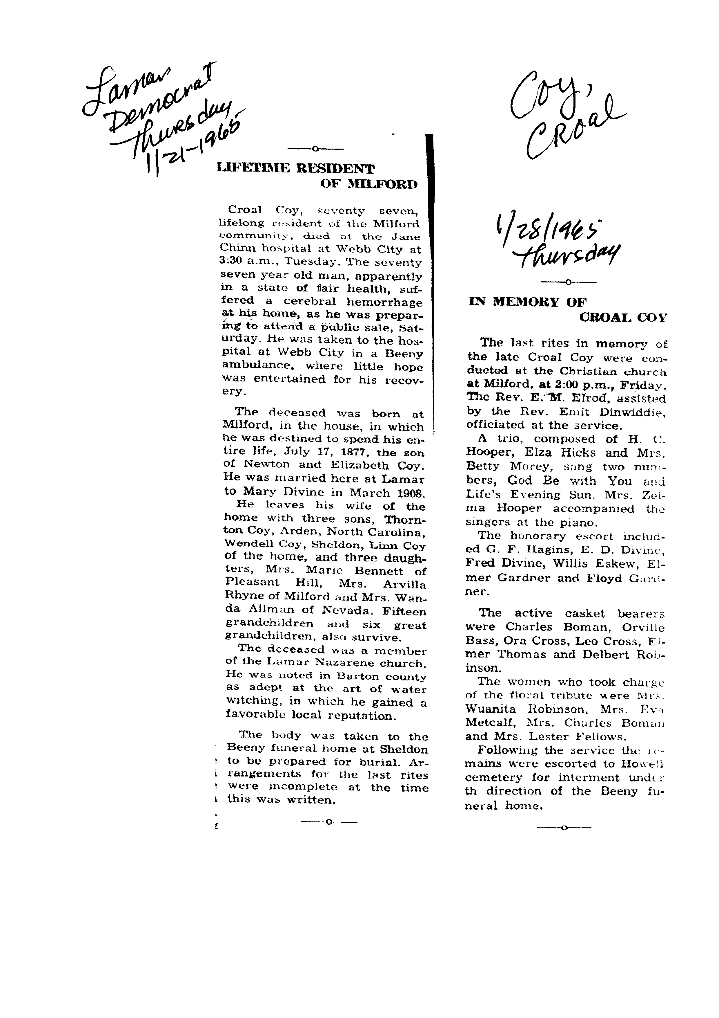 Index C-D for Other Obituaries