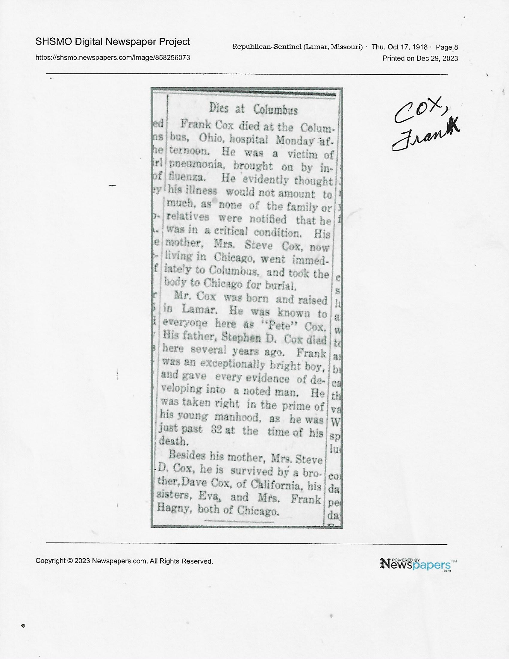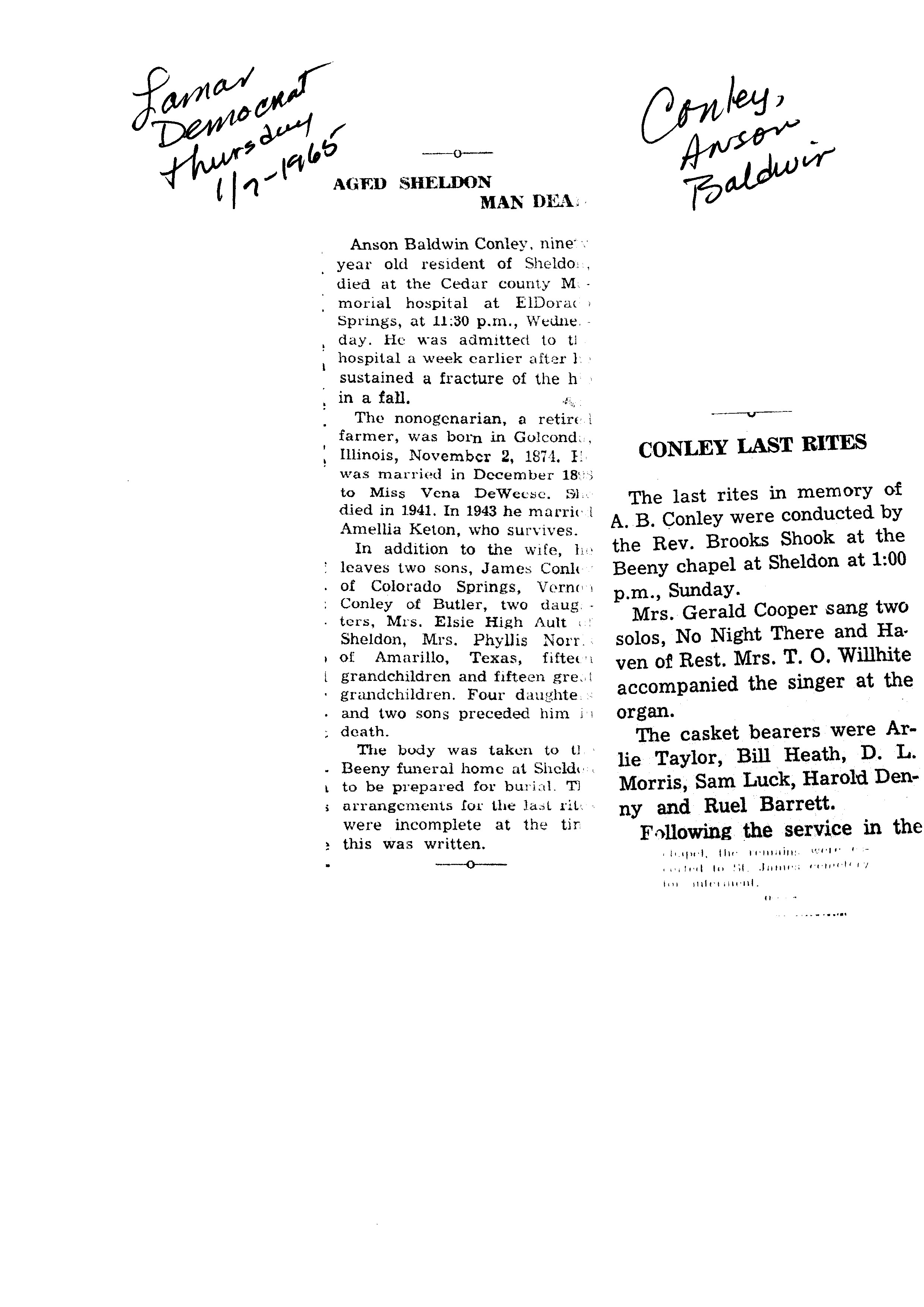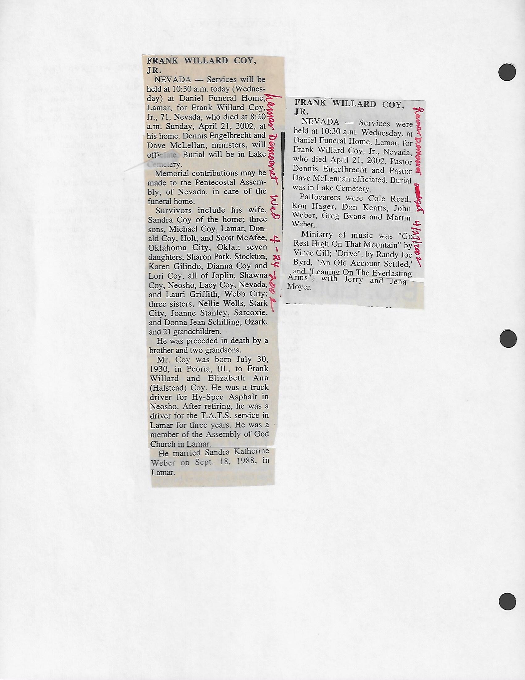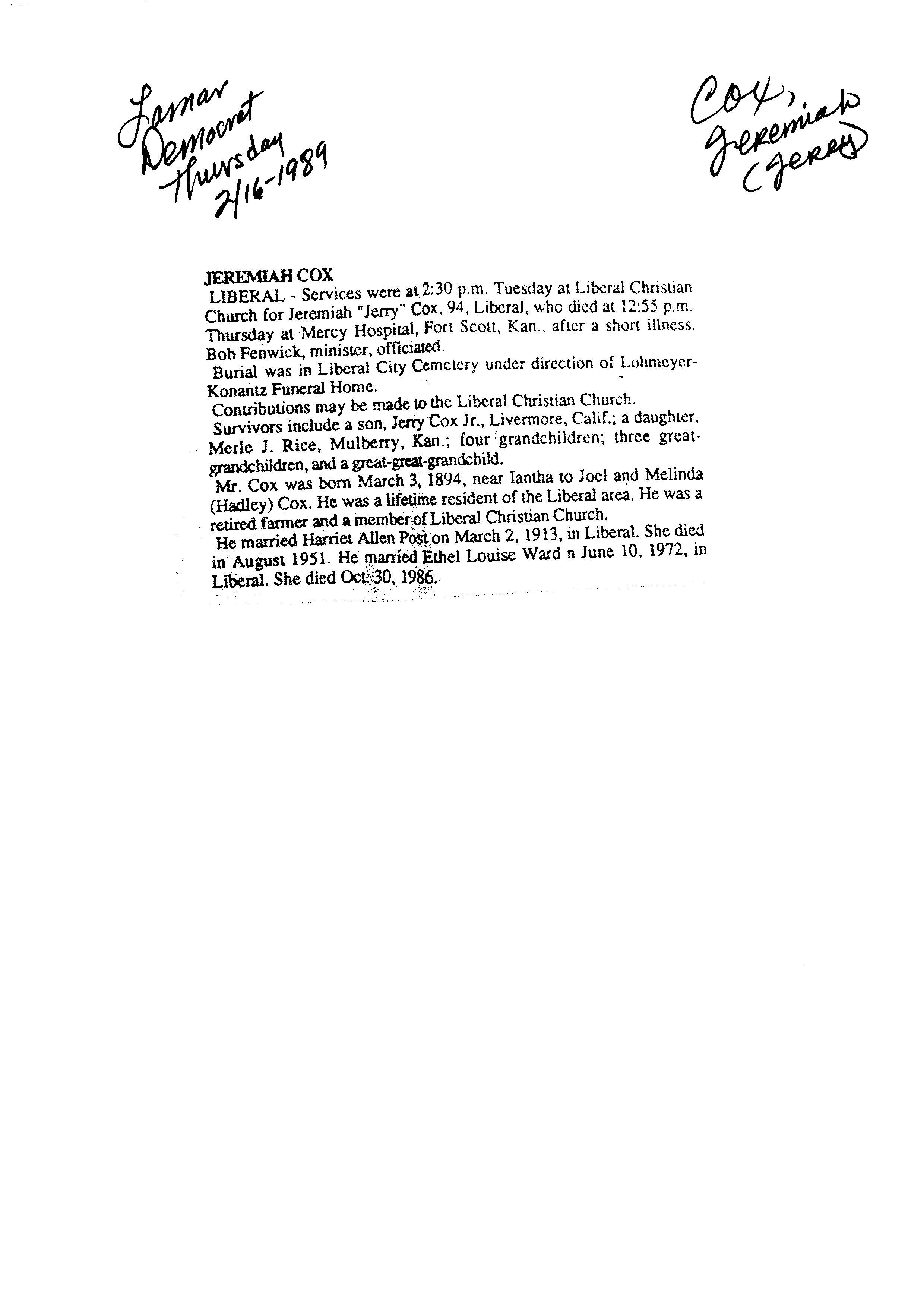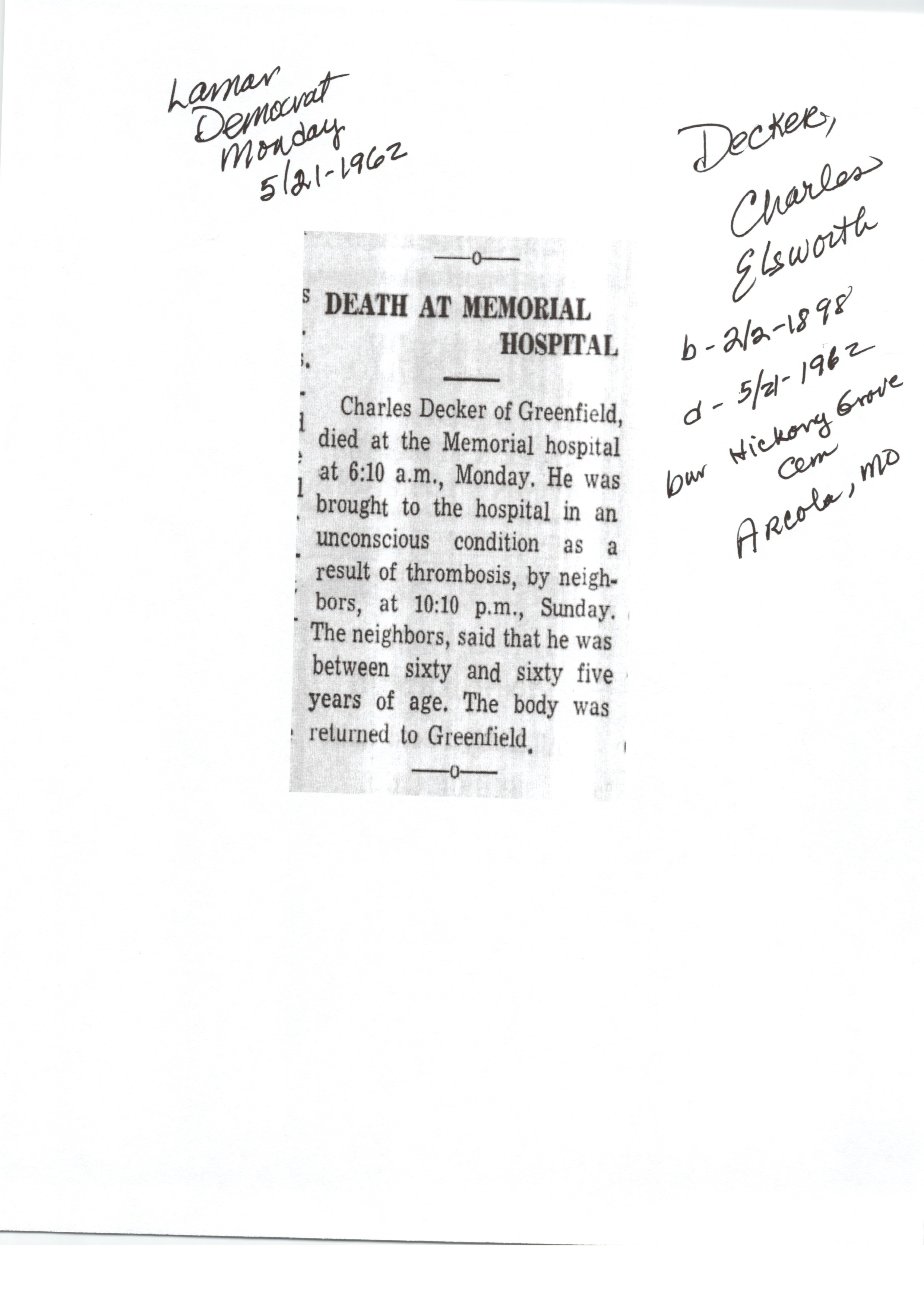 Index C-D for Other Obituaries