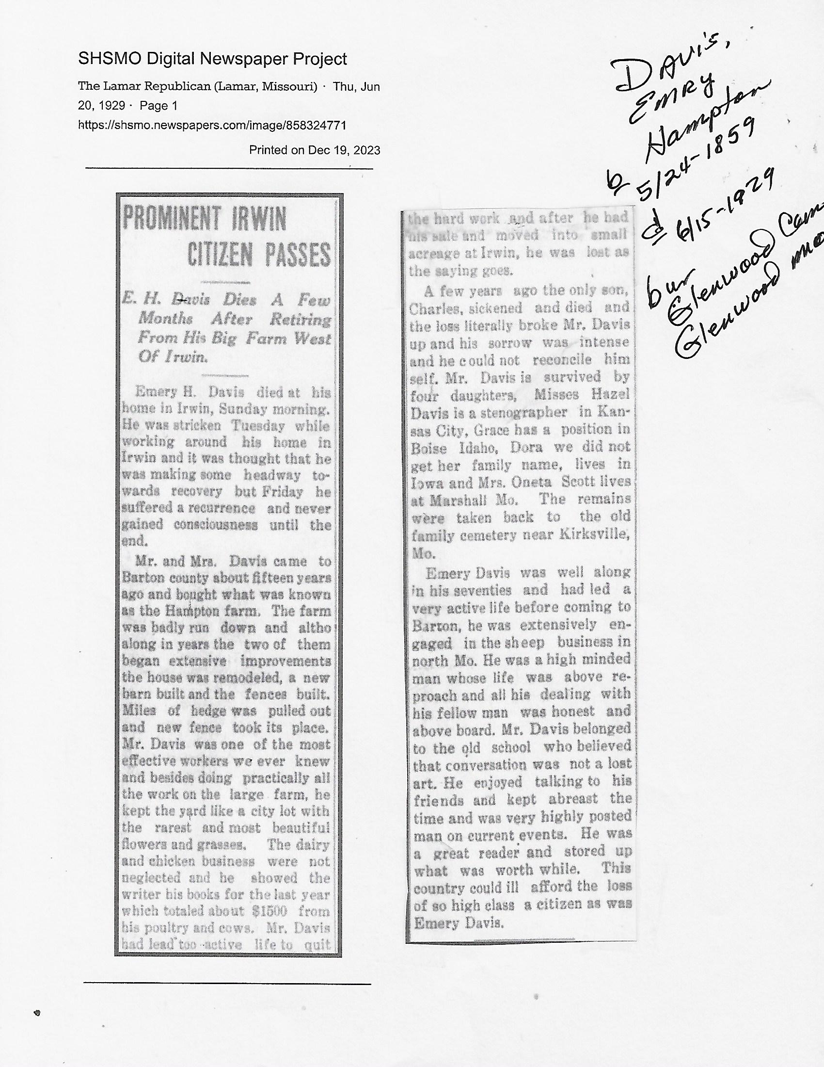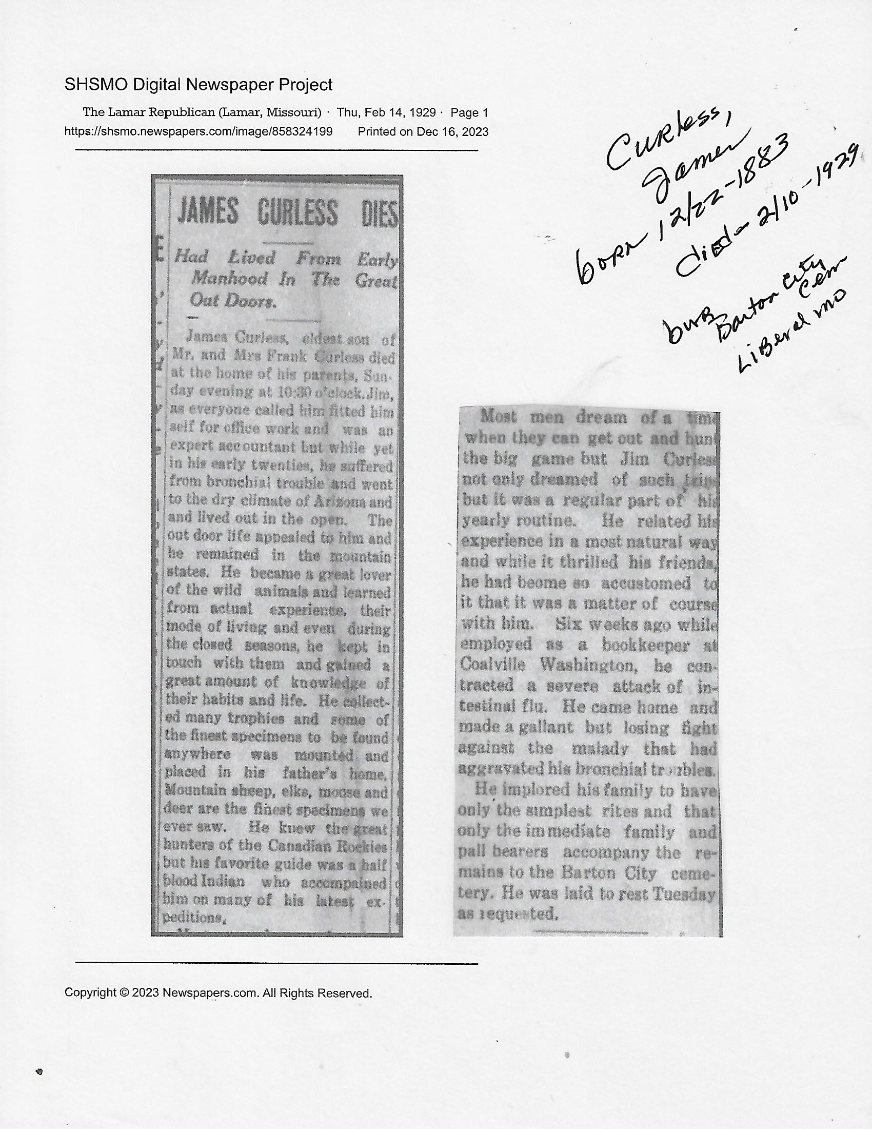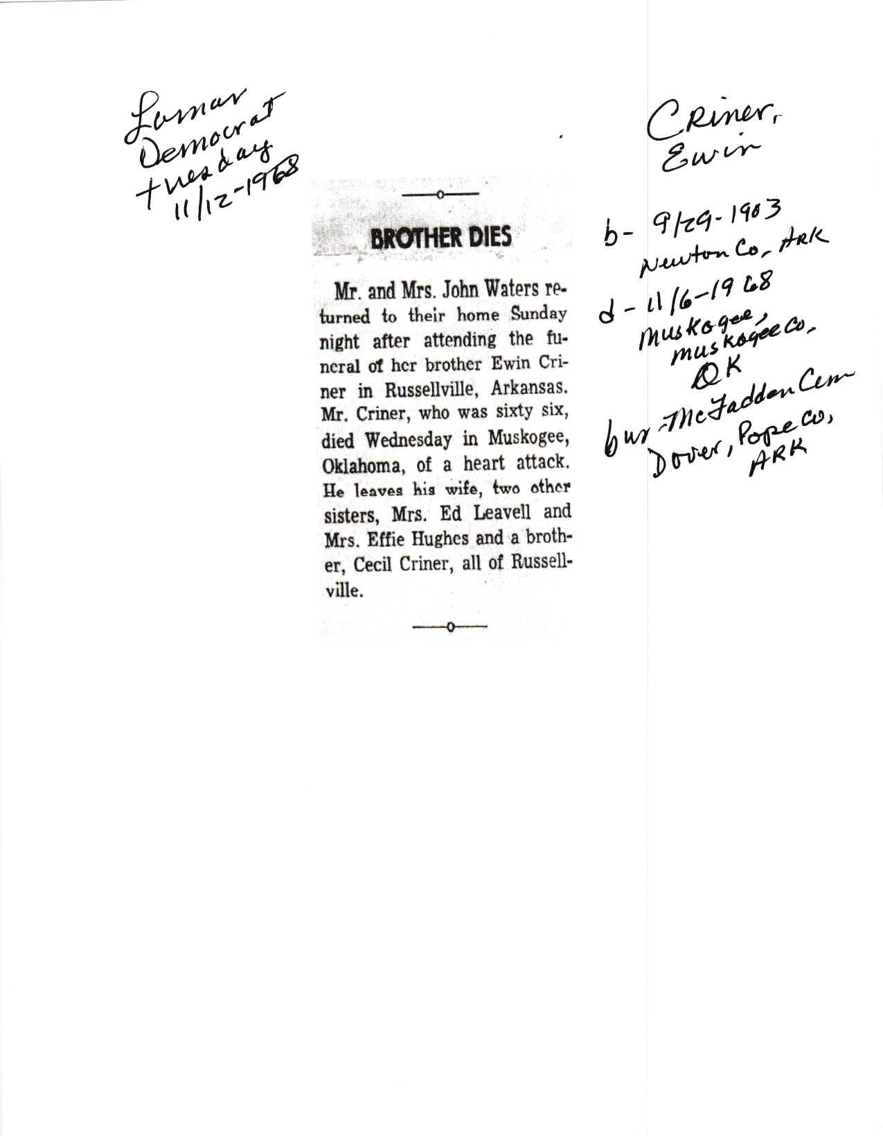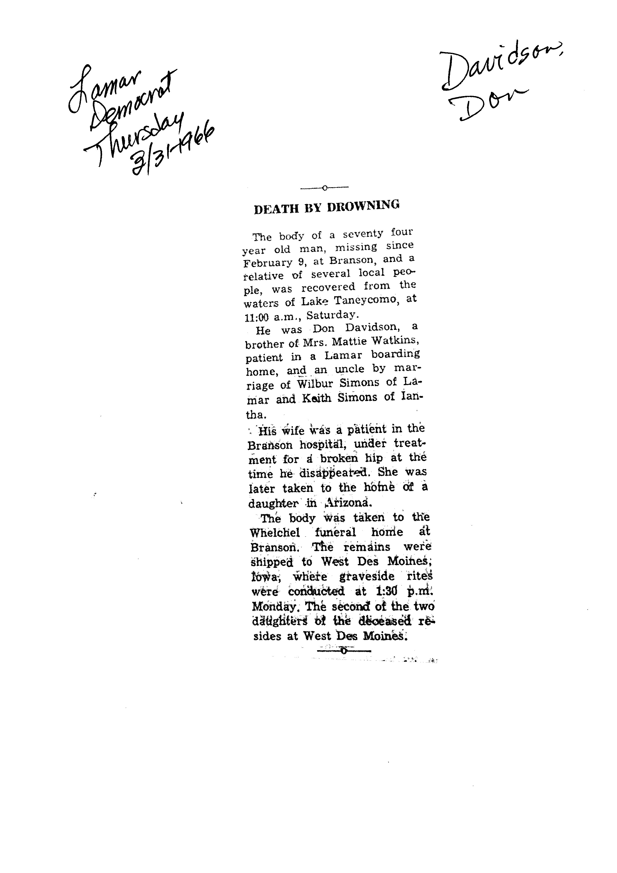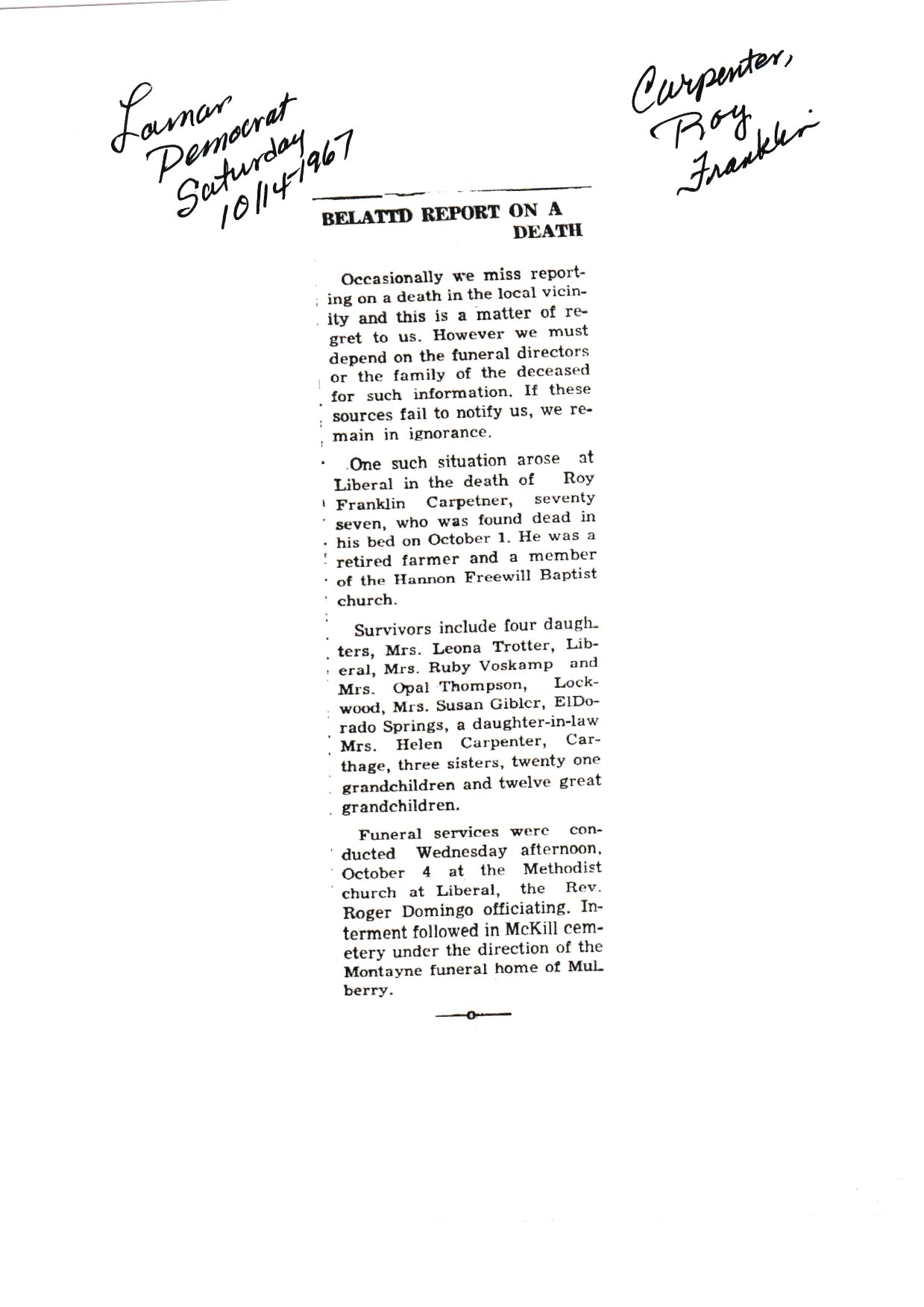 Index C-D for Other Obituaries