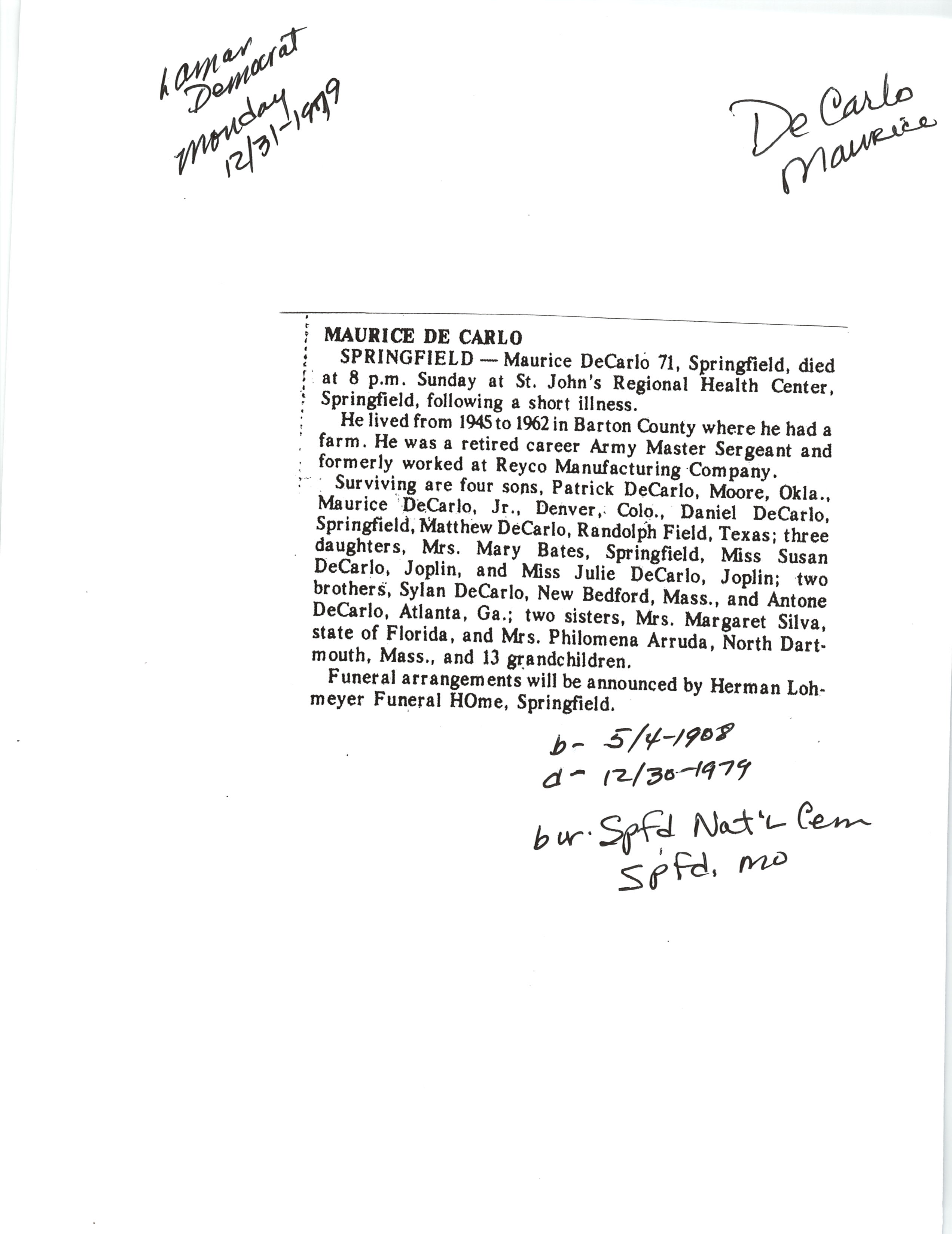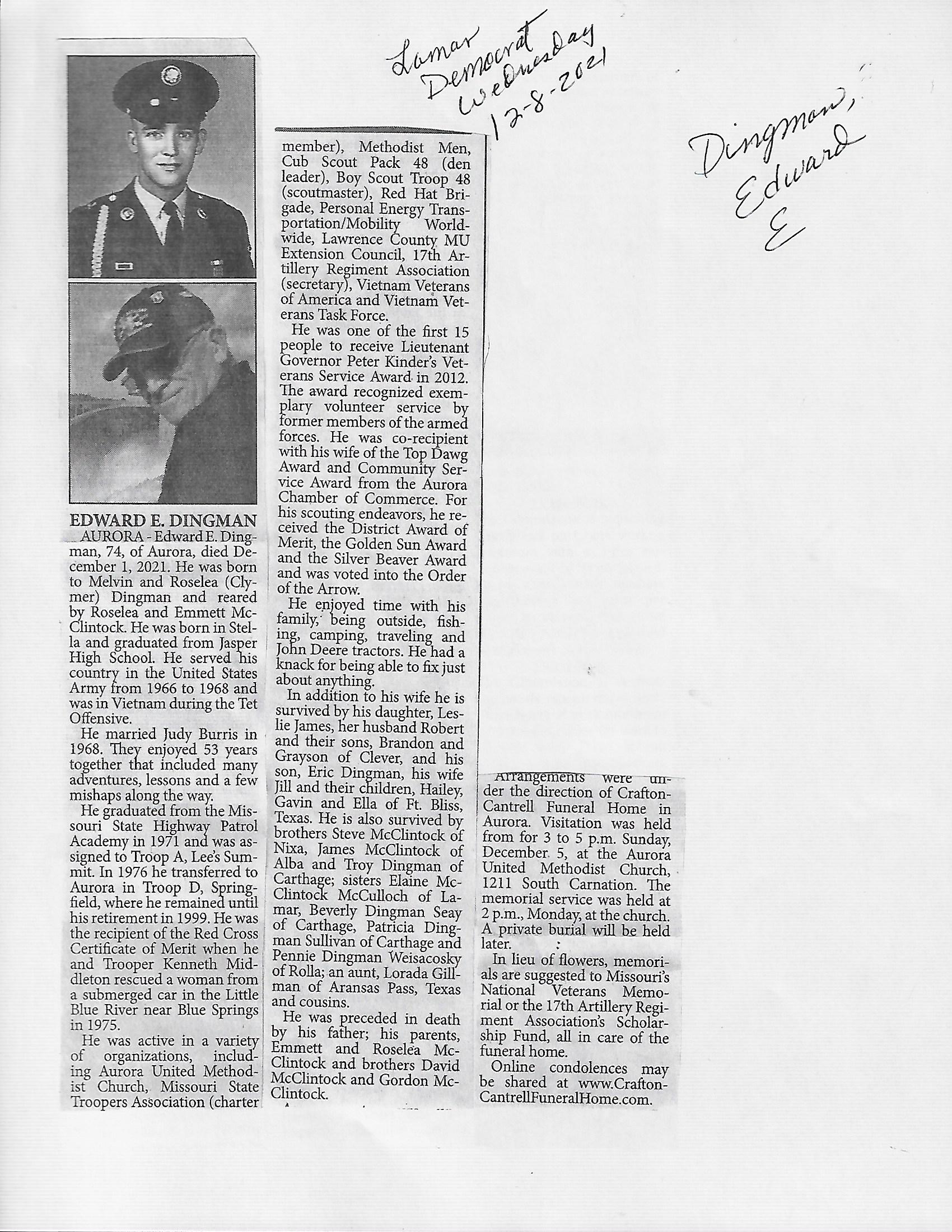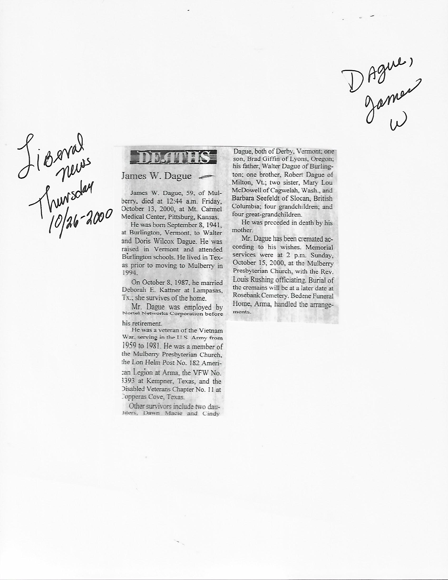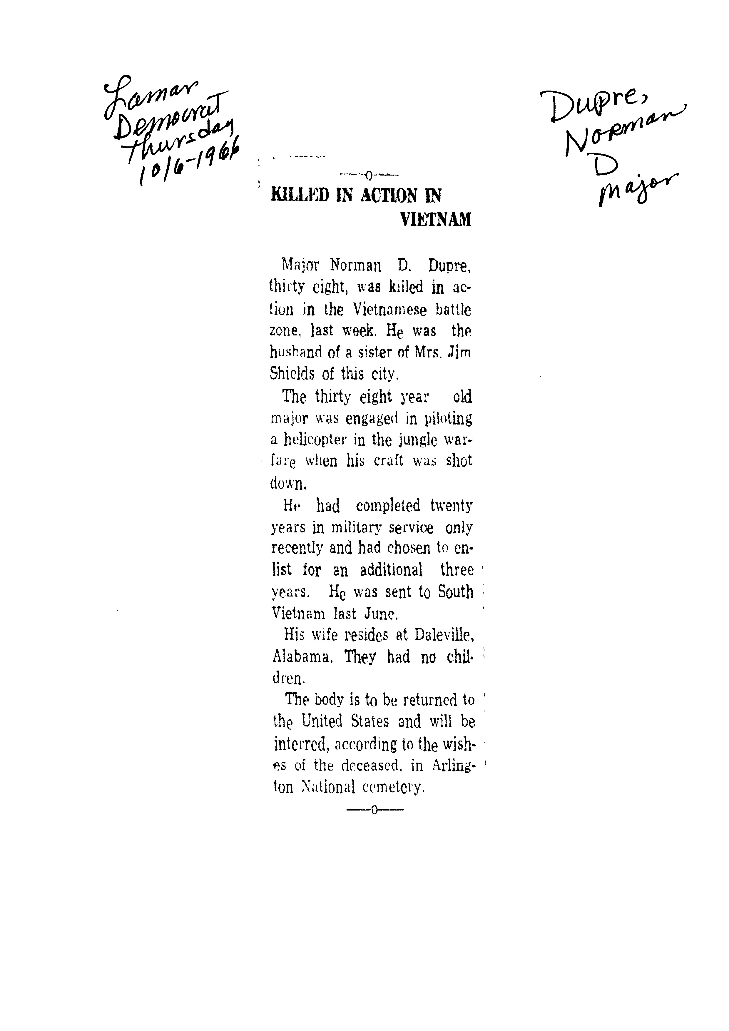 Dupre, Norman D Major
