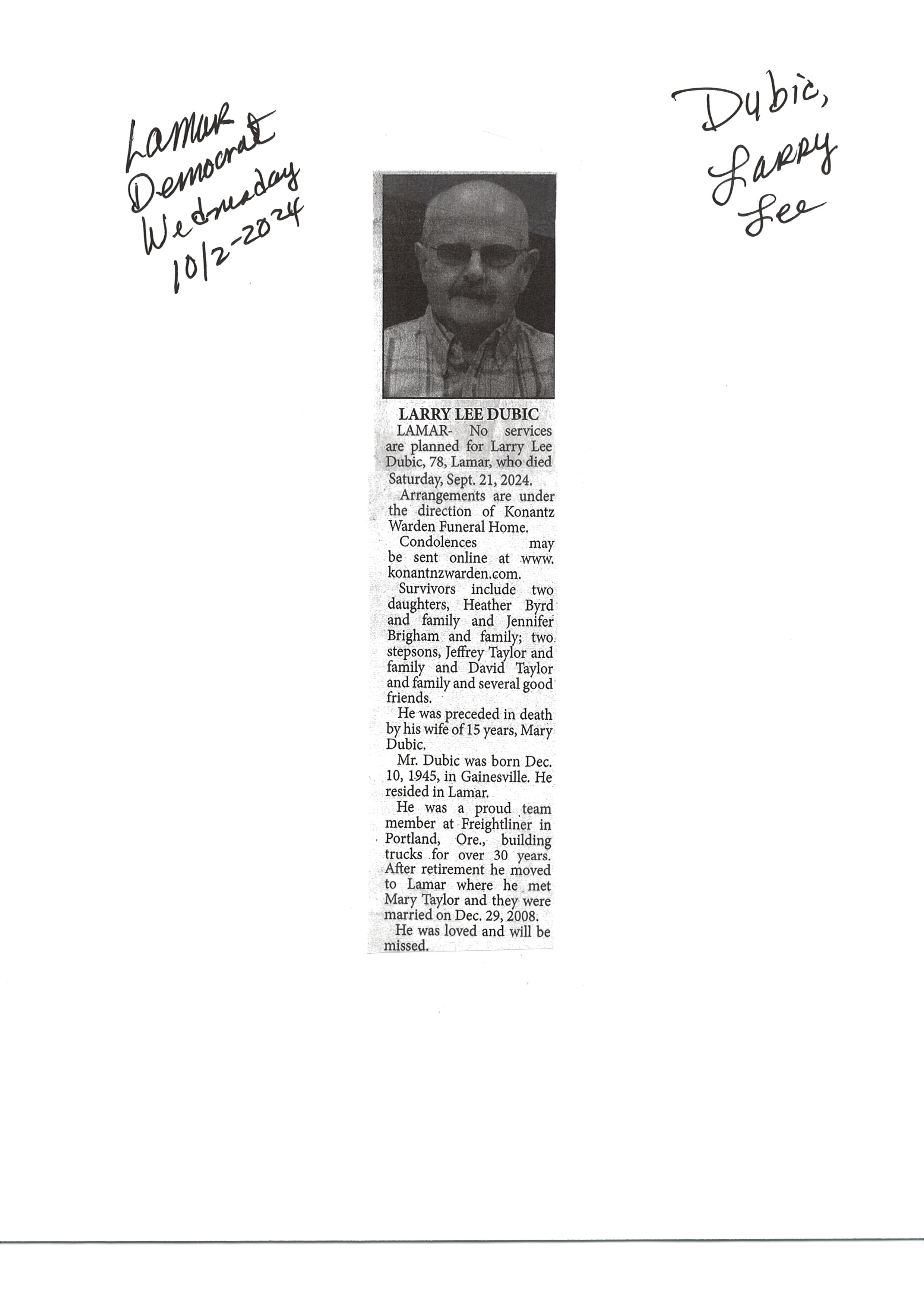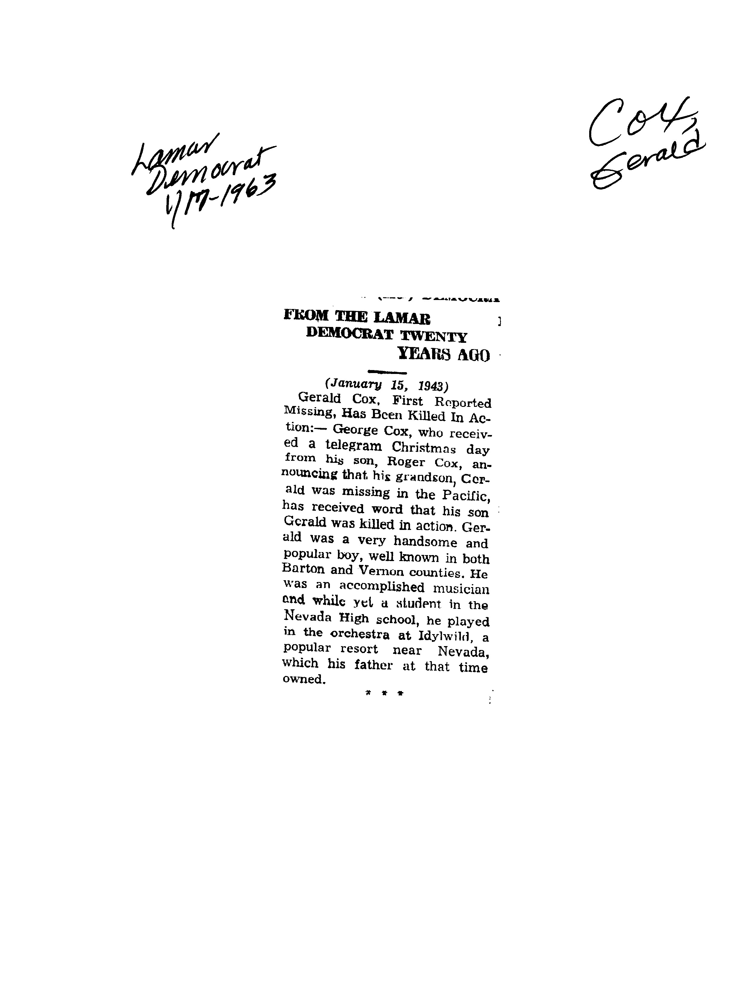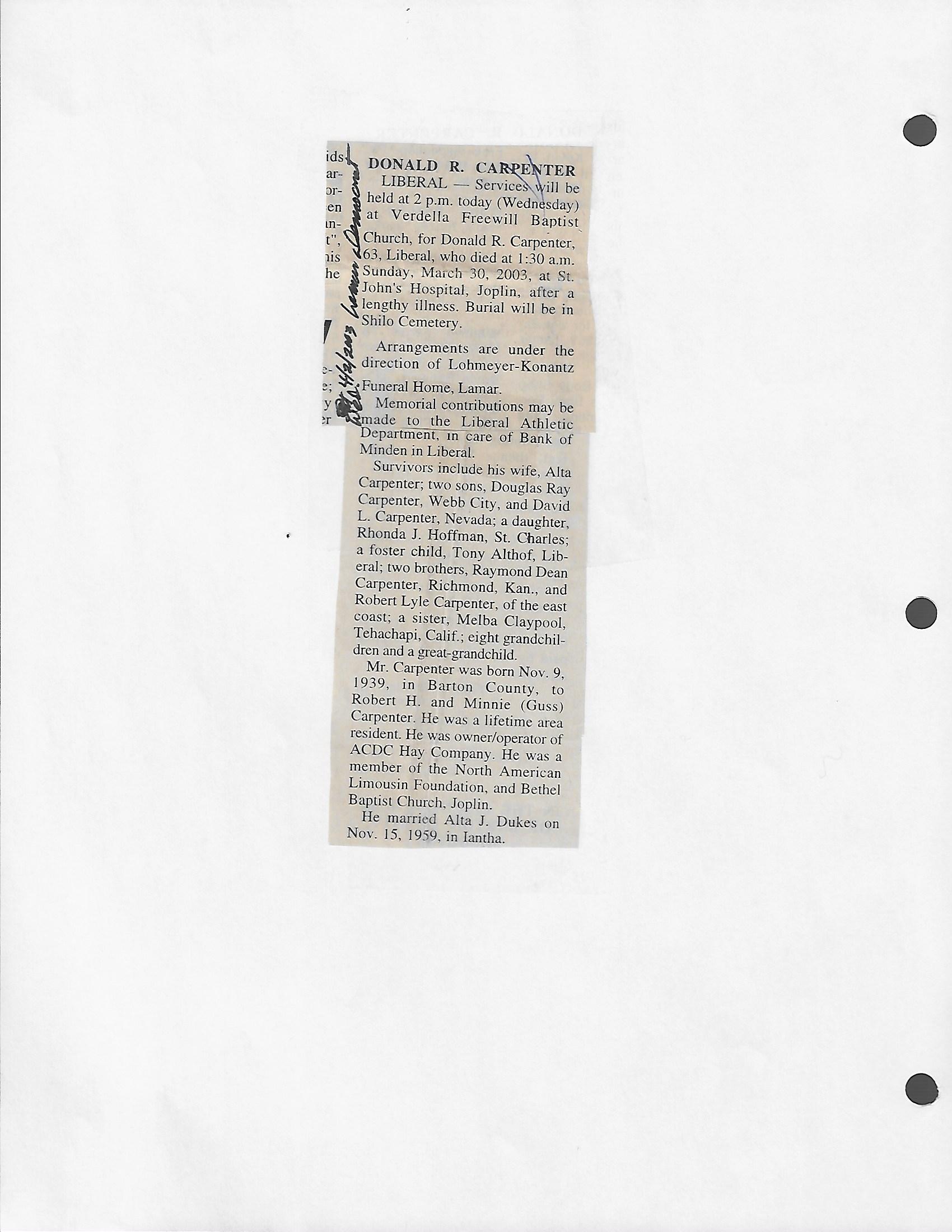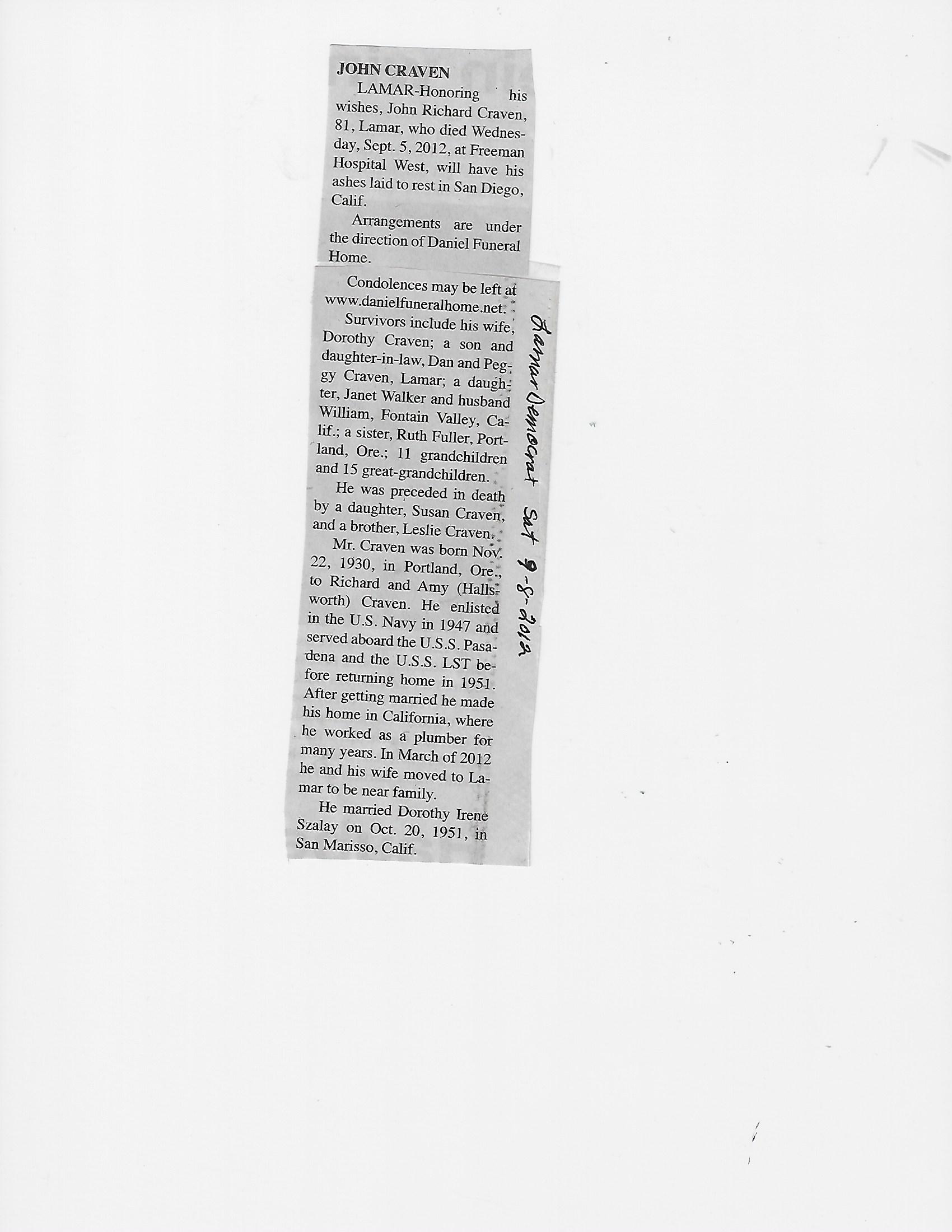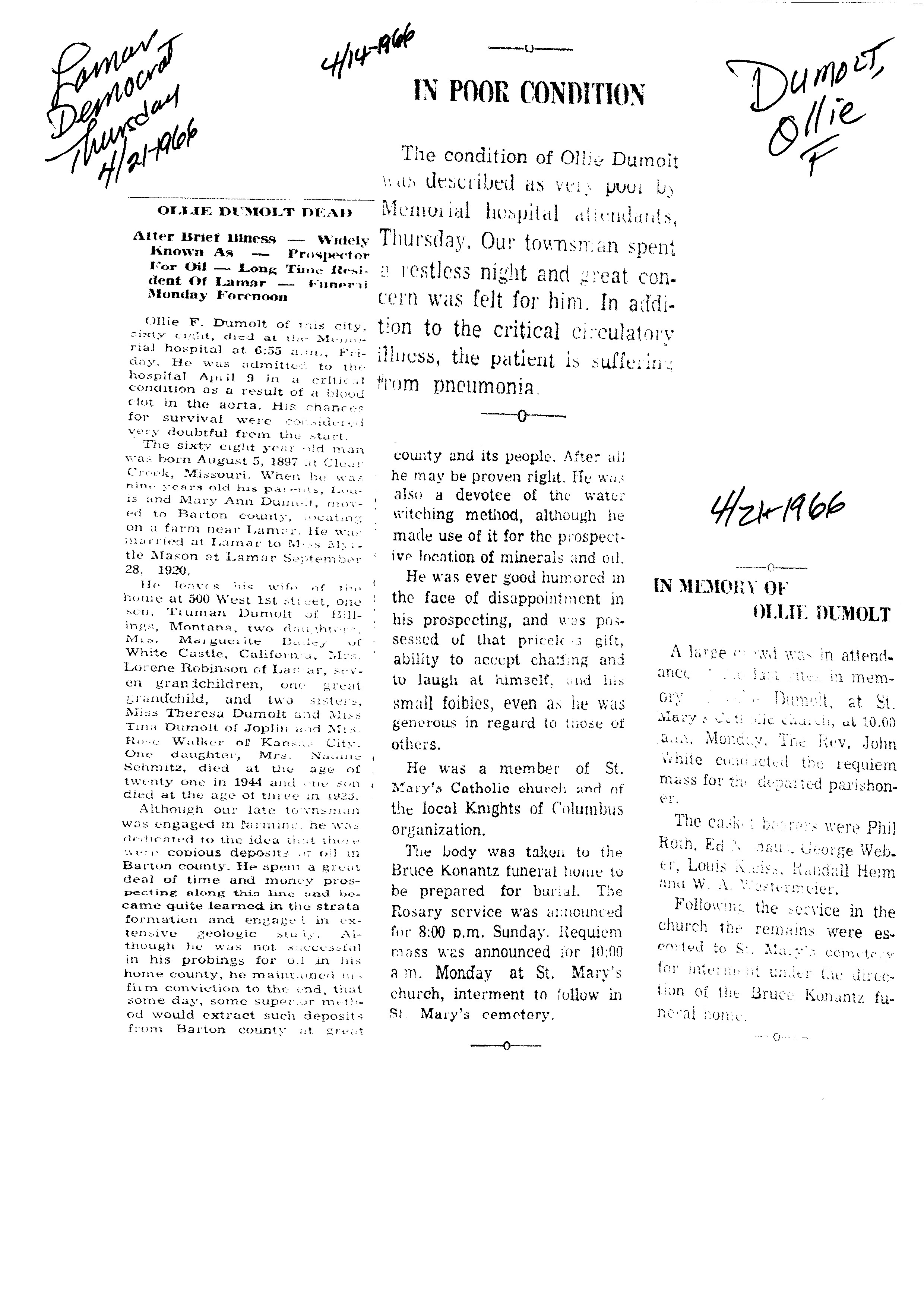 Dupre, Norman D Major