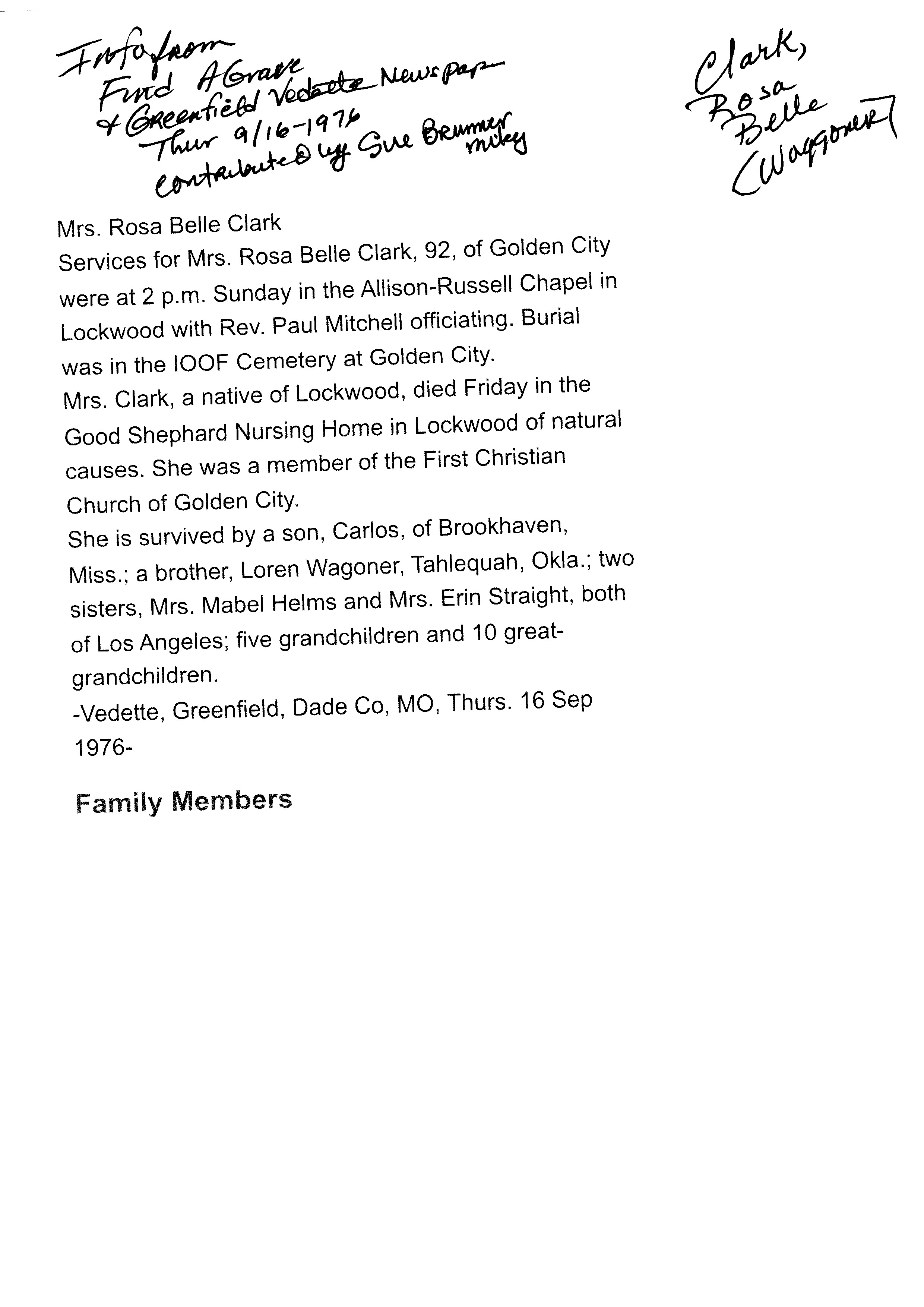 Dyer, Rose Selma