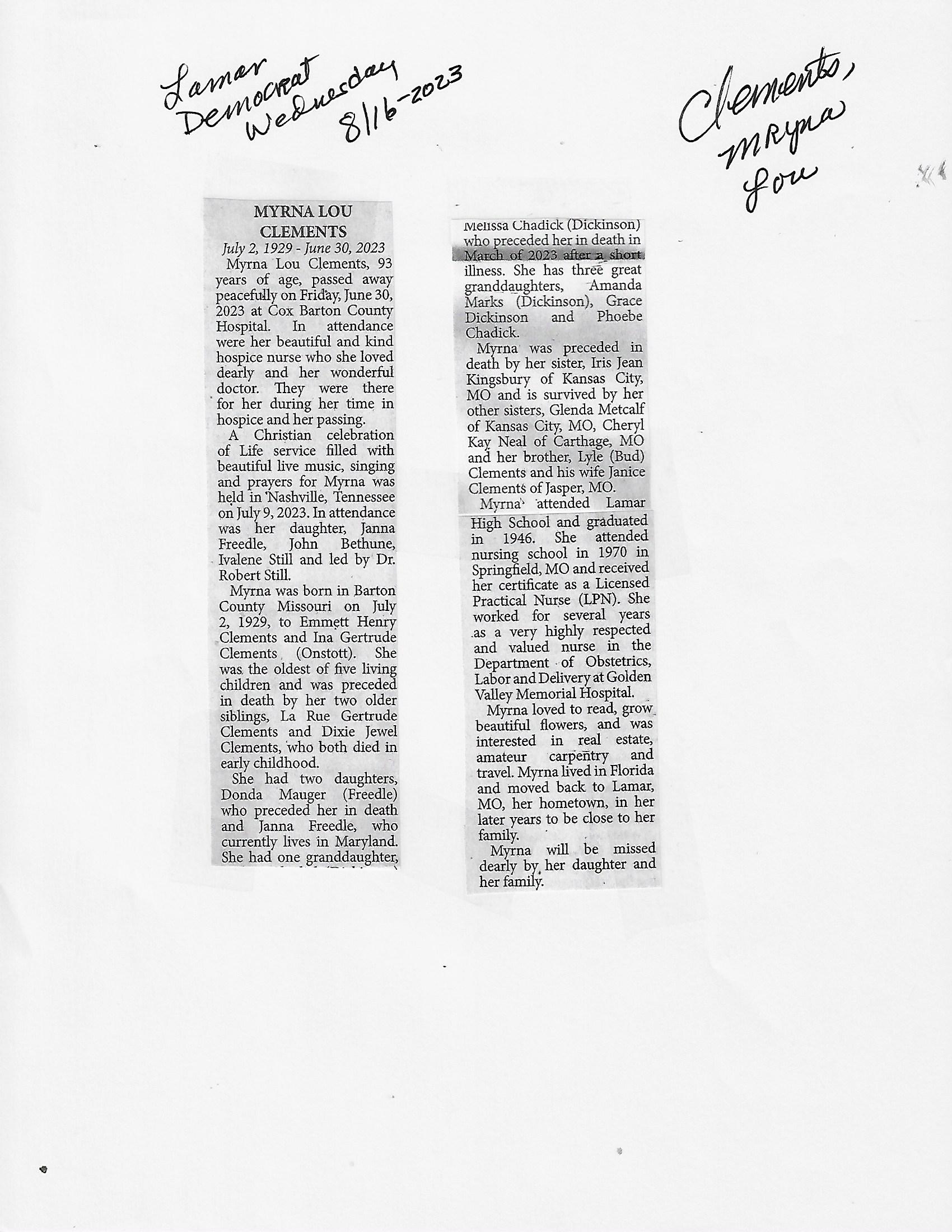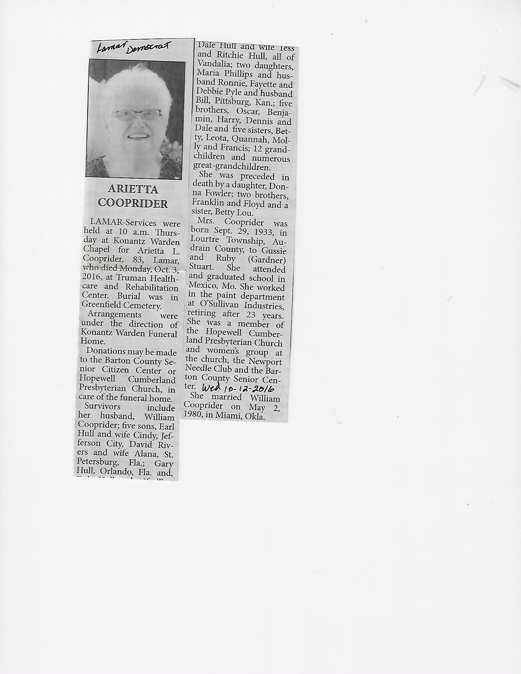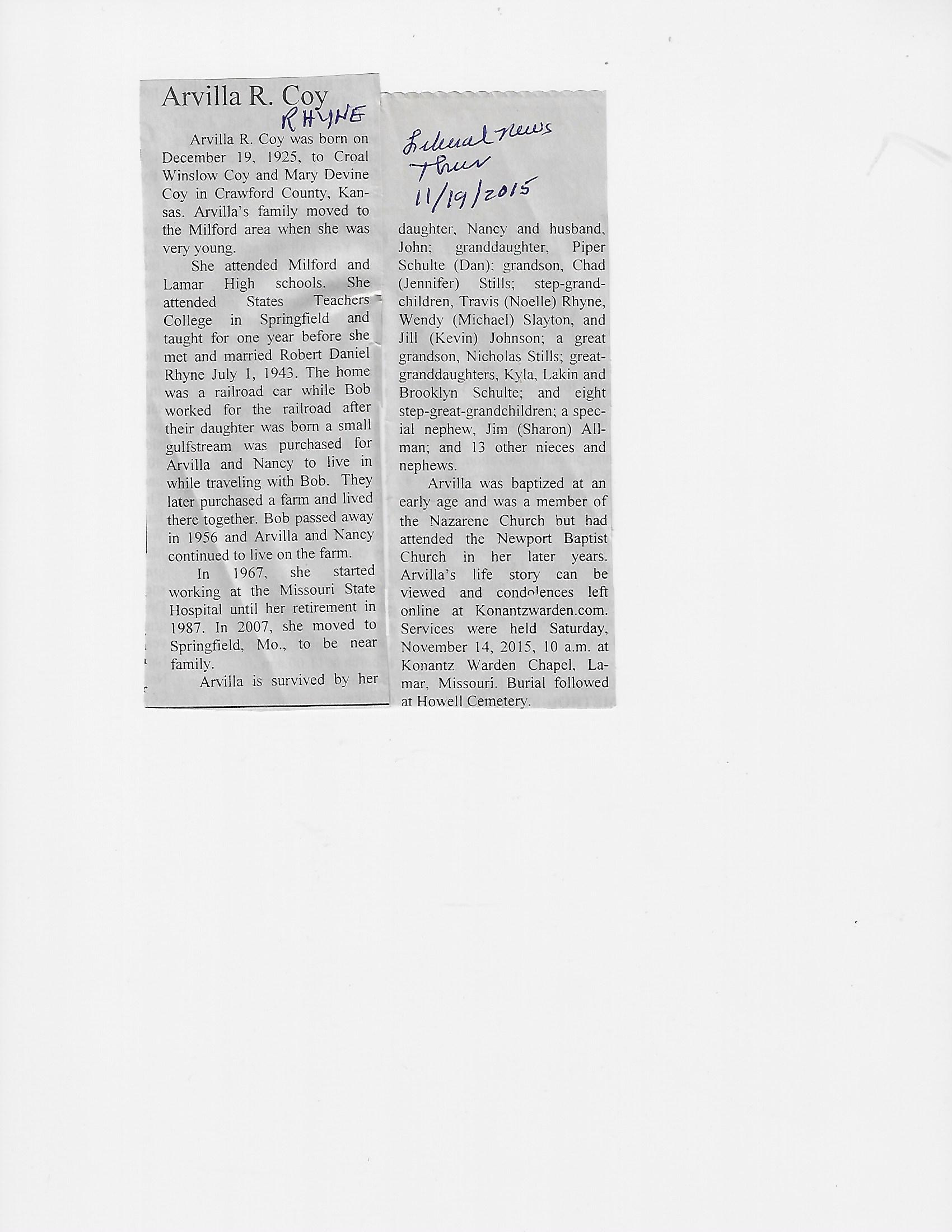 Calhoun, Arlene{ Hanna}