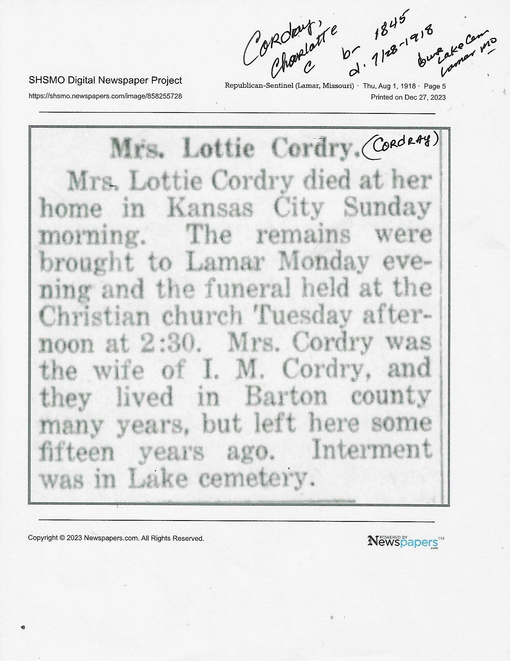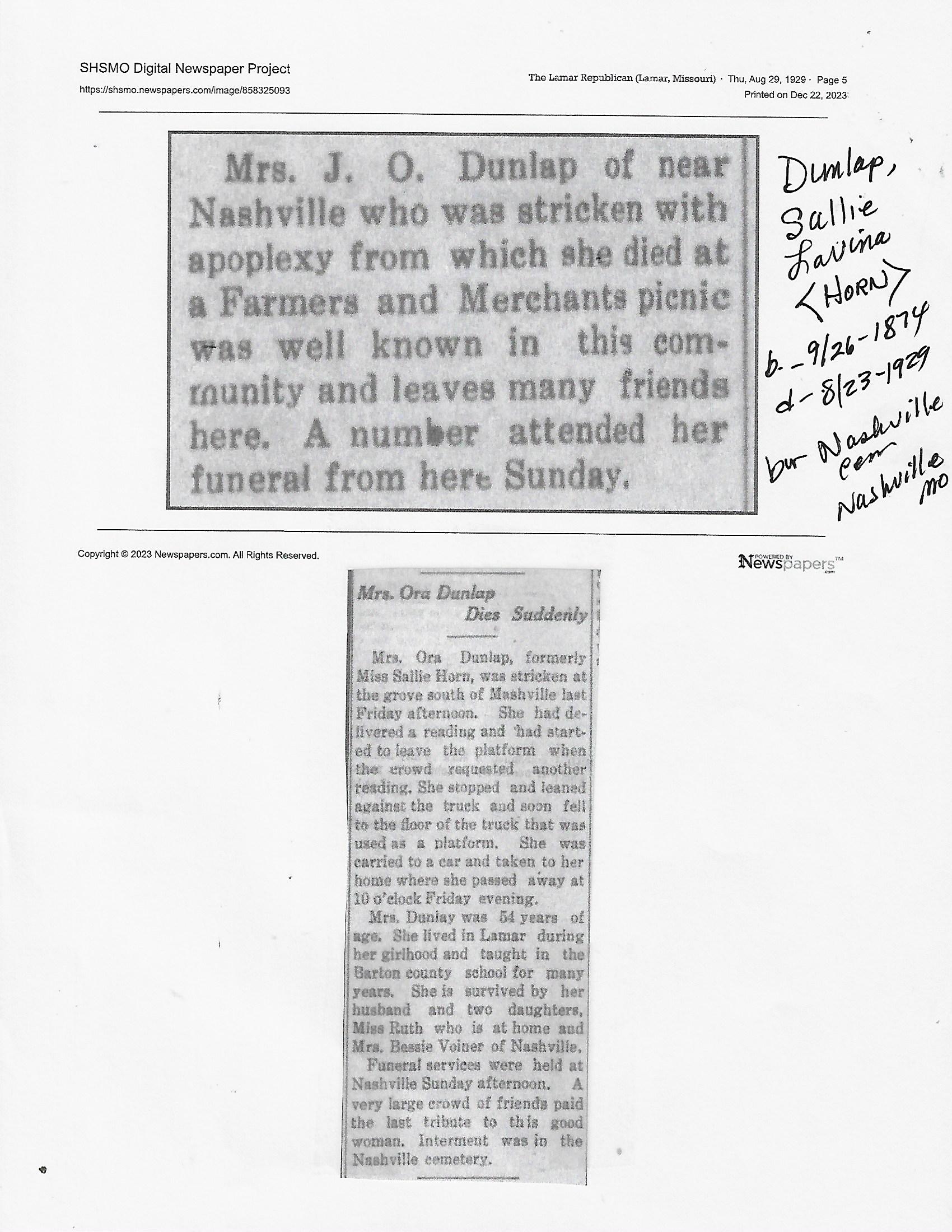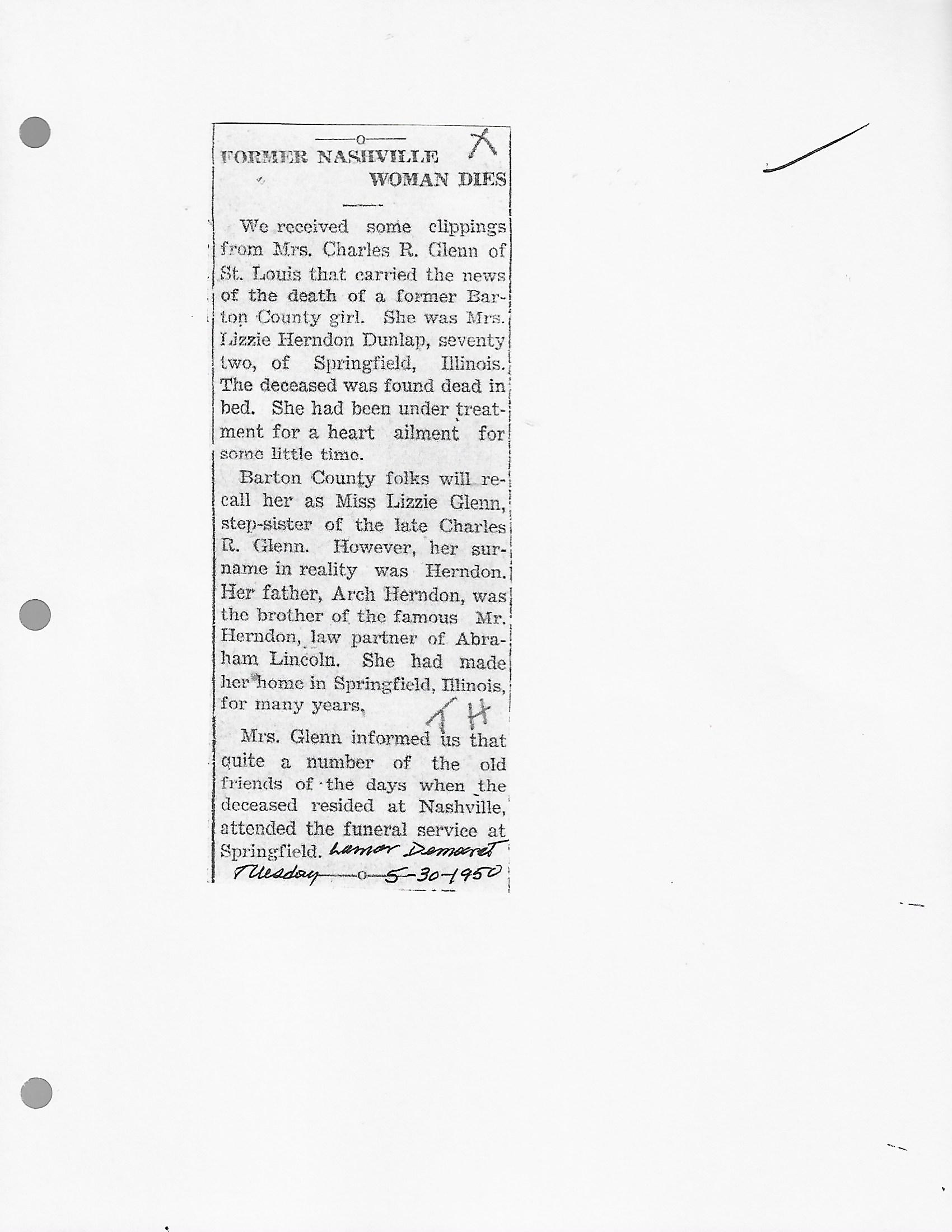 Dunlap, Lizzie {Herndon}