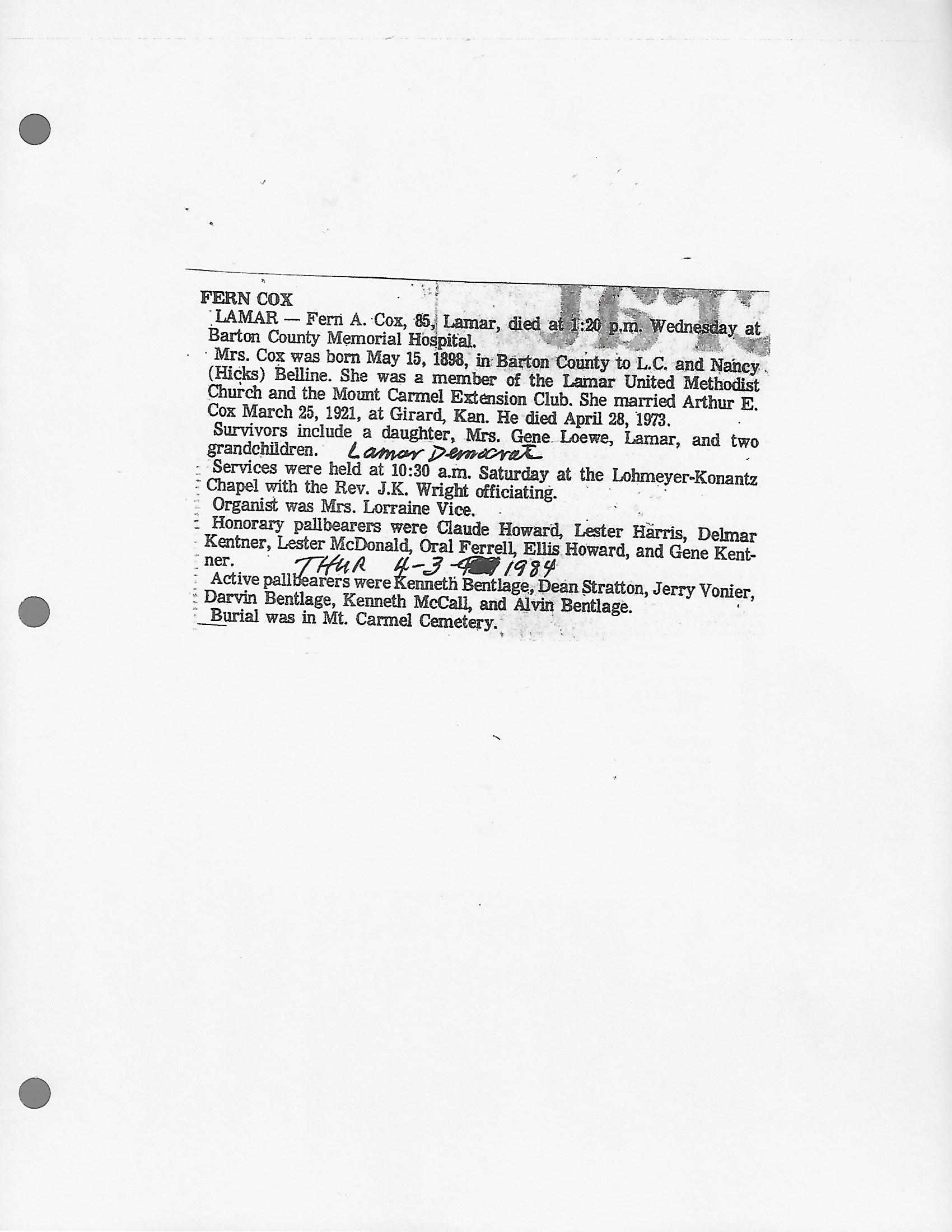 Gladys Verl {Neal}