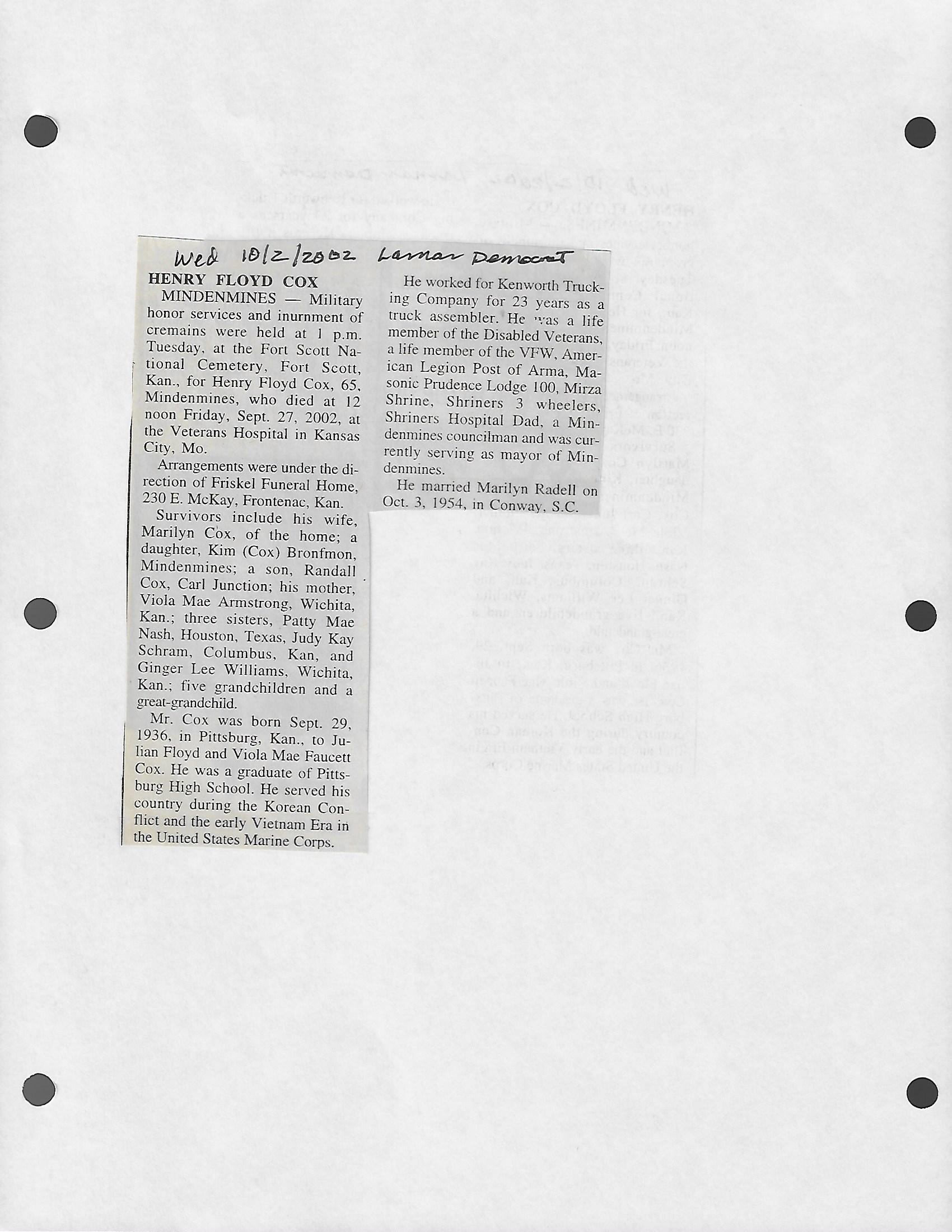 Caldwell, Floyd Arthur