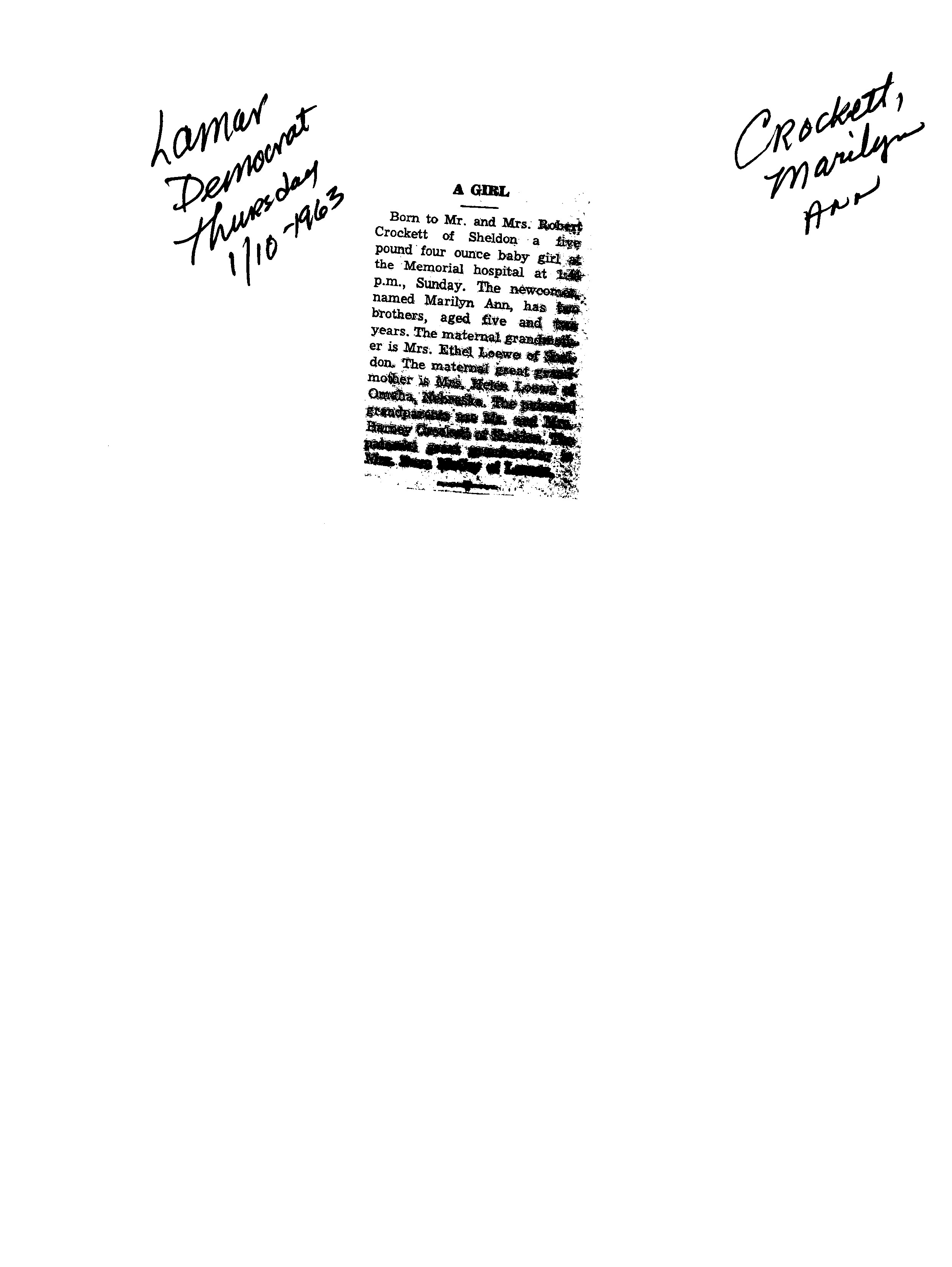 Dorothy Darlene {Crockett}