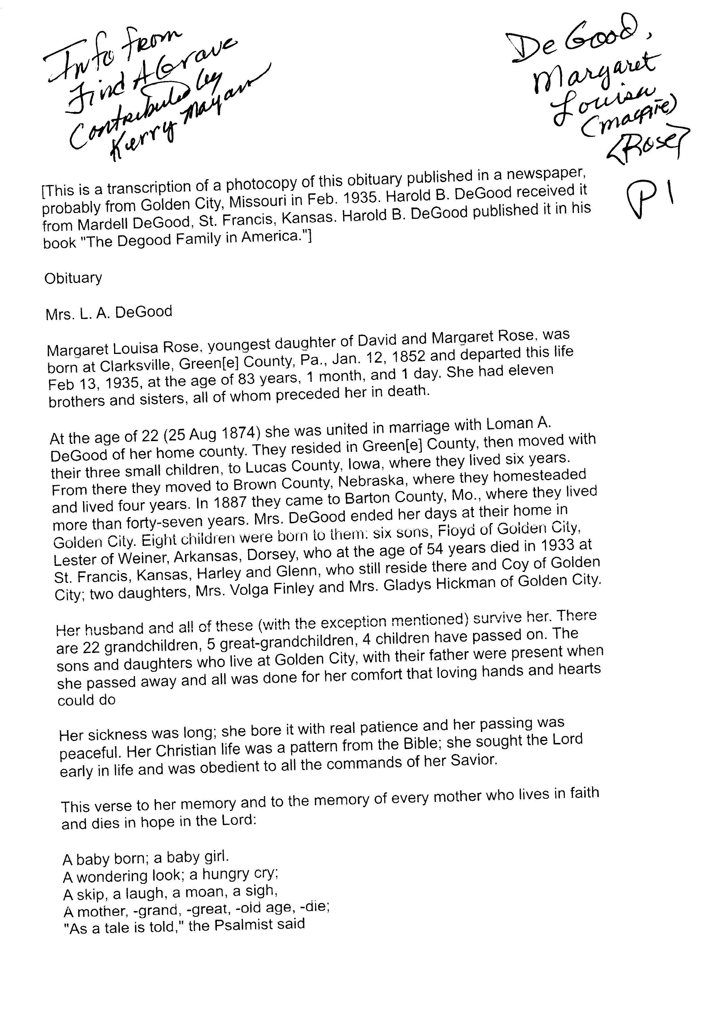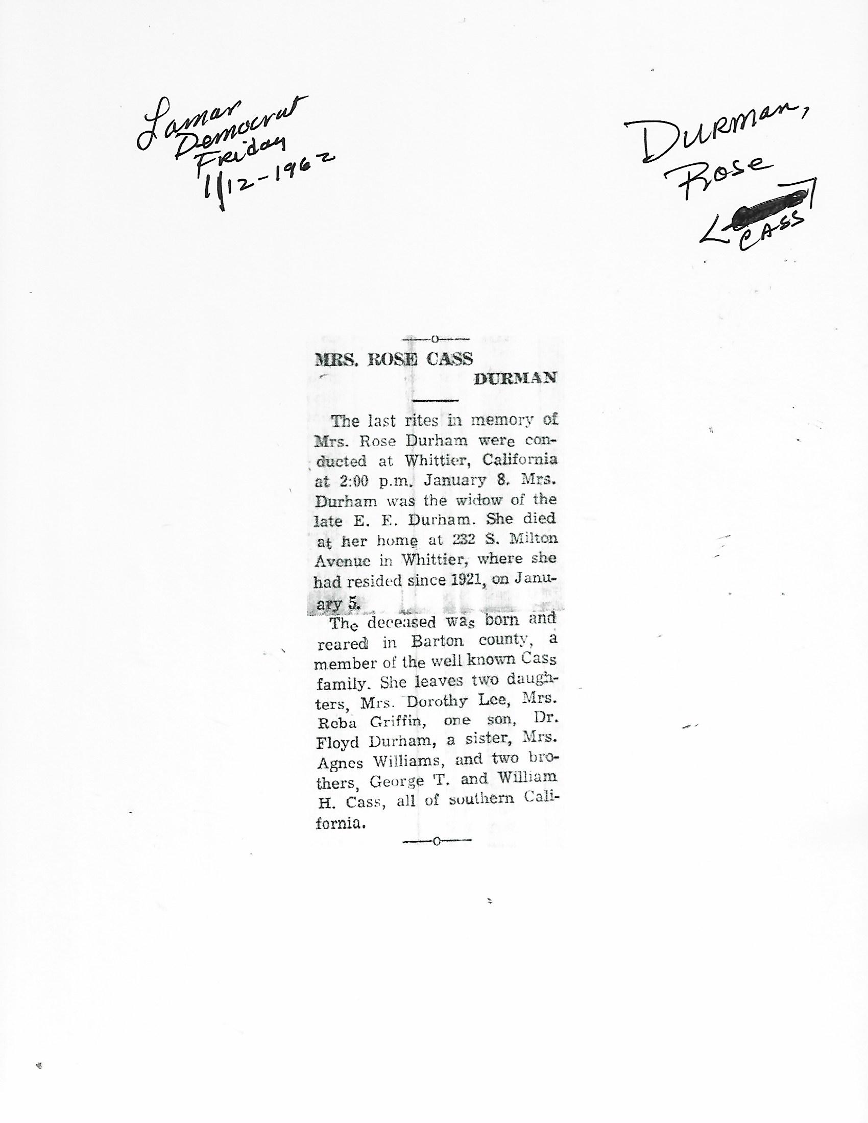 Durman, Rose {Cass}