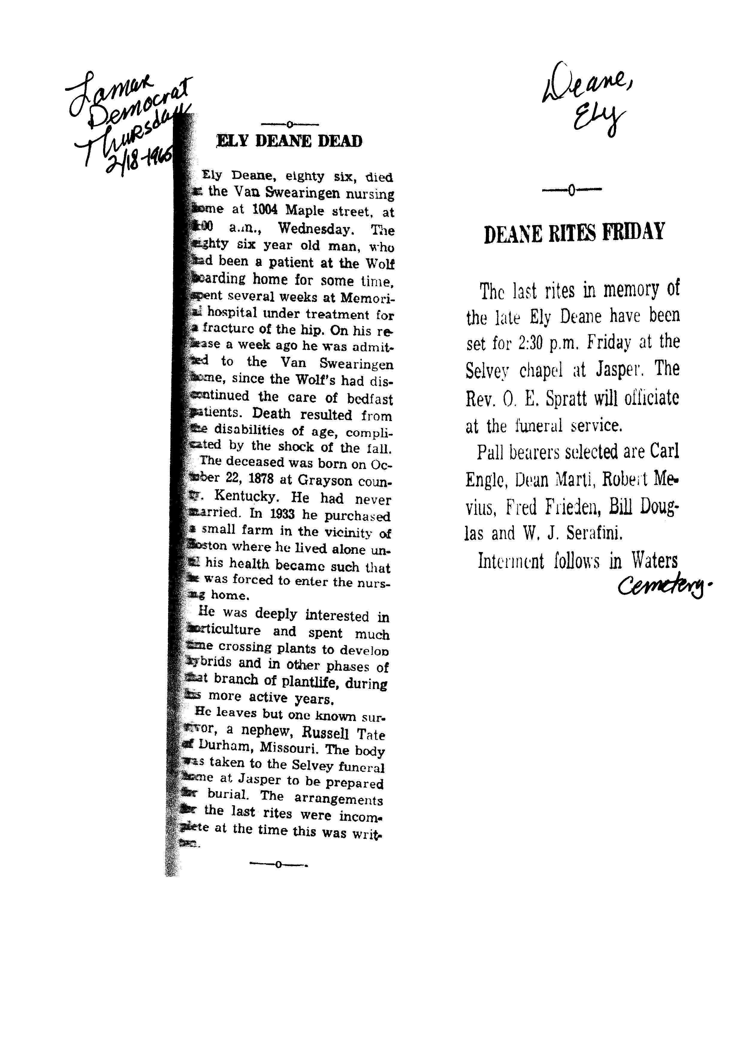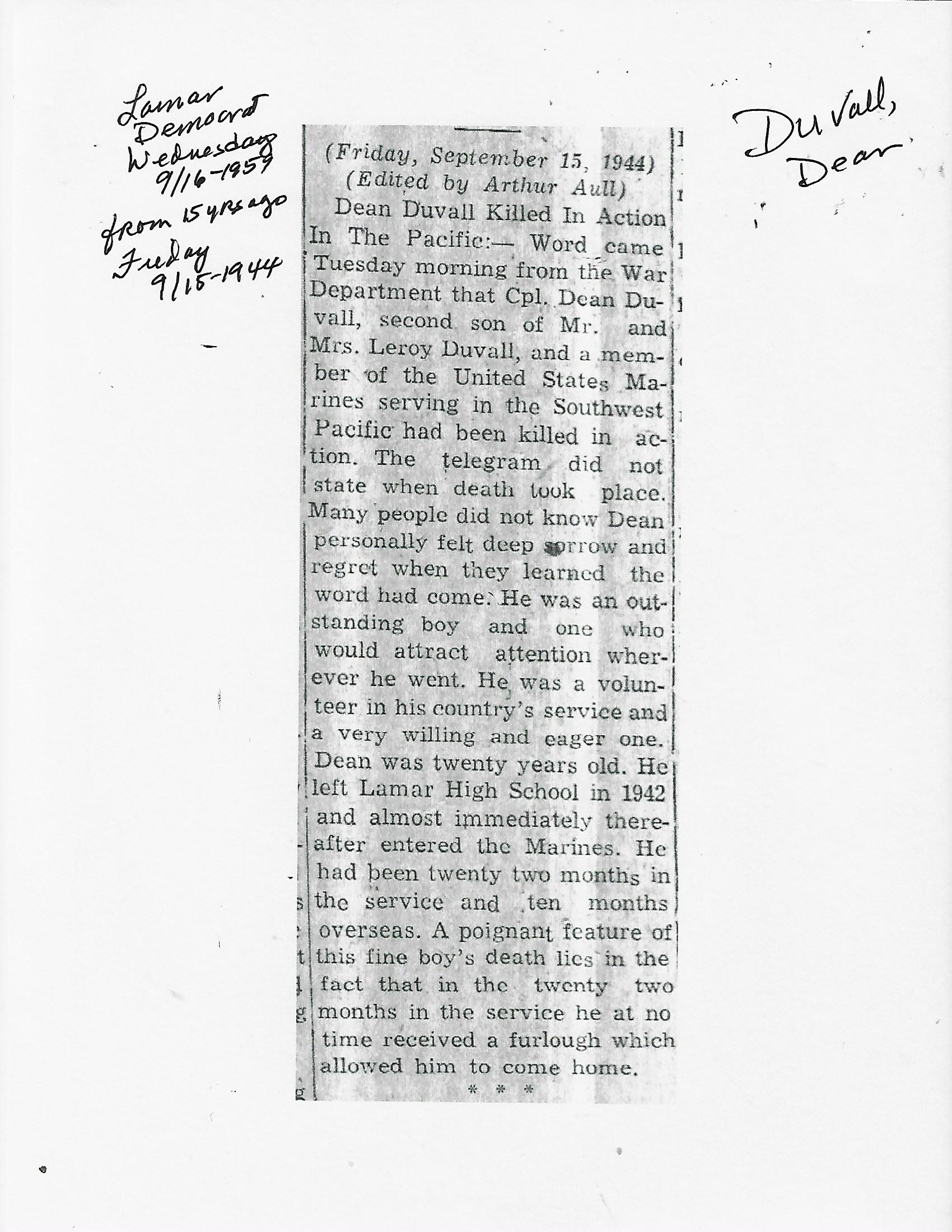 Duvall, Deane