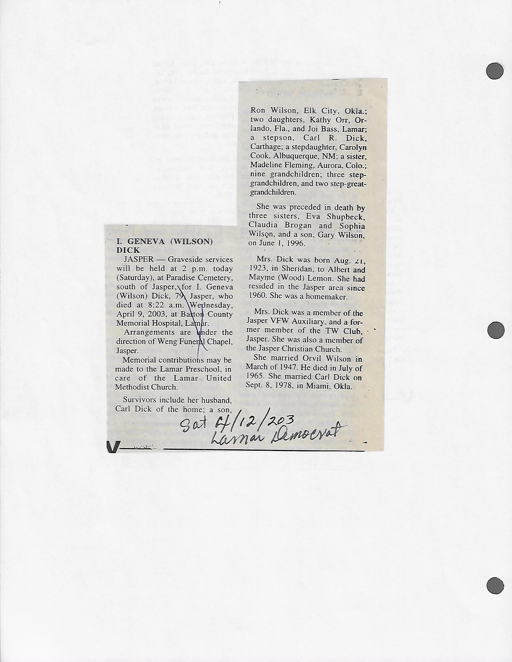 Dunford, Cora Marlene
