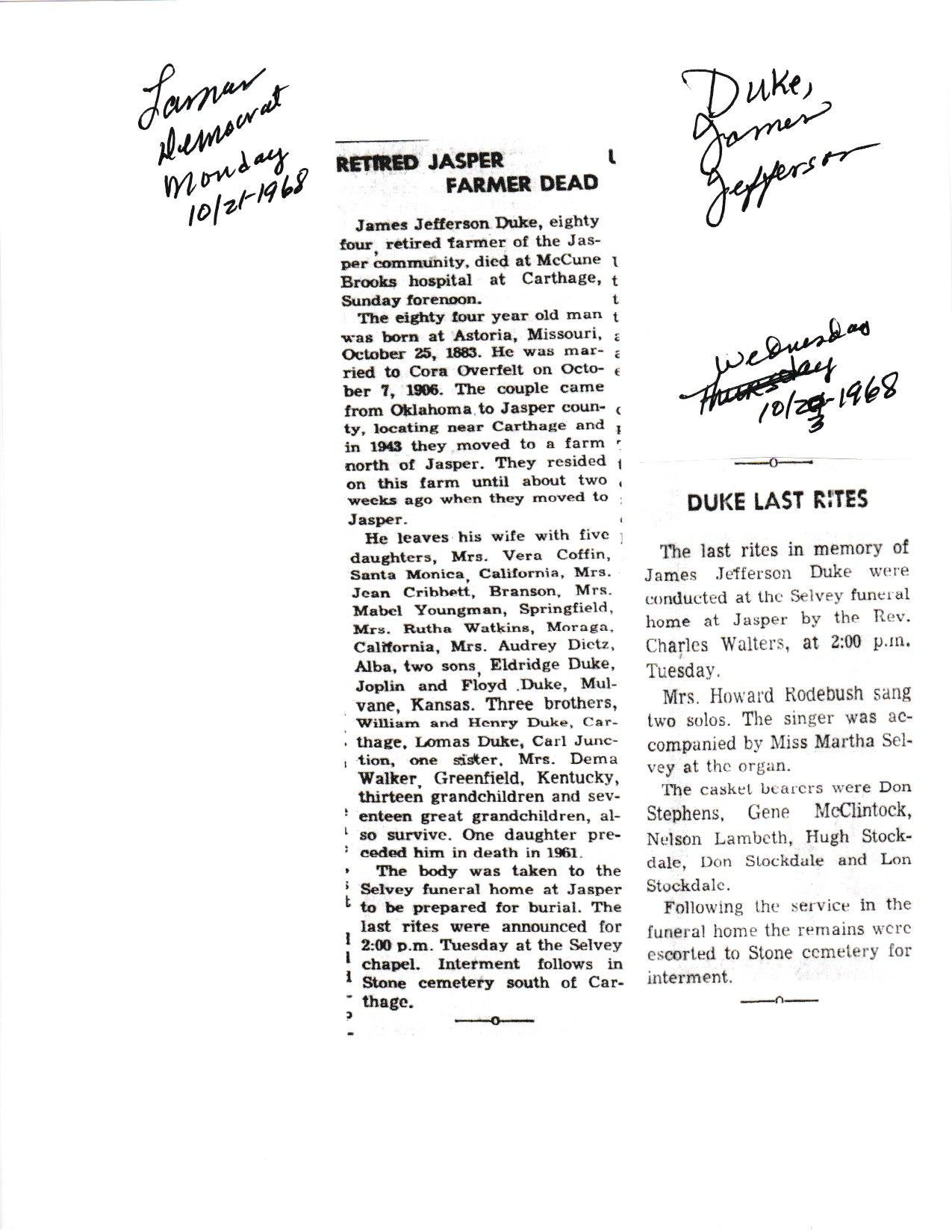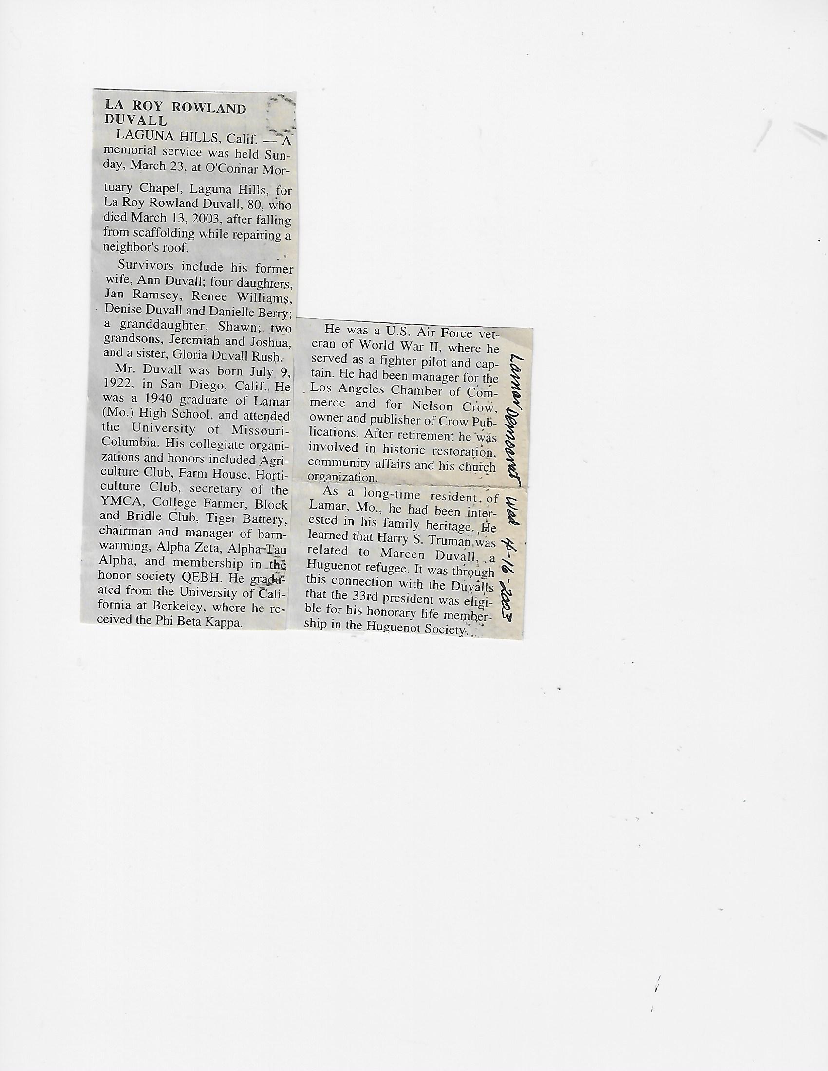 Duvall, La Roy Rowland
