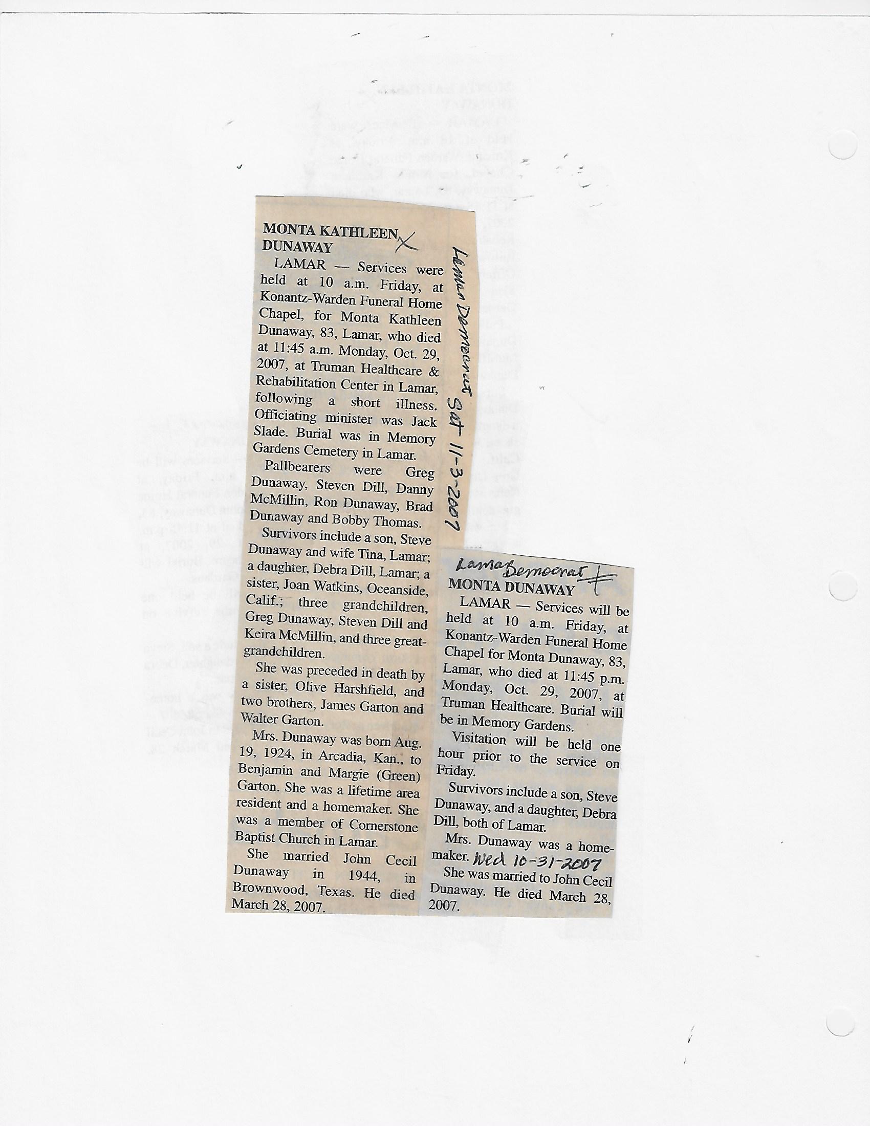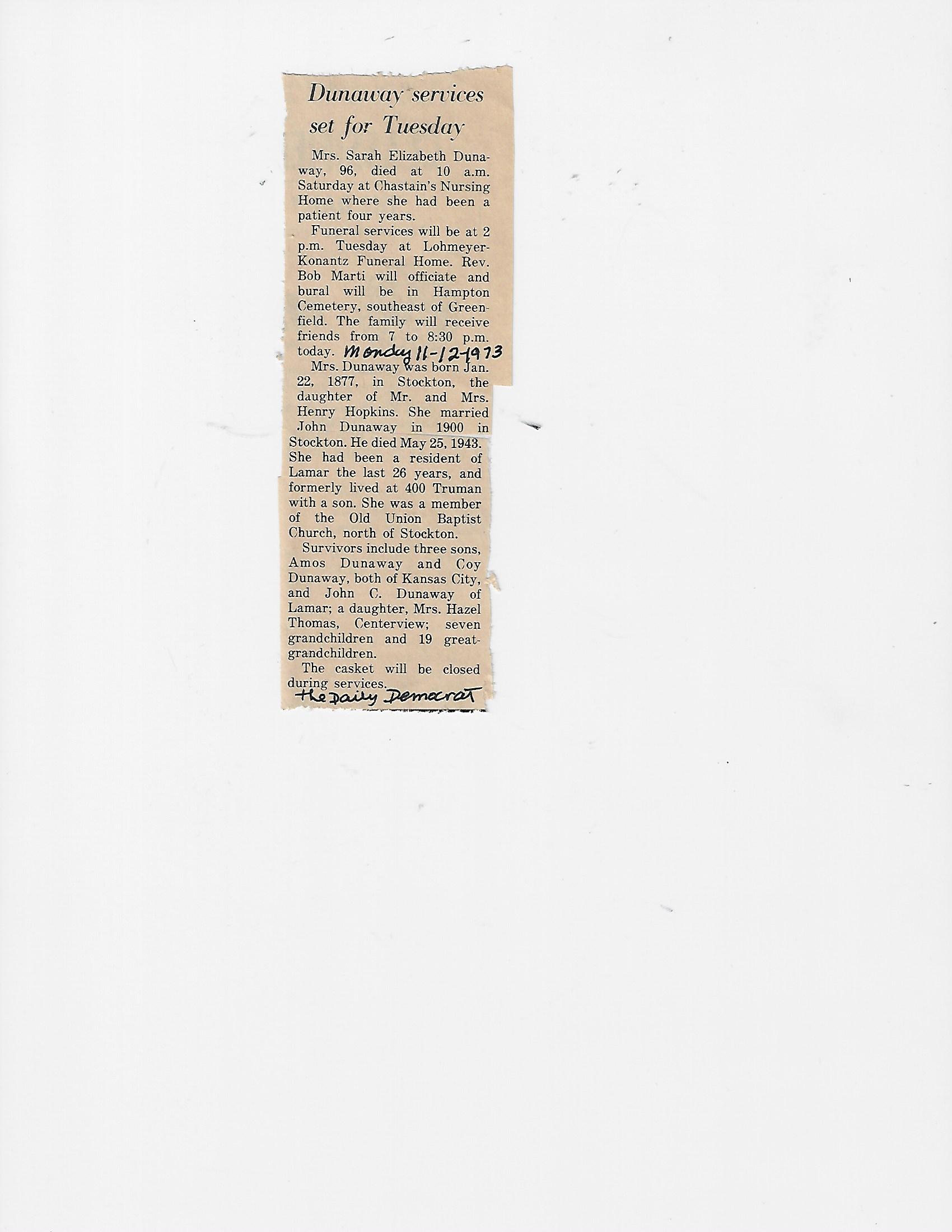 Dunaway, Sarah Elizabeth