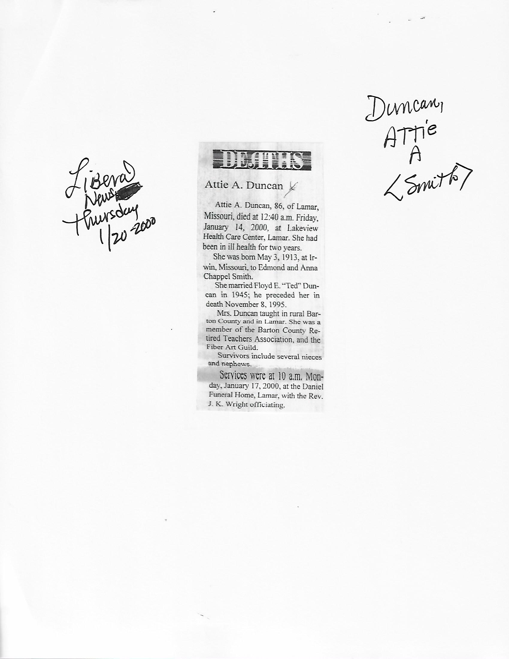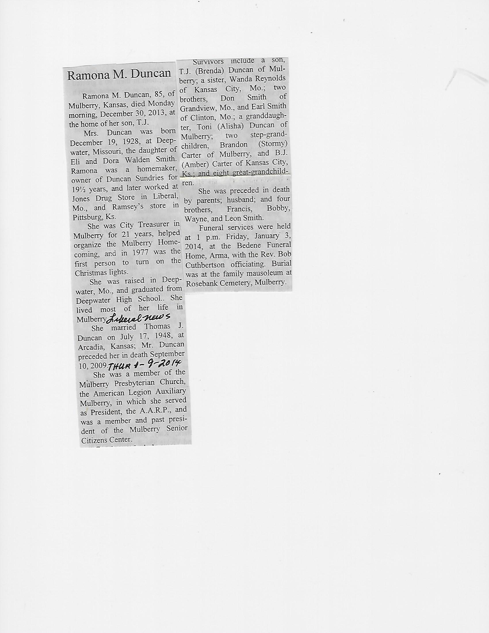 Duncan, Ramona M {Smith}