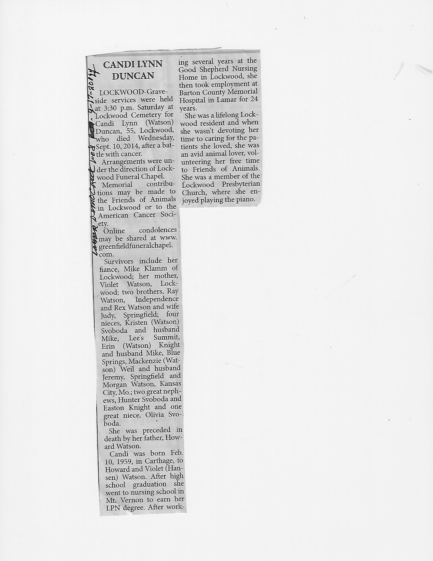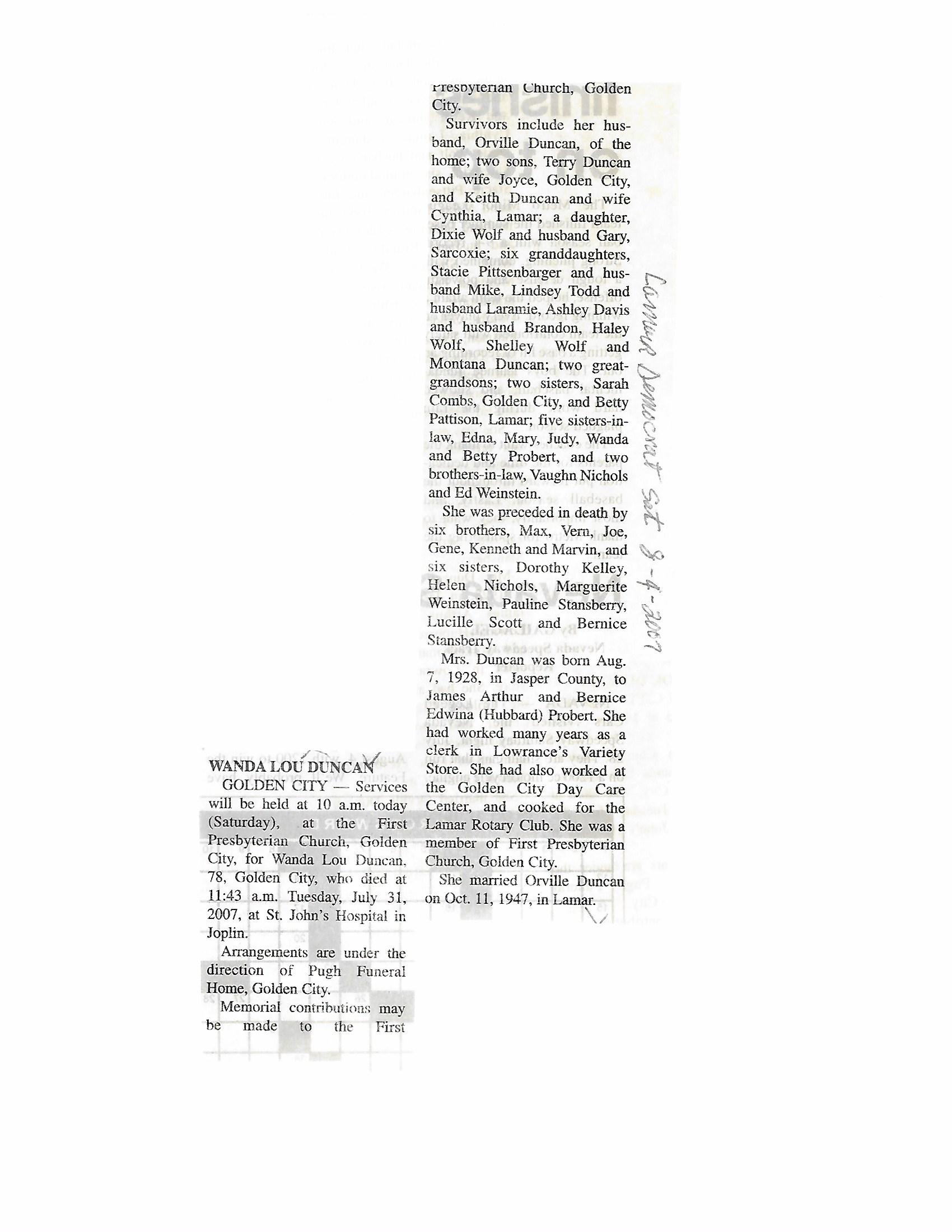 Duncan, Wanda Lou