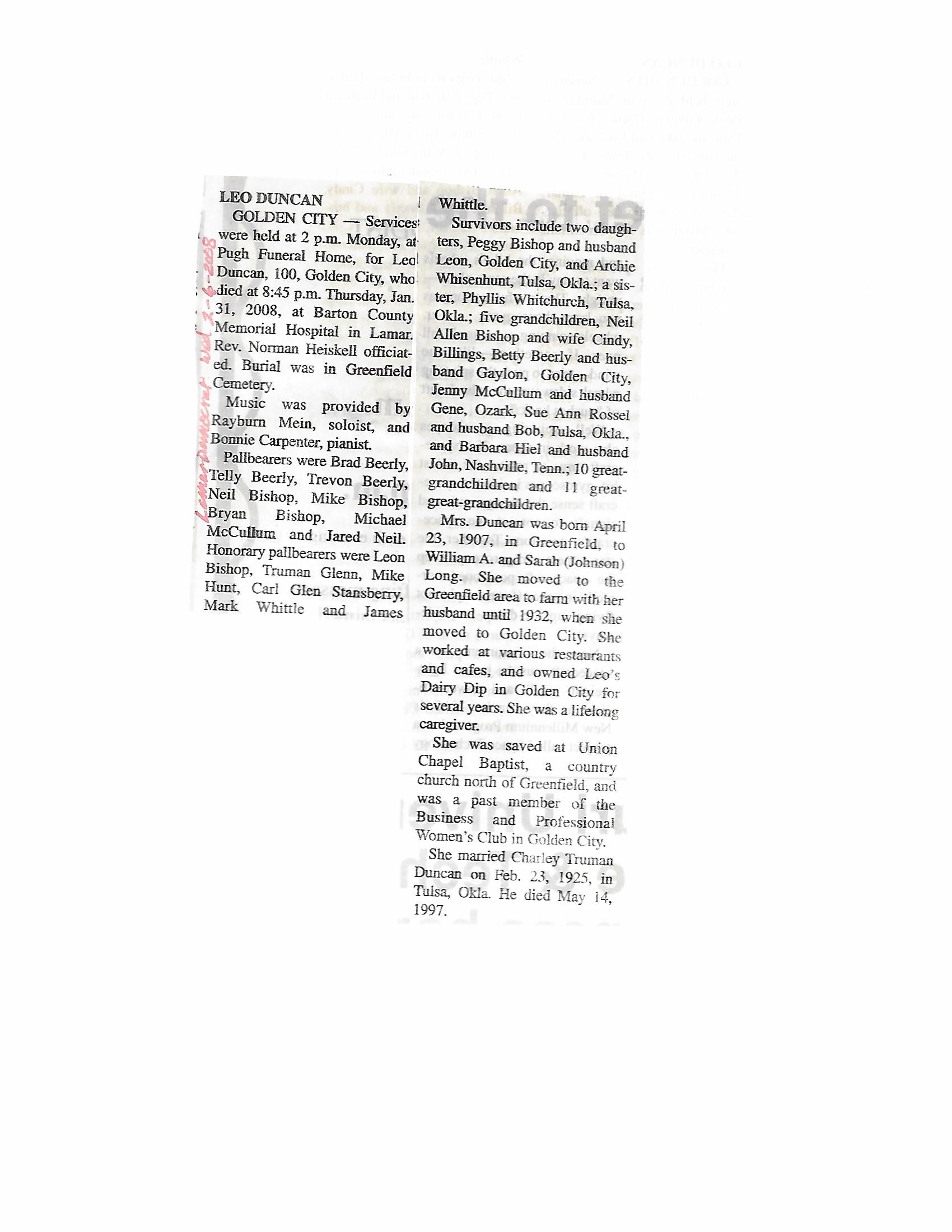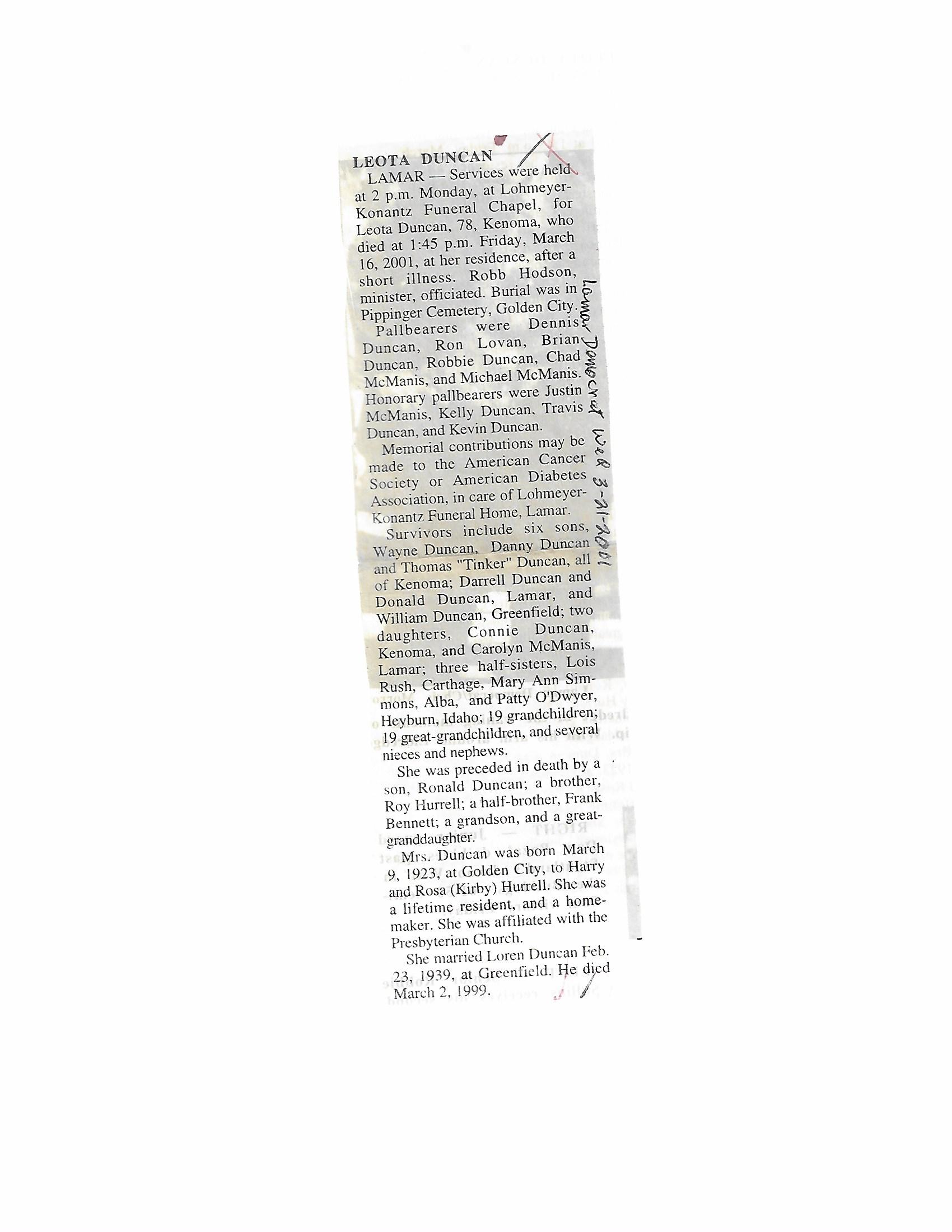 Duncan, Leota {Hurrell}
