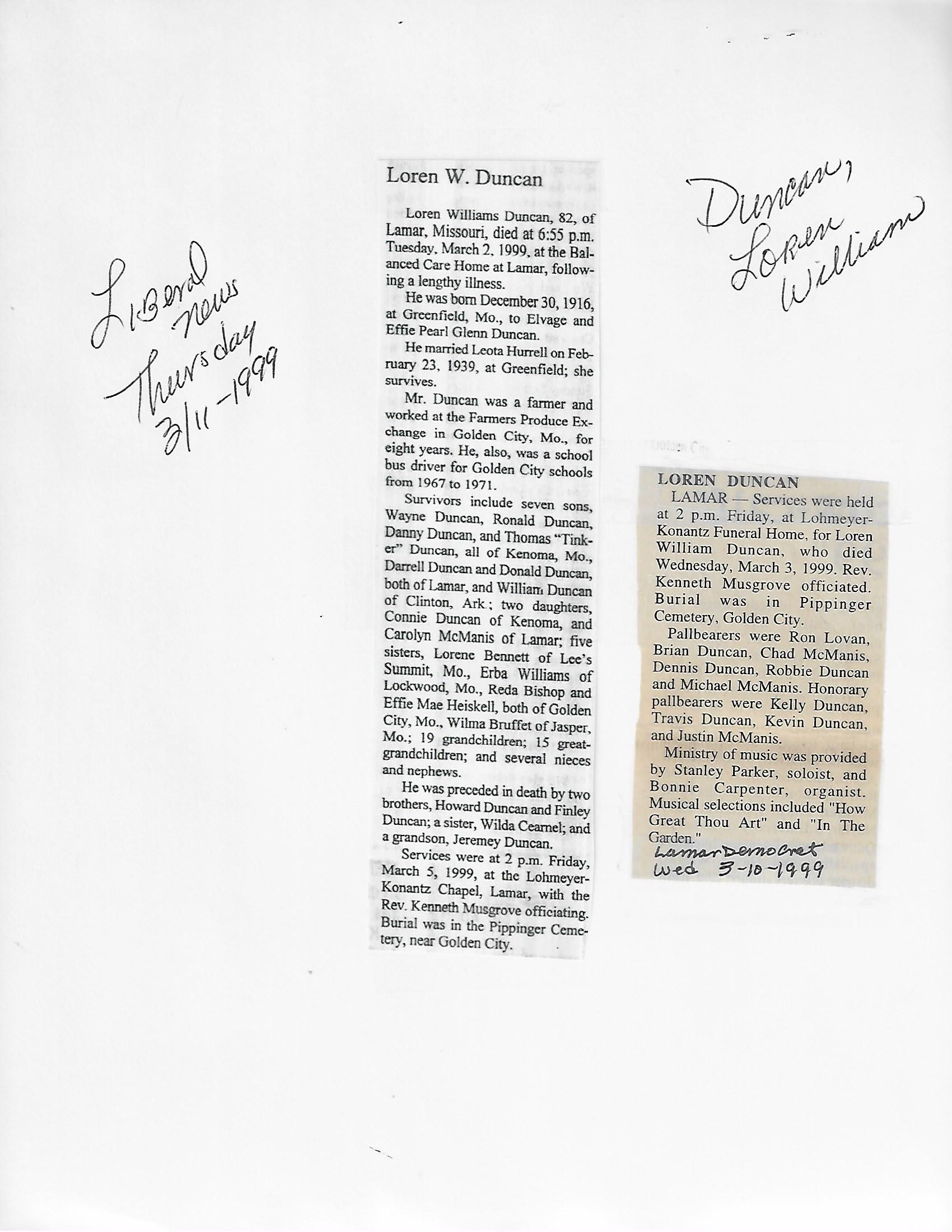Duncan, Loren William