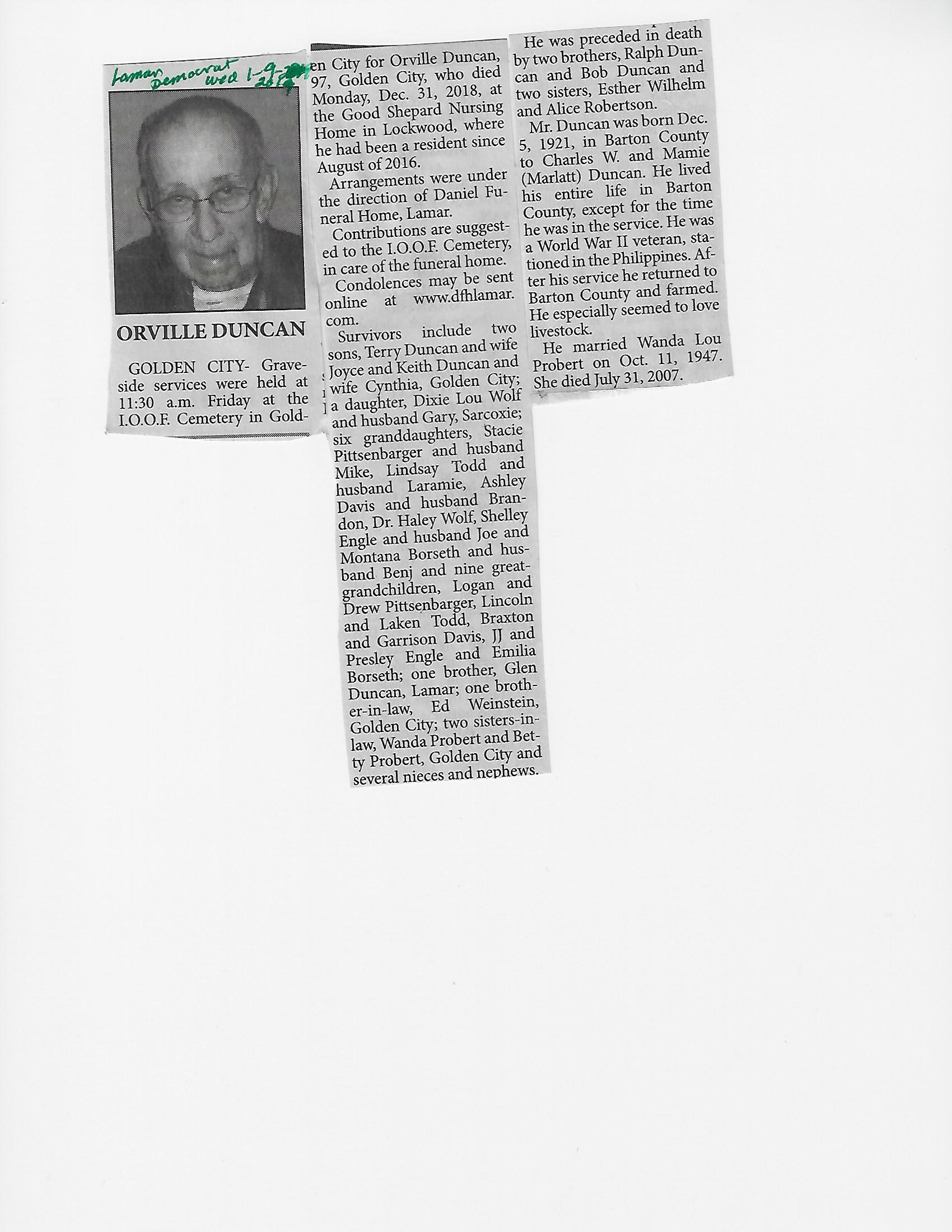 Duncan, Orville